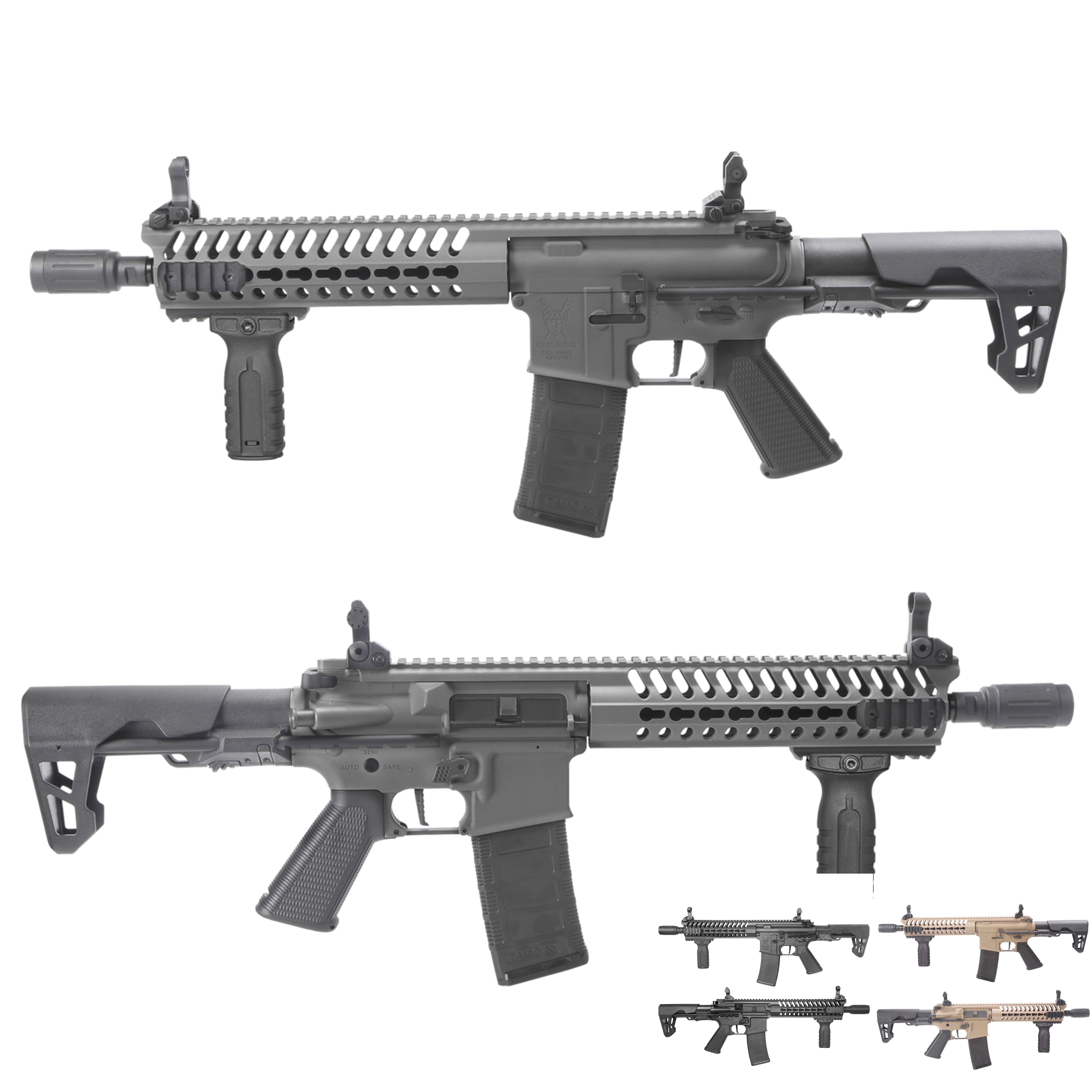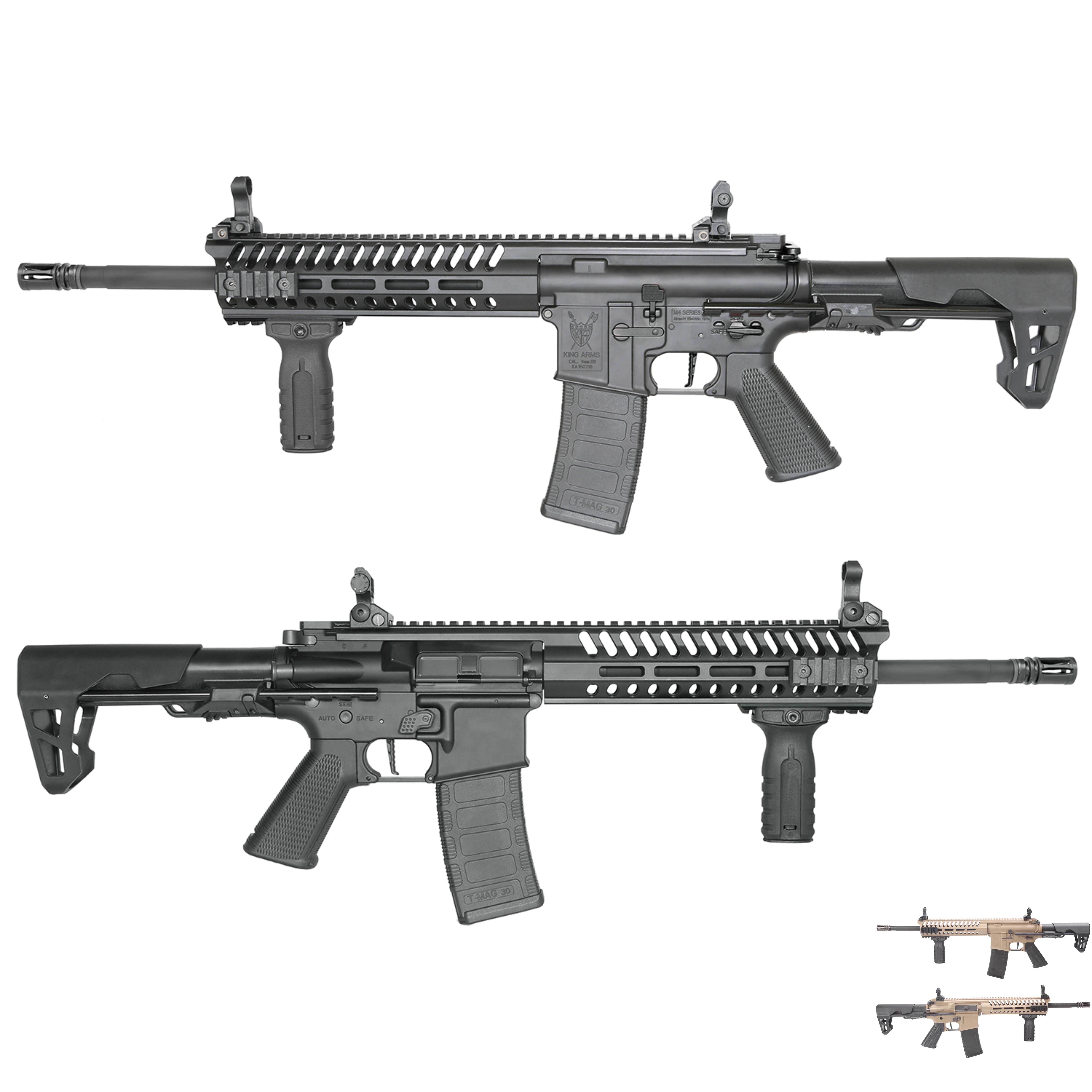 King Arms extends the family of M4 Ultra Grade II replicas with new models - M4 Striker. These replicas come in two lengths: as a Carbine with a 380 mm barrel and as a CQB variant with a 270 mm long barrel. There are two types of fronts that are independent of the barrel used. One in the Keymod standard, the other in the more popular M-LOK standard. There are also different color versions to choose from. The Carbine is available in black or tan, and the CQB variant in black, tan or grey (gun metal grey). In total, there are 10 versions to choose from.