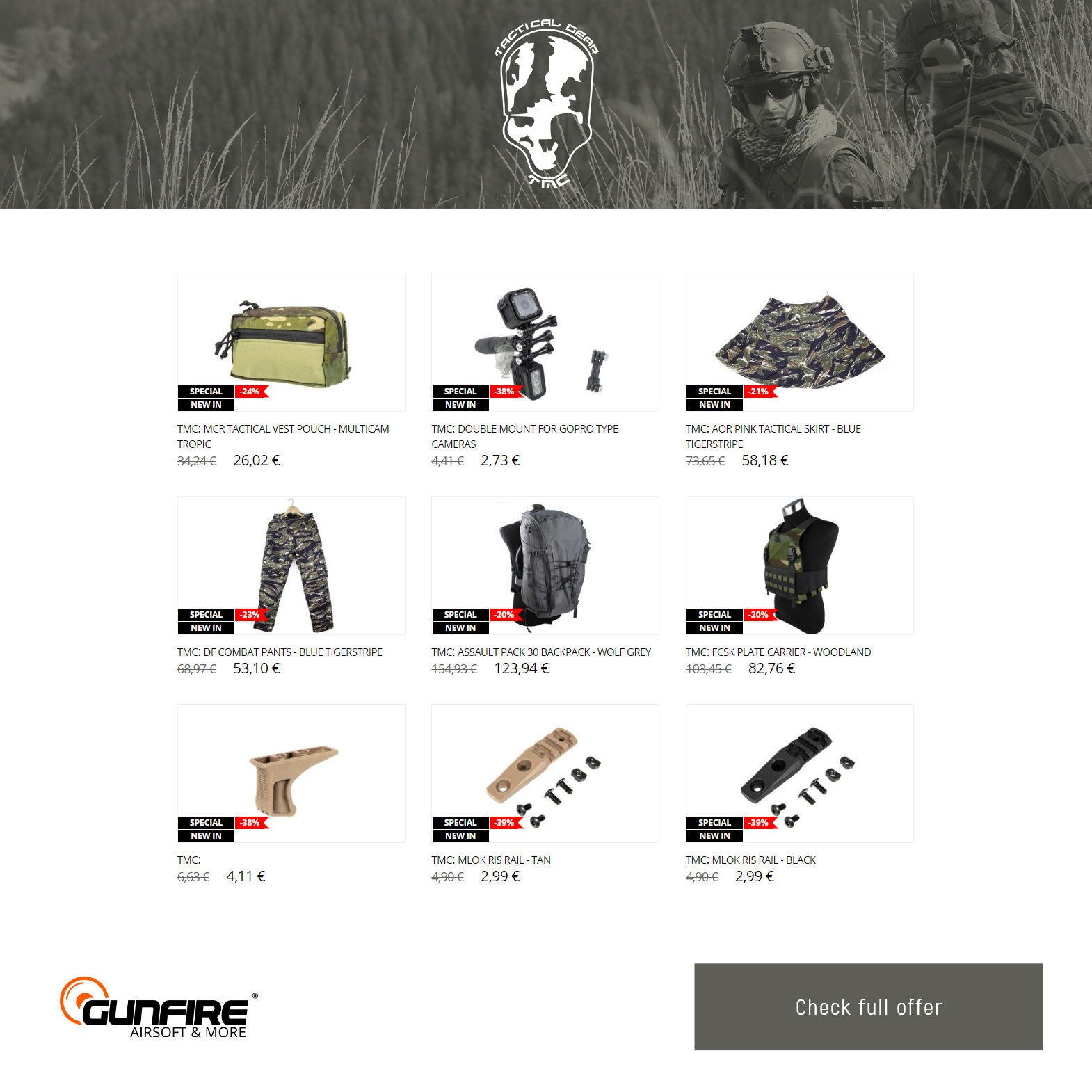 We have received a new delivery of TMC products! Among over one hundred items you will find high-quality tactical equipment, masks, patches, parts, as well as a number of useful accessories for GoPro sports cameras.