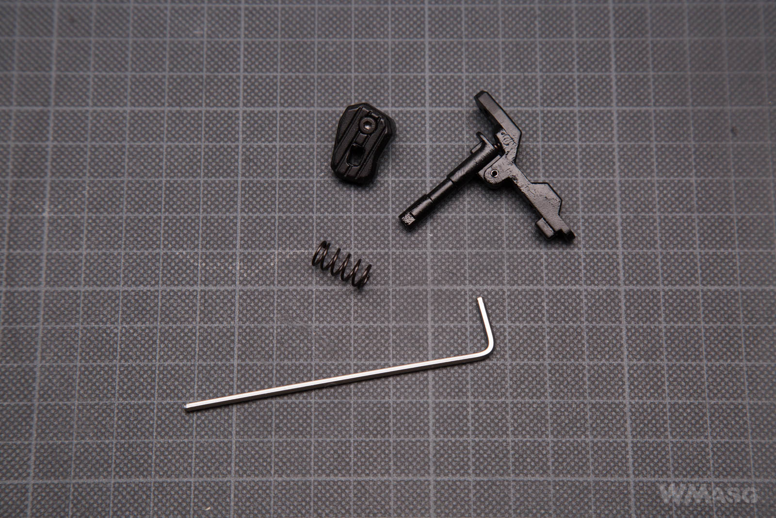 The magazine release is double-sided and assembled with an Allen screw.