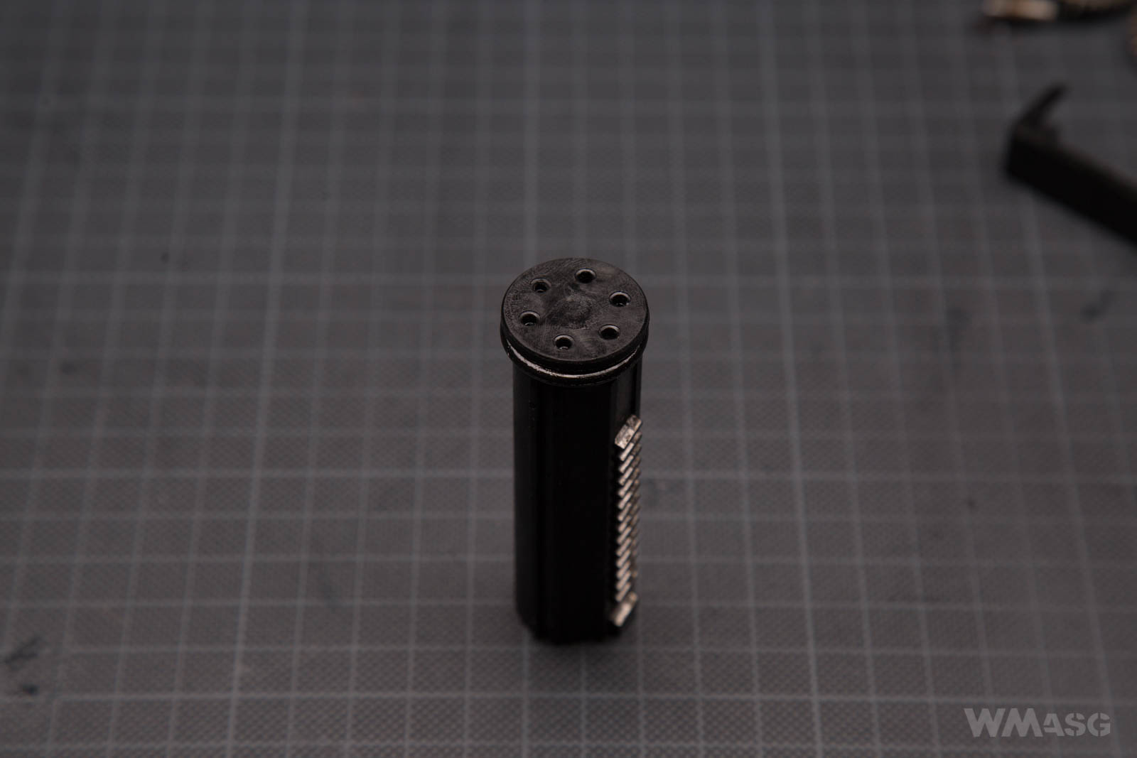 The cylinder head is made of plastic and has a quite a thick bumper. But despite the fact that a relatively small number of shots have been fired, the shape of the piston head is clearly impressed on the bumper.