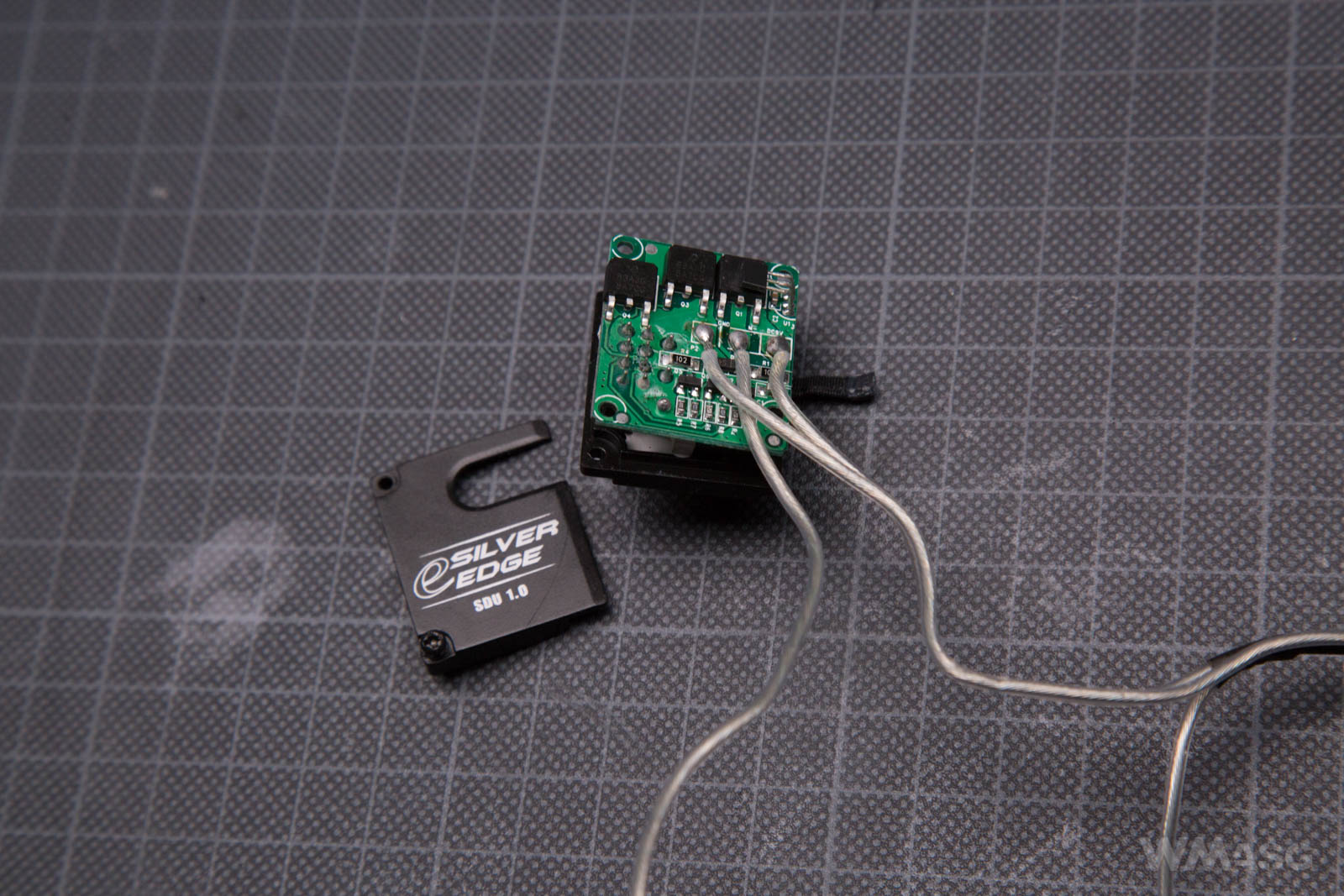 A disassembled selector plate seen from the other side. The yellow arrow shows another Hall sensor, the red one shows a magnet glued to the board. The movement of the plate and the magnet over the sensor results in switching between the SEMI and AUTO modes (Pain and Hell :)). External wiring channels are also visible. Thanks to this solution, the gear on the motor shaft has no chance of damaging the insulation of the wires, which sometimes happens in the traditional solution.