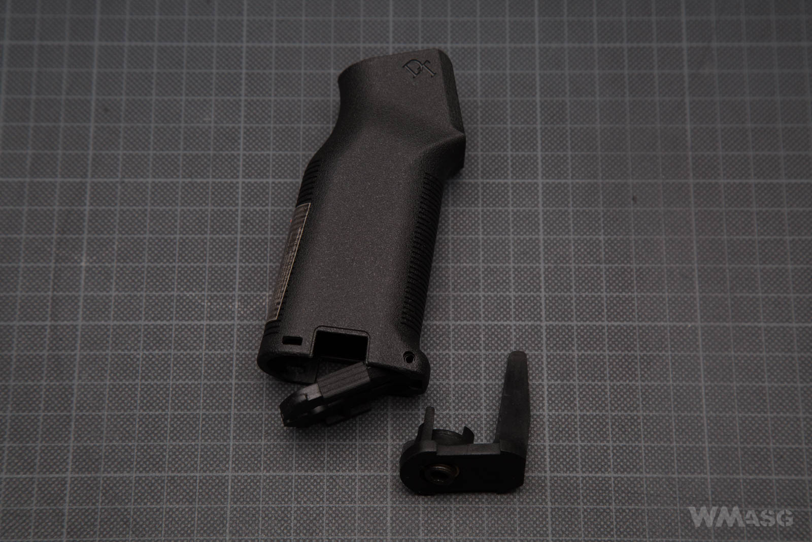 The DYTAC grip with visible markings. The insert positioning the motor inside the grip must be oriented like shown in the photo below.