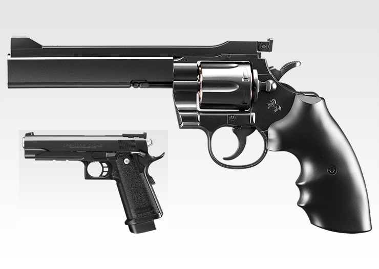 However, many of you may find a certain "flaw" of both replicas as they belong to specific product lines. The Python is a spring powered revolver generating a muzzle velocity of 200 fps. Using the "proper" terminology, it works on the principle of single action. To fire a shot you have to pull back the hammer to apply tension to the spring. The BBs are loaded into dummy cartridges (one in each cartridge) which are in turn loaded into the cylinder.