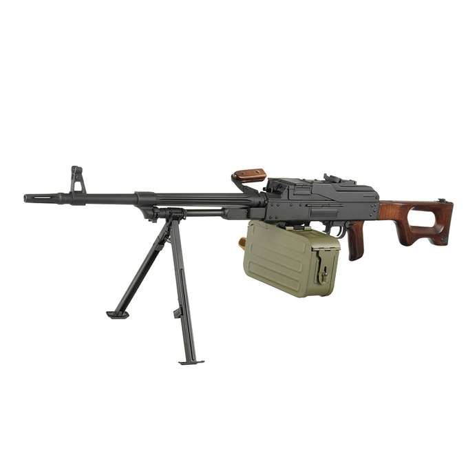 A replica of the upgraded version of the LMG, the PKM, is also available and costs around 453 Euro. Both use the same gearbox and are equipped with a MOSFET that has a feature of limiting the rate of fire regulation, hidden in the gas tube. The muzzle velocity is also the same, approx. 410 fps.
