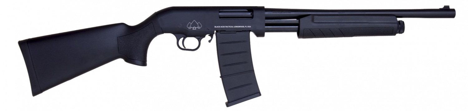 Black Aces Tactical has announced the release of new semi-automatic and pump action shotguns from the Pro M series. What distinguishes these shotguns from the competition is the possibility of feeding them from box and drum magazines designed for the Russian Saiga 12 shotguns.