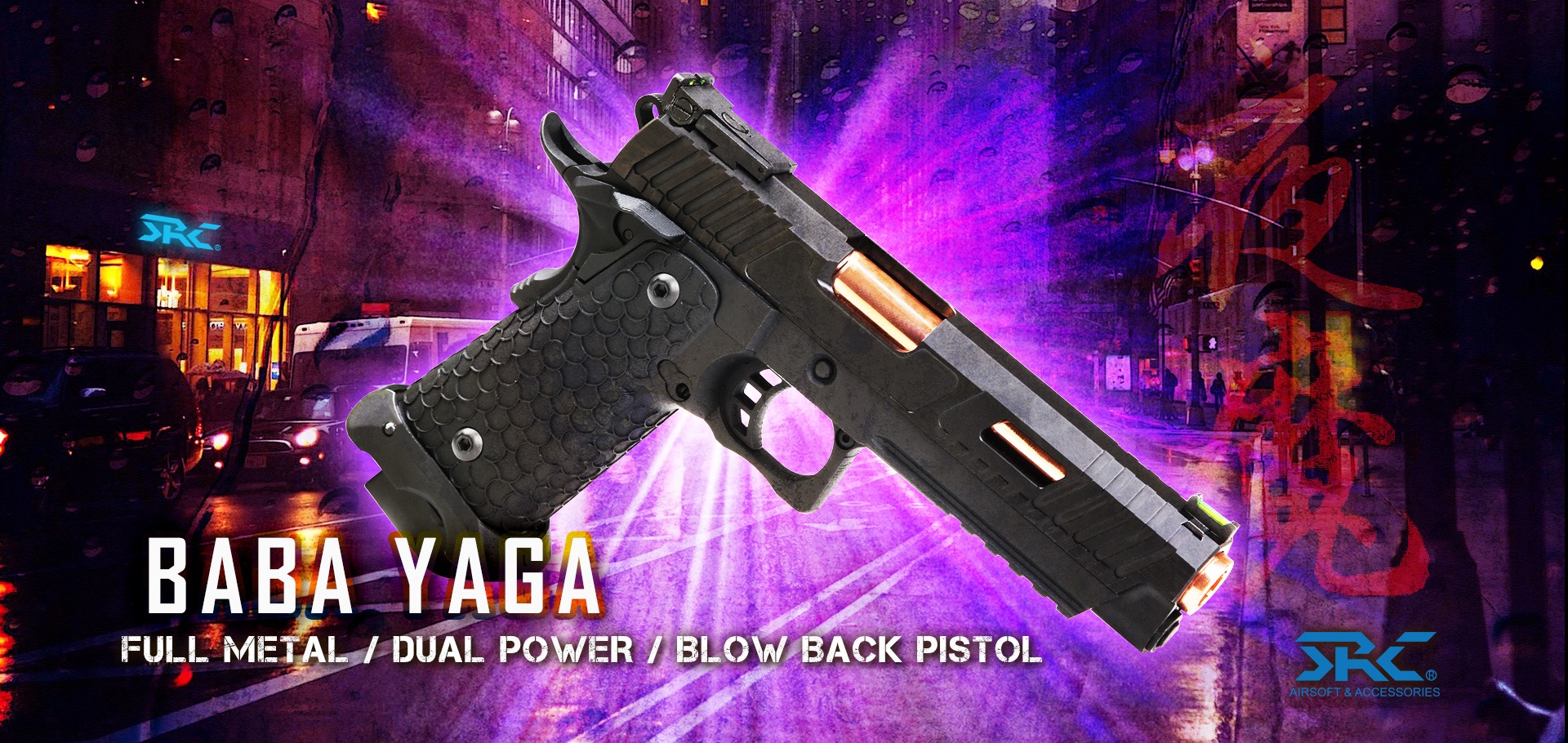 After the licensed EMG/AW Custom and Army Armament/Taiwangun versions, another replica resembling the Combat Master Taran Tactical Innovations pistol is on its way. This time it is made by SRC from Taiwan and while there is no mention of any licenses, it boldly uses the name Baba Yaga (the nickname of John Wick from the movie).
