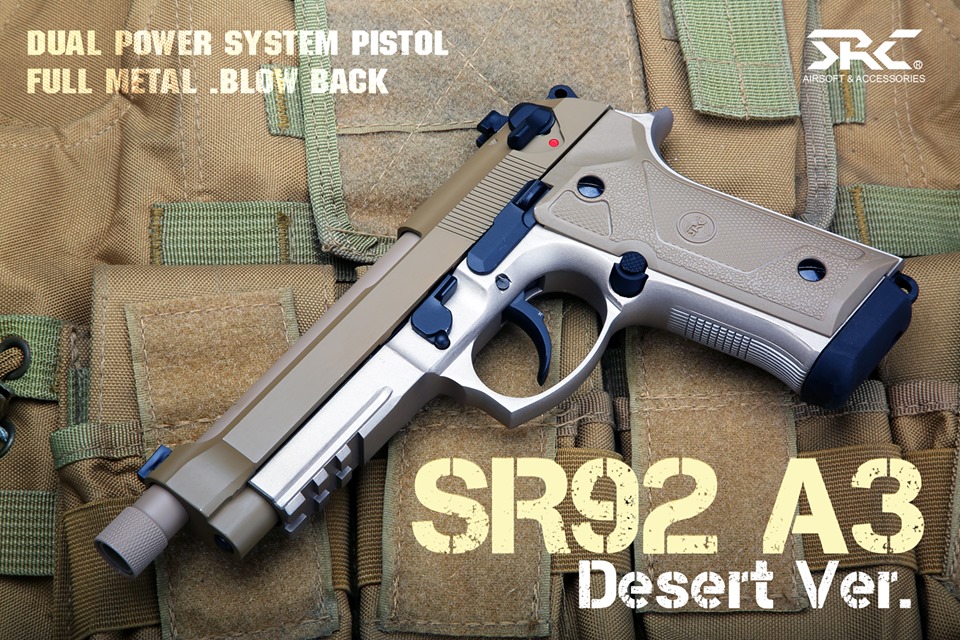 The second new product announced by SRC is a "Beretta" SR92 A3 Dual Power (Green Gas and CO2) with an under-barrel accessory rail and silencer mounting thread.