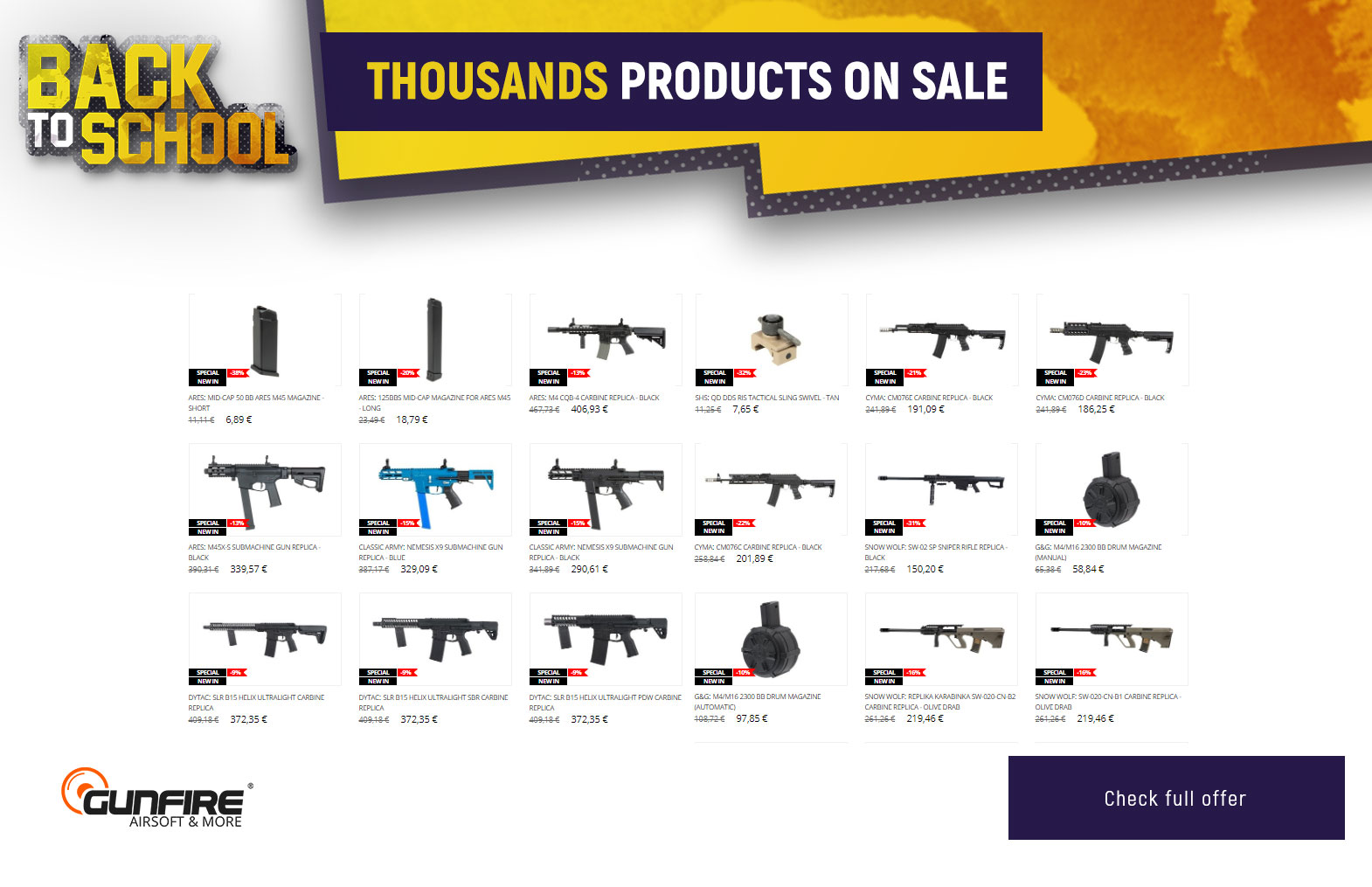 Back To School Sale is on! Up to 75% OFF on over 4500 products at Gunfire.