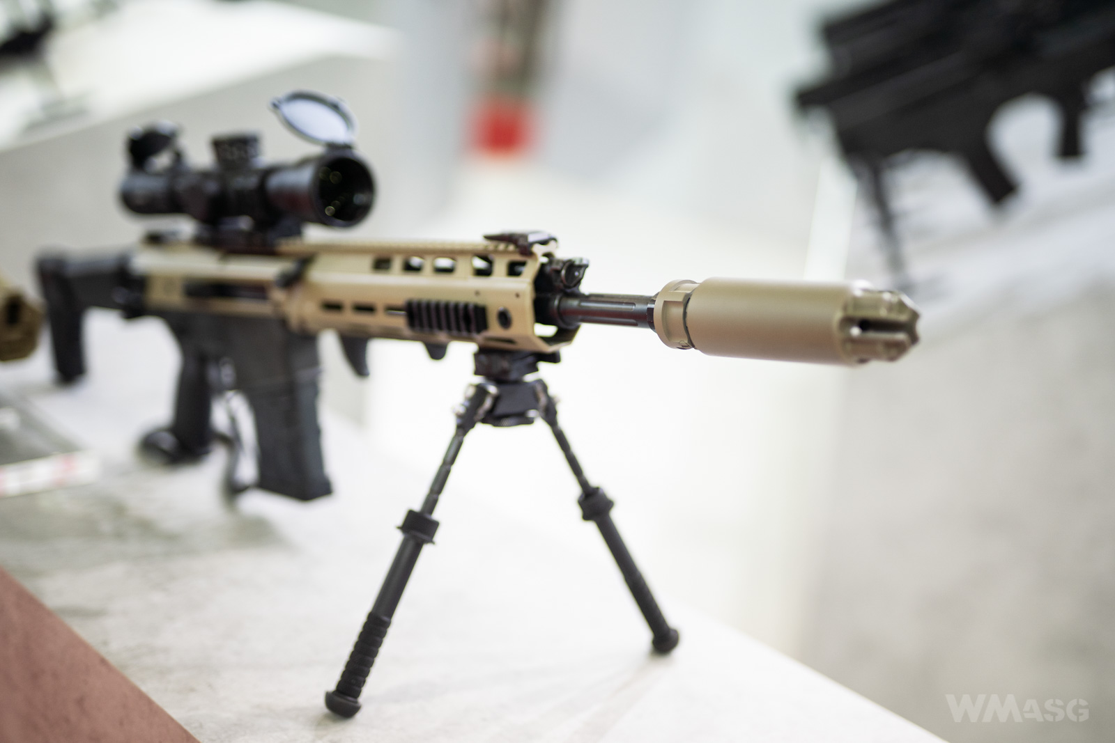 The interesting looking carbine is not a civilian export version for the Asian market. By presenting it with two other copies in sand and green colors, Fabryka Broni Łucznik wanted show their implementation of the Cerakote ceramic paint technology.