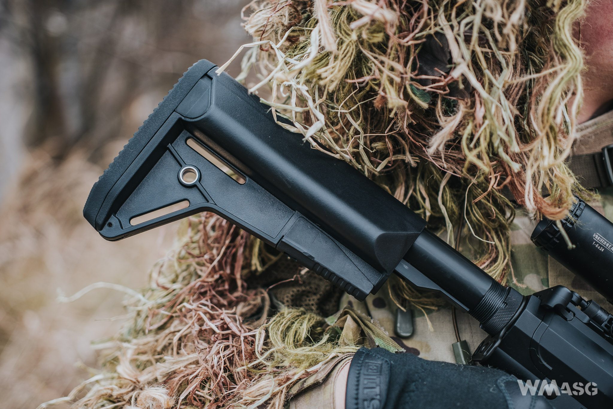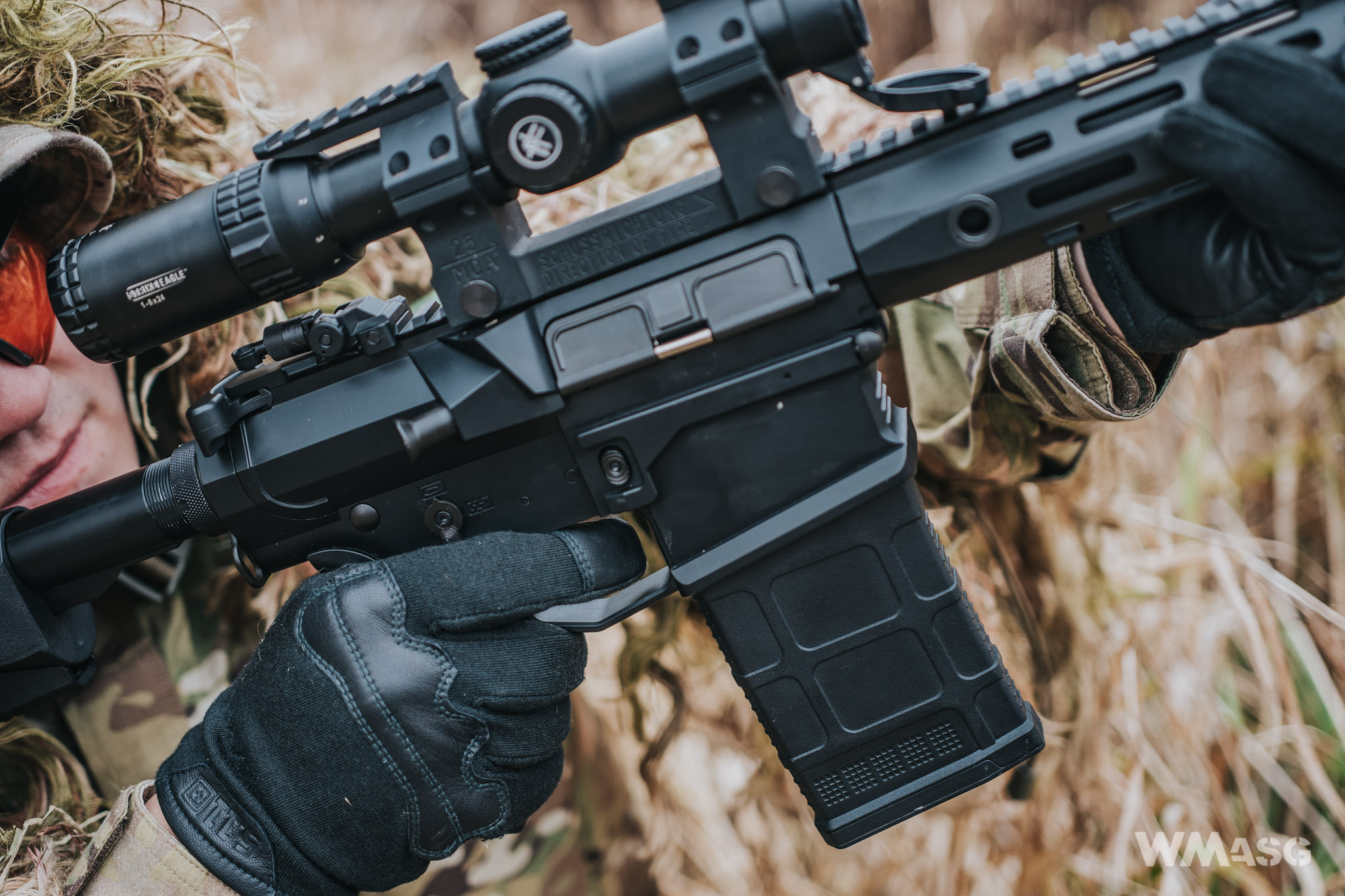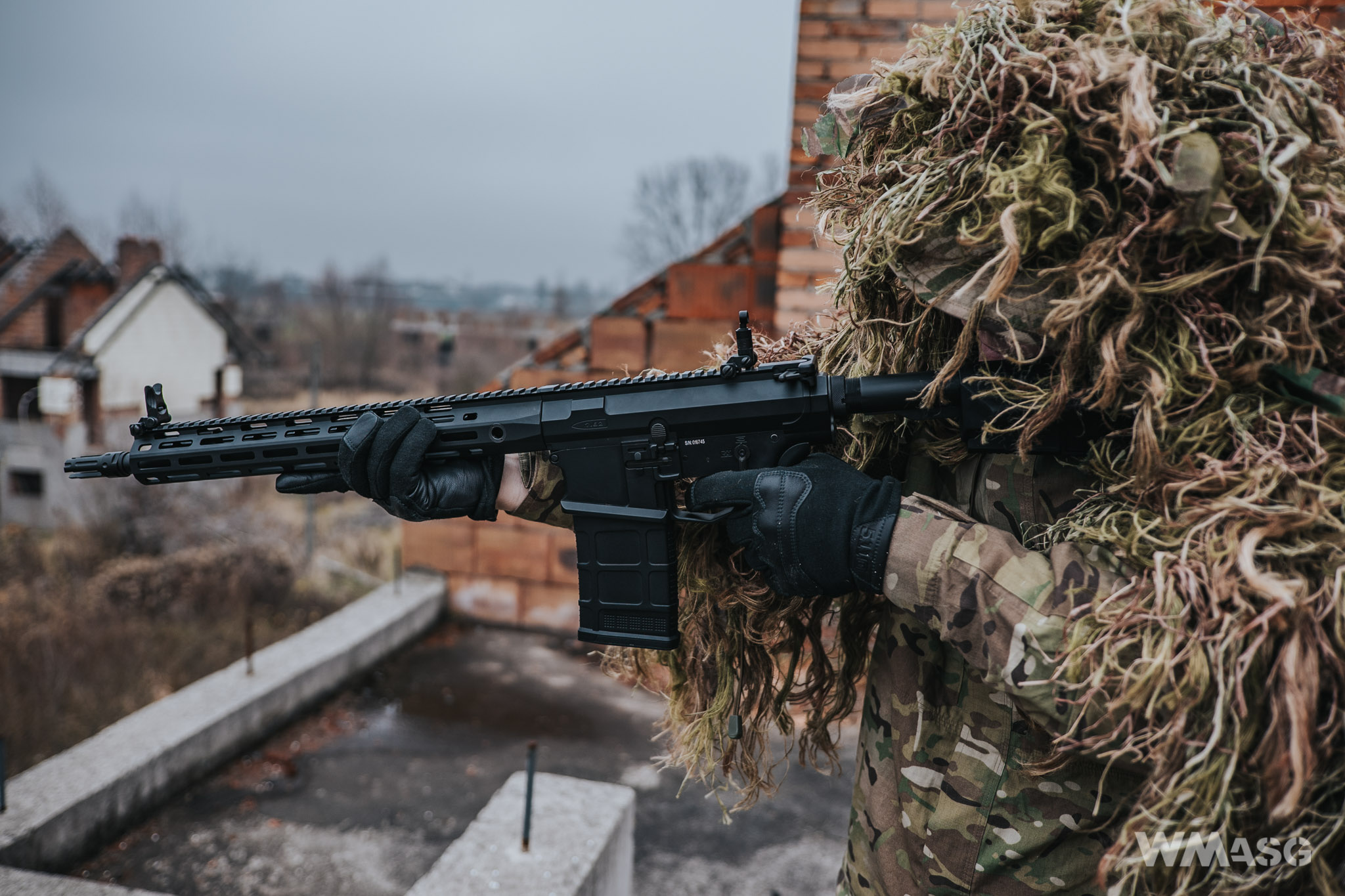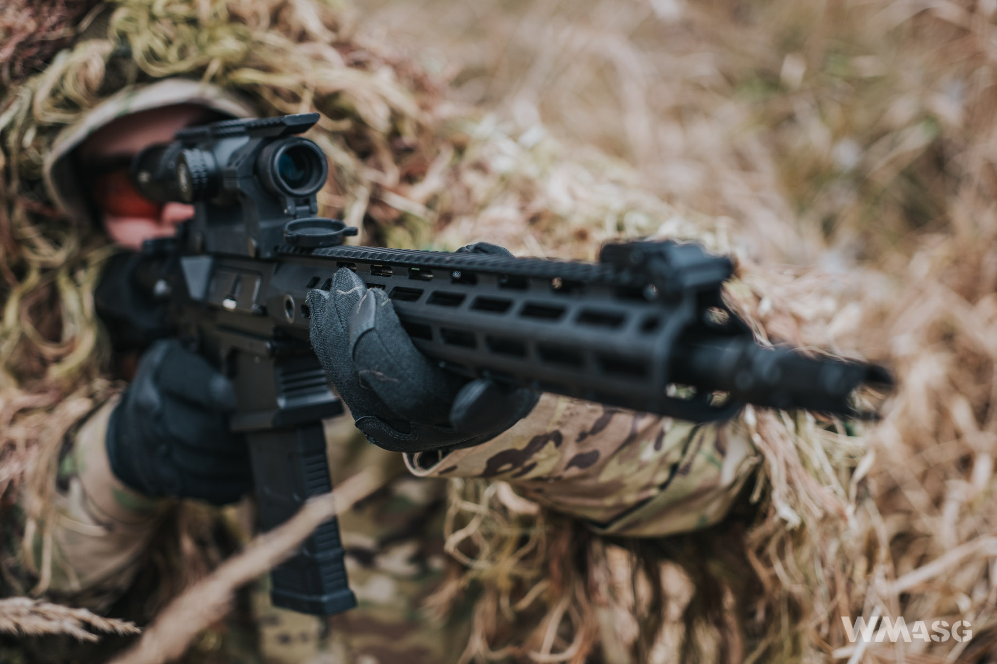 Replicas of the 098 series, due to the use of a long type gearbox, and thus having an increased volume of the cylinder, are perfect for creating a DMR rifle. The factory performance looks encouraging. Depending on the length of the barrel, the muzzle velocity is in the range of 450-480 fps. As our tests have shown, this configuration works. After cosmetic and inexpensive work on a proper sealing of the pneumatic system, you can successfully achieve muzzle velocities qualifying the CM.098 as a DMR. You can squeeze even more from it. Based on my experience, I will risk the thesis that it is possible to build an AEG sniper rifle with a muzzle velocity well exceeding 600 fps from it. You just have to remember that all CM.098 have a full-auto option, so it would be advisable to modify the fire selector plate, because there is no lock on the lower receiver chamber for the semi-auto position that could be used. Another solution could be to use some kind of a programmable control system.