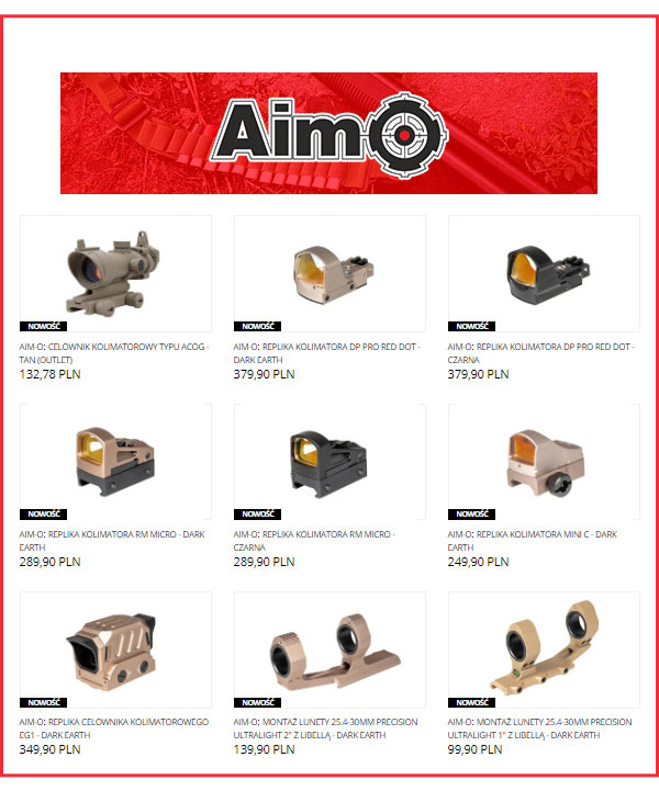 If you are looking for a high quality optical sight for your replica, check out the new Aim-O offer at Gunfire! We have just supplemented our inventory of the most popular models of collimators and scopes, which are characterized by extremely good external finish.