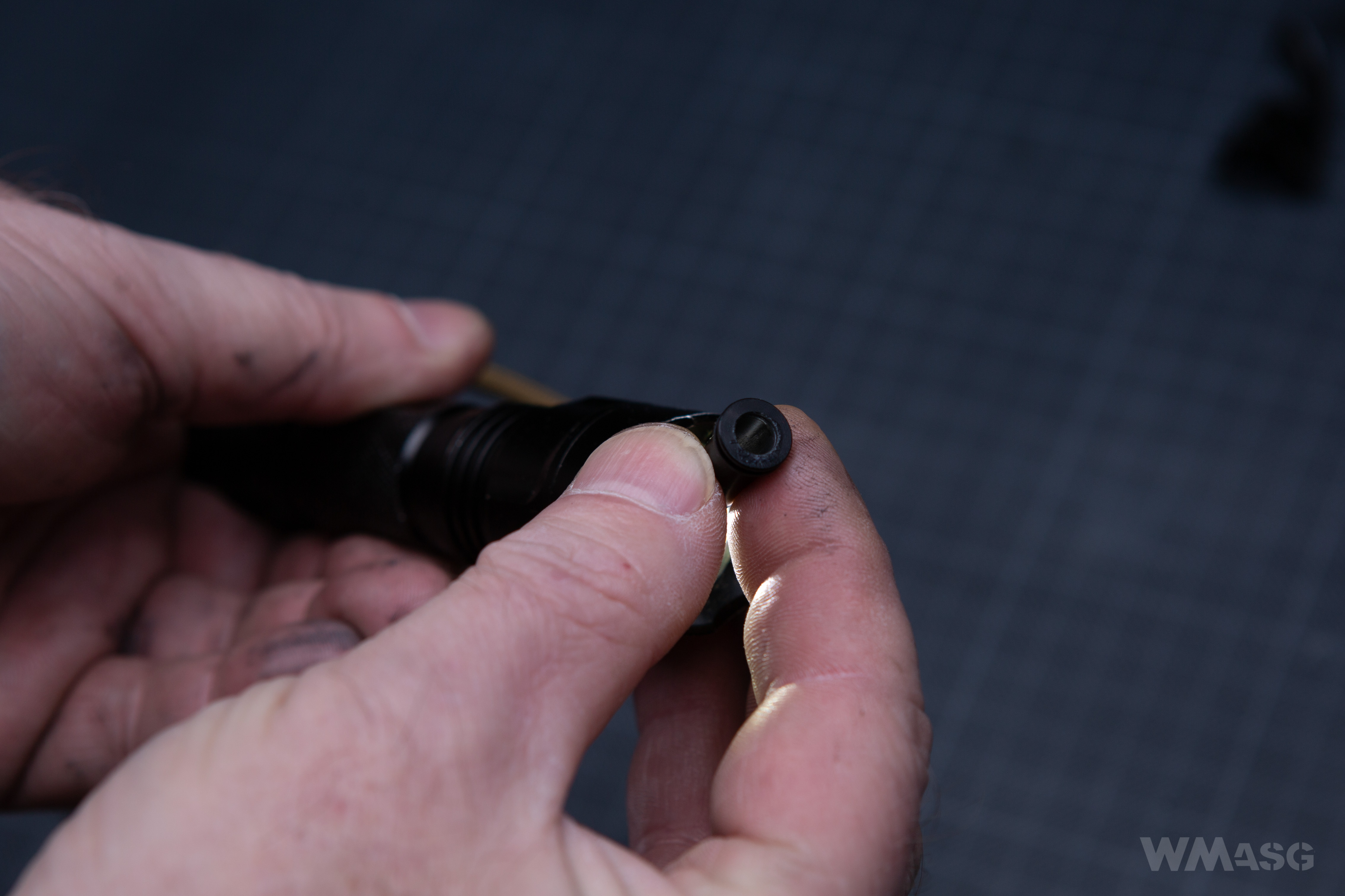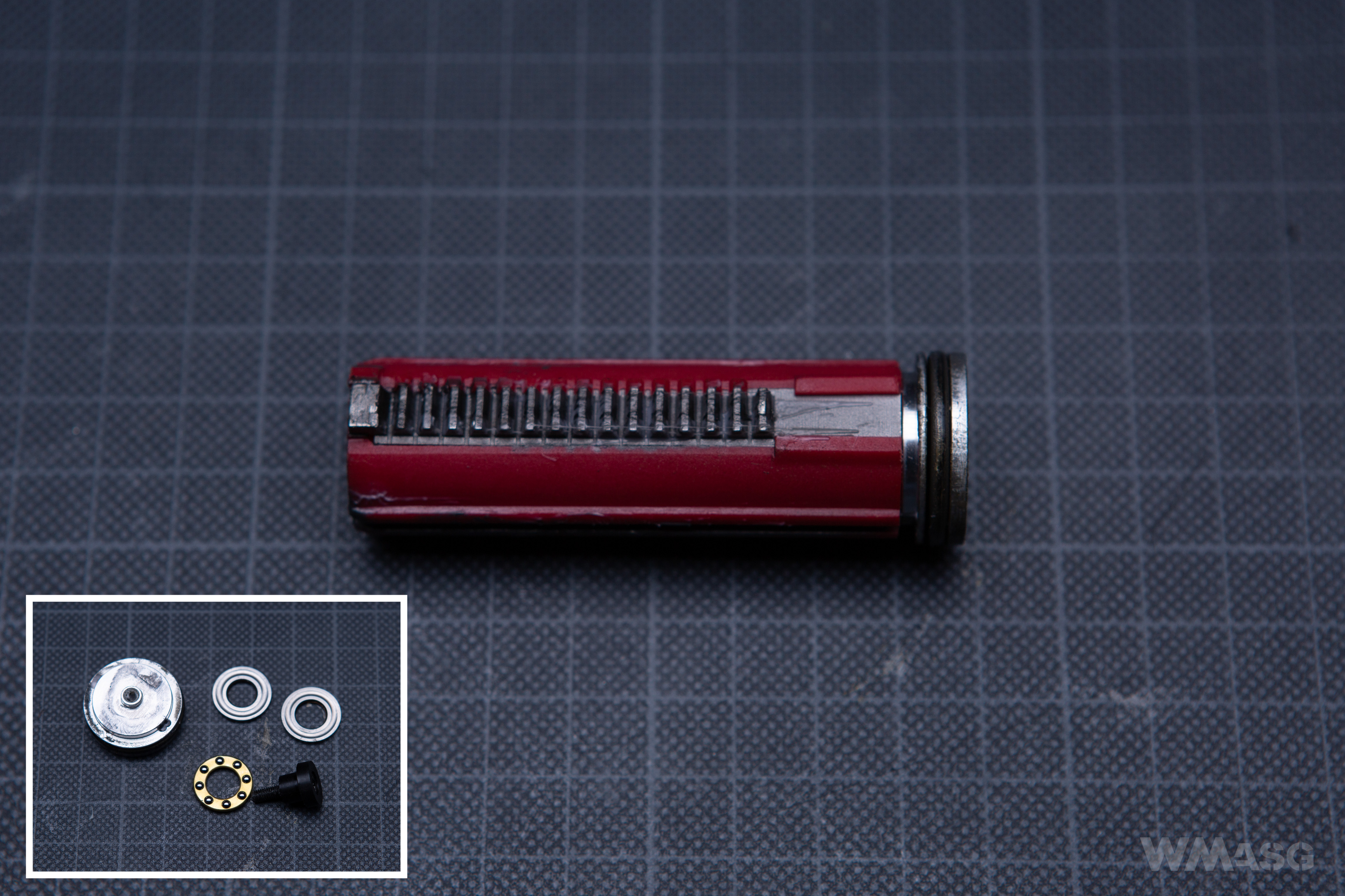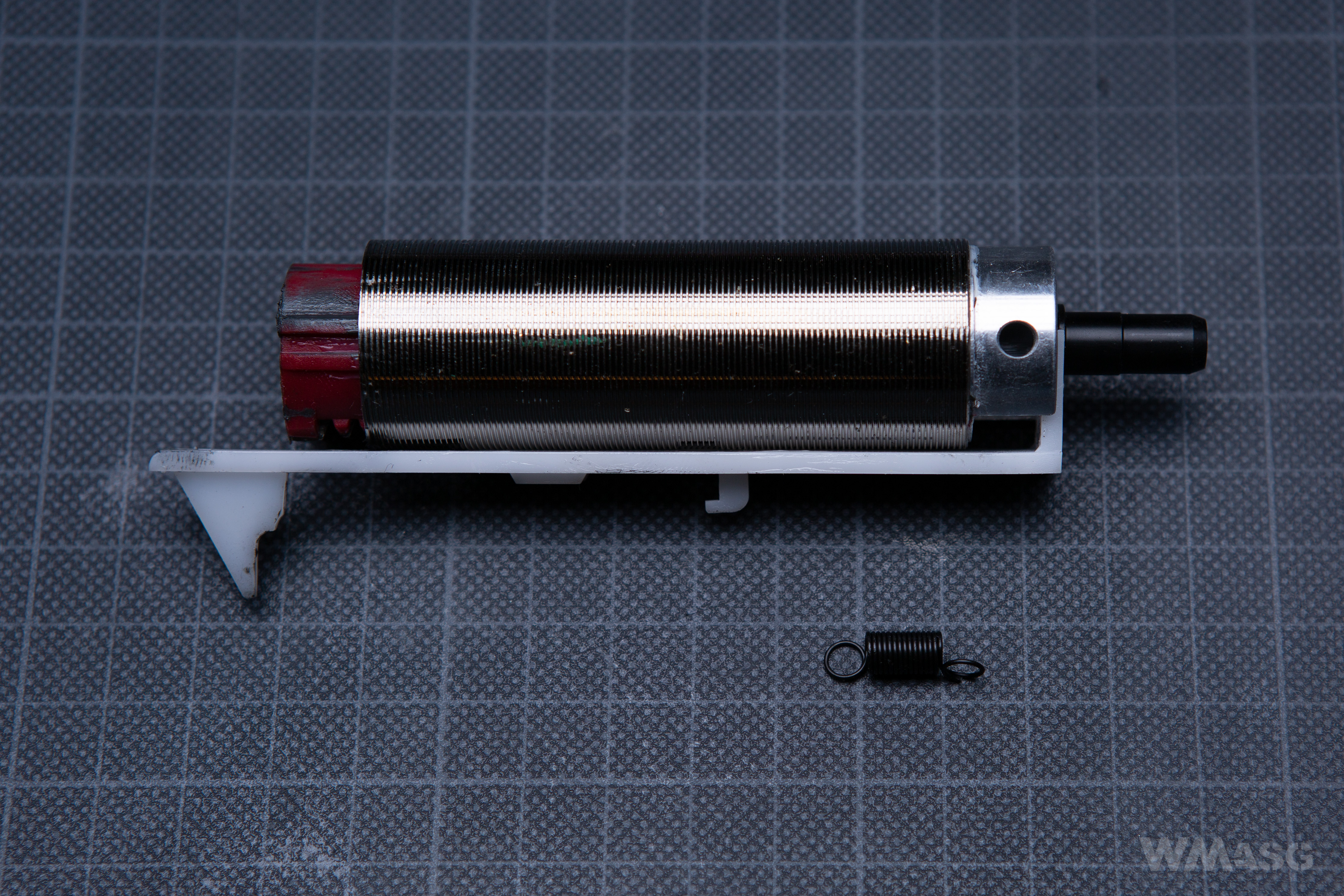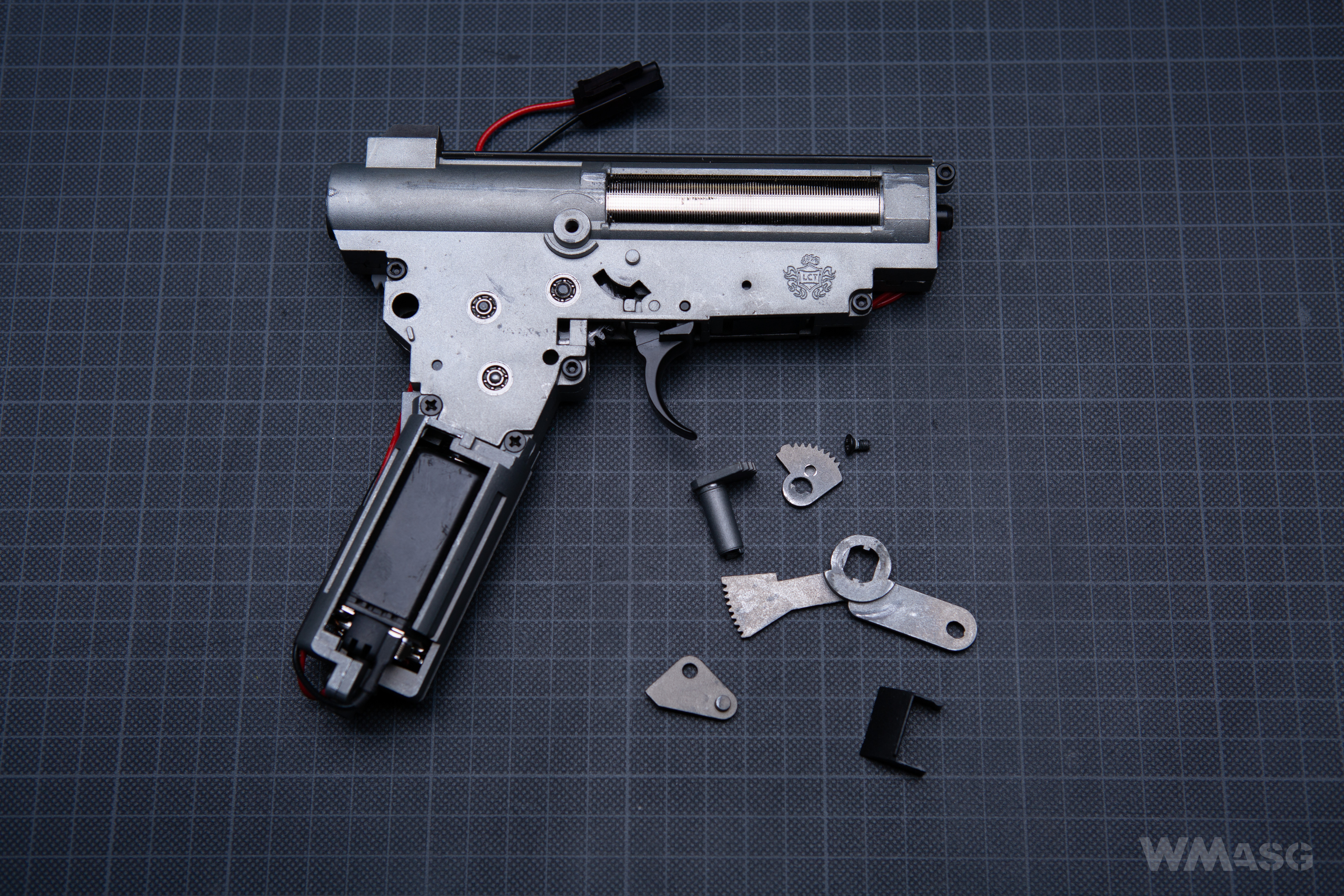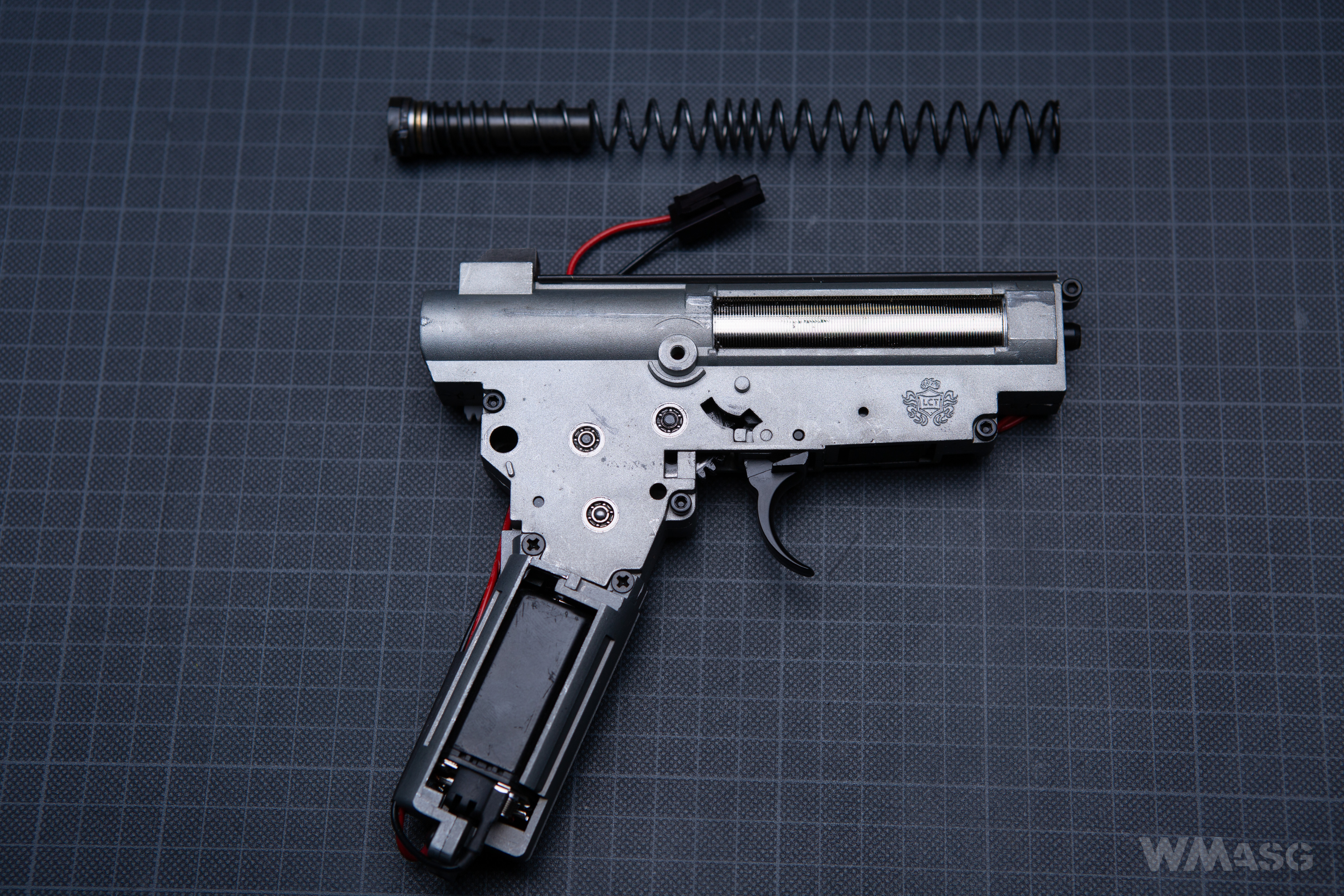 The gearbox offers the possibility of quick spring replacement, but only after removing it from the replica's receiver, so more than the "speed" of the spring replacement, the ease with which less skilled service technicians will do it matters. The spring guide has a bearing.