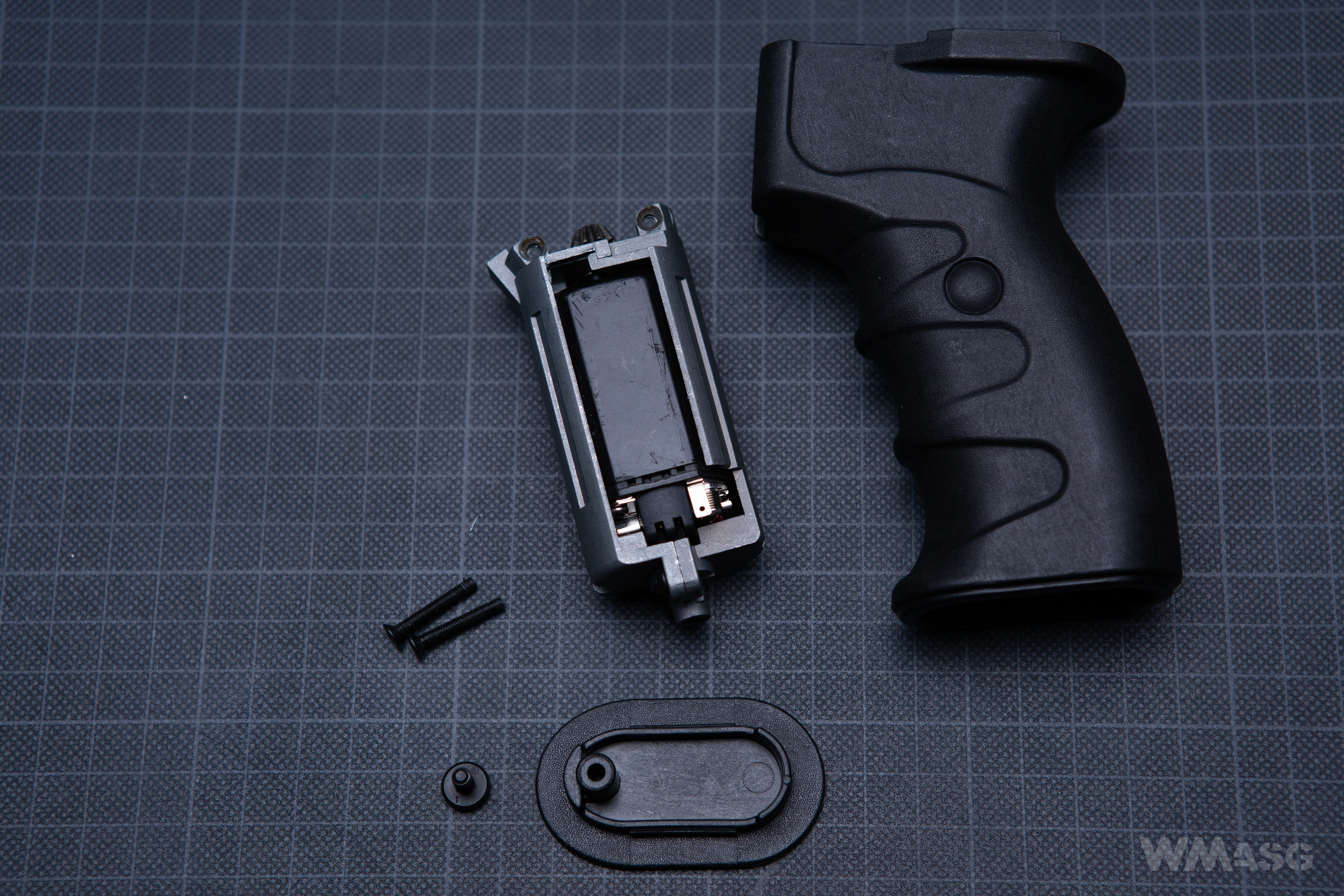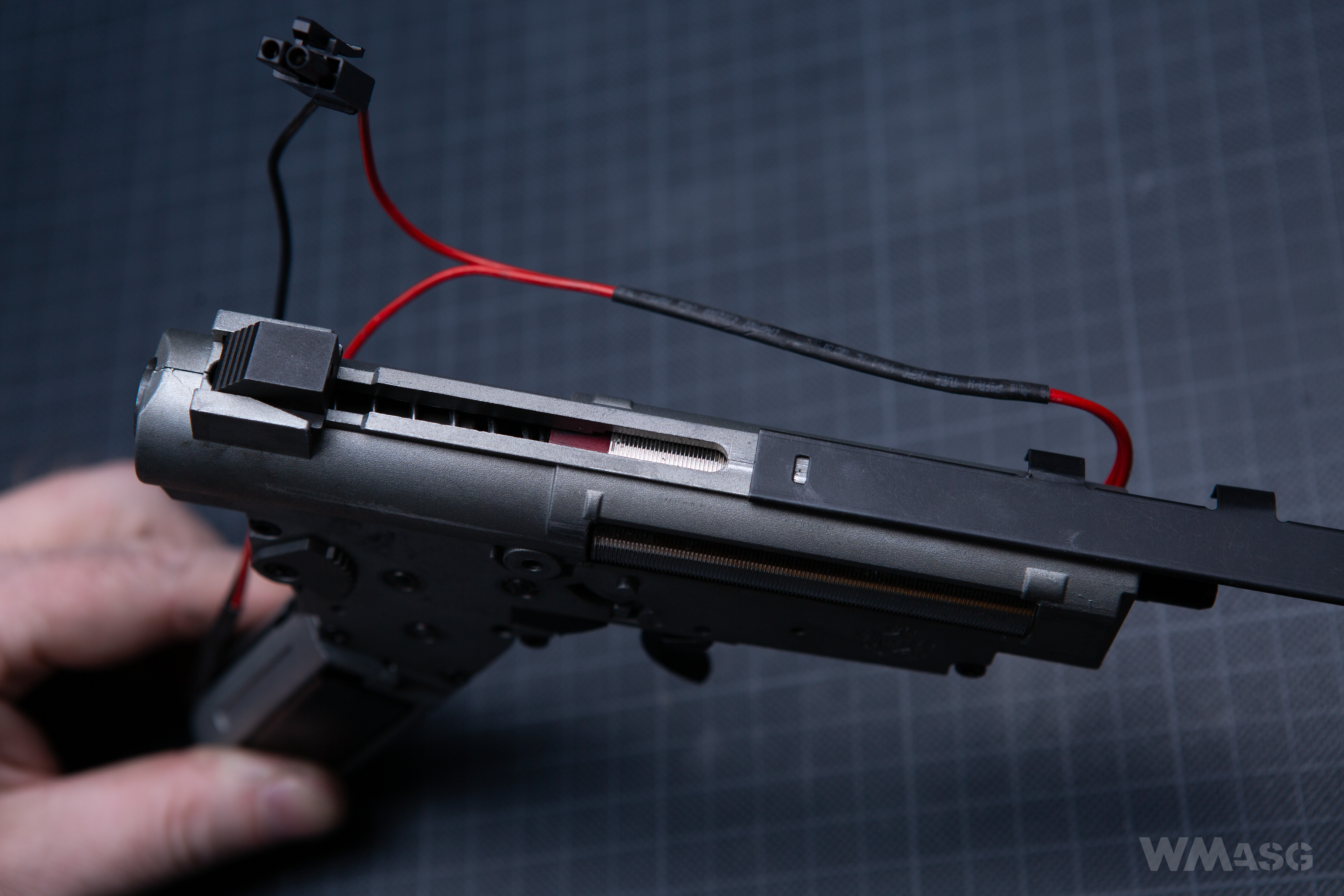 The method of assembly of the mechanism raises no objections. The selection and quality of individual components allow for cheap and trouble-free tuning. In our opinion, the commonly accepted limit for support weapons can be reached by just replacing the spring. Unfortunately, then you have to deal with the need to have several (that is more than 2) batteries, or find a way to mount and use a larger than stick type battery.