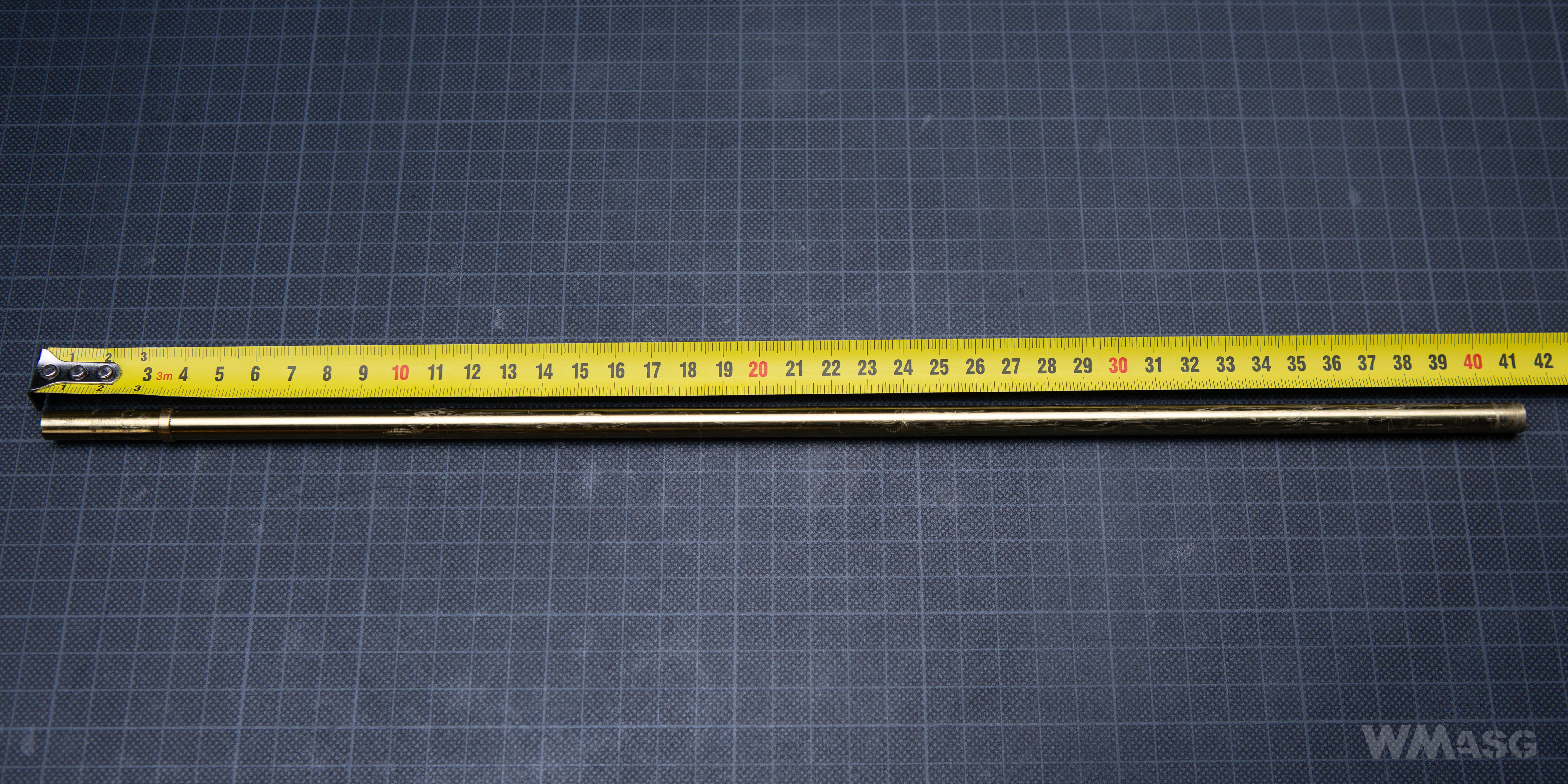The barrel with a flawed muzzle is 410 mm long. It is shorter than the standard AK barrel by 40 mm.