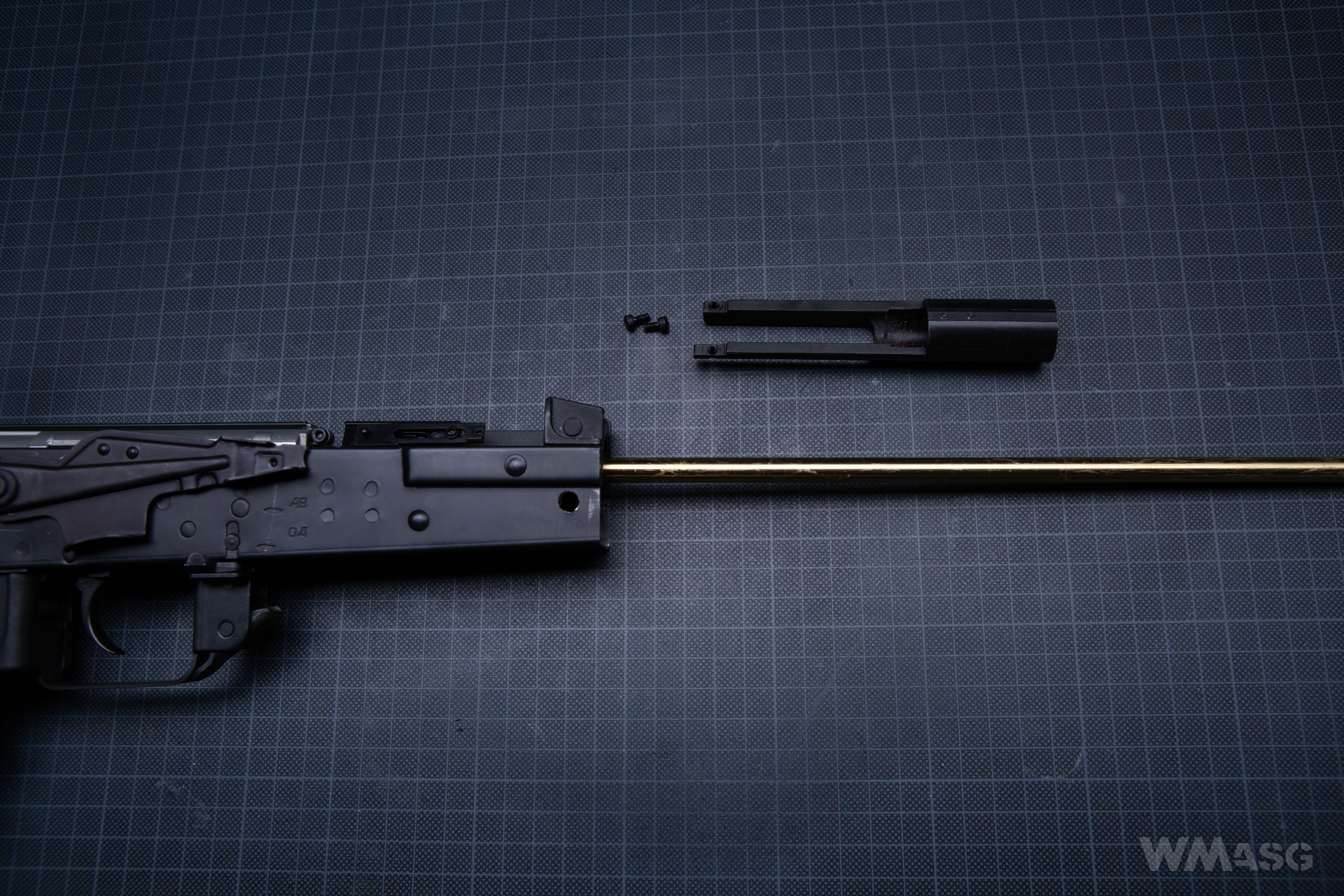 The RPK-16 uses a standard AK replica chamber attached with 2 screws to the base shown above. The chamber is not connected to the gearbox, as is the case in, for example, the E&L replicas. The bucking is standard, typical for LCT products. It worked flawlessly in the tested carbine, but we didn't do tests at low temperatures or at higher muzzle velocities.