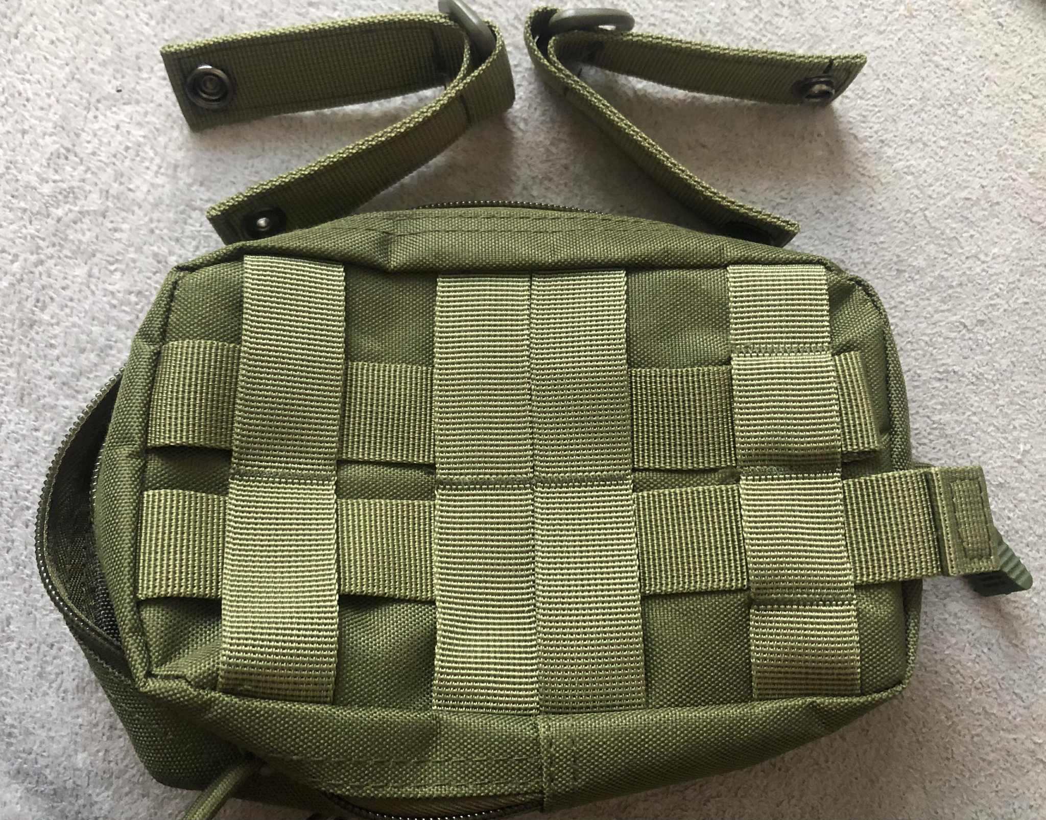 Sprzedam oliwkową ładownicę typu cargo z możliwością montażu pionowo i poziomo. W środku dodatkowe dwie kieszenie po bokach a z przodu miejsce na rzep i gumowy ściągacz. Zainteresowanych zapraszam do kontaktu po szczegóły Przy zakupie kilku przedmiotów możliwość negocjacji ceny.