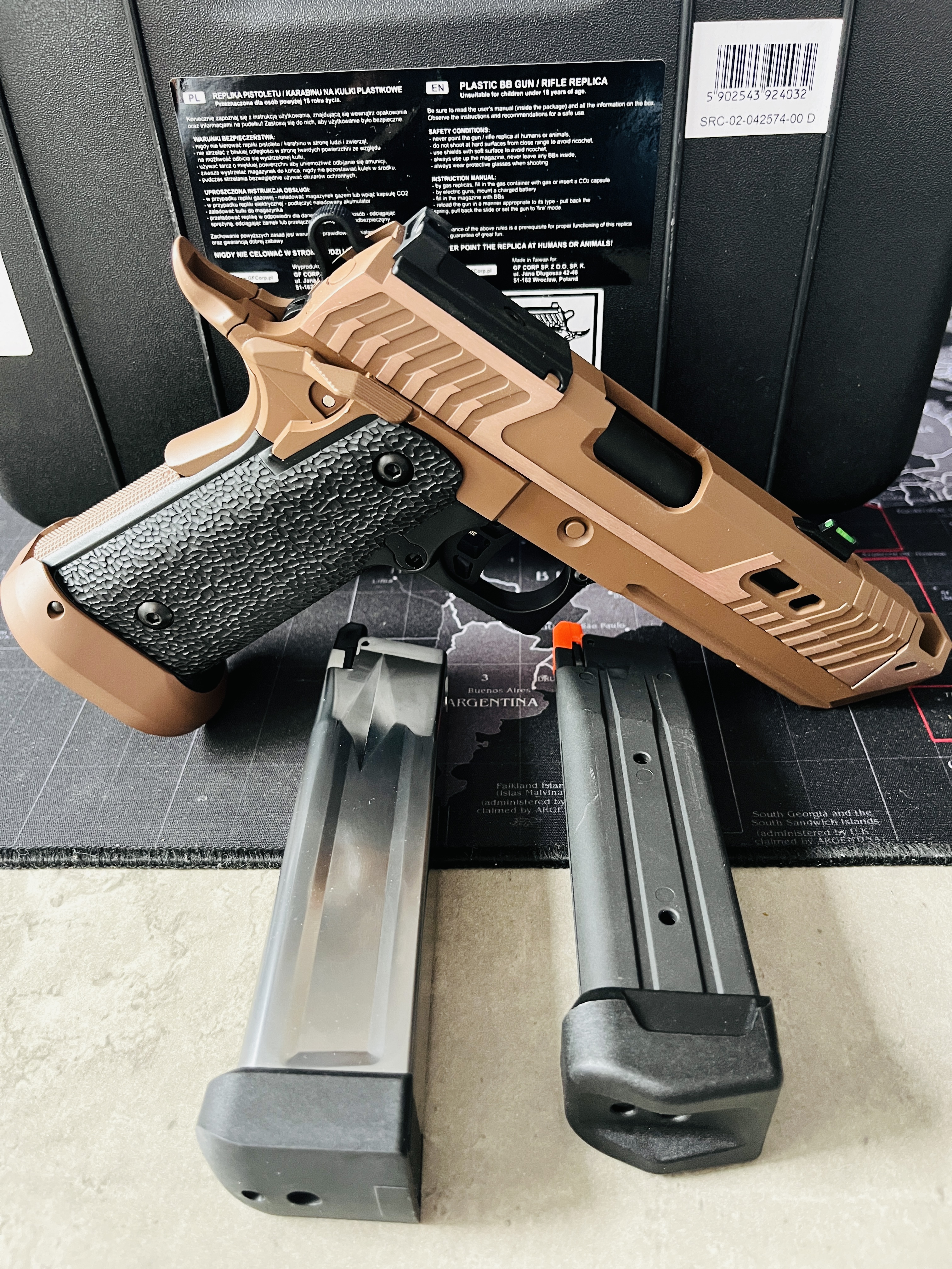 SRC SAHARA VIPER - Nowy nie używany gwarancja Na sell leci SAHARA VIPER OD SRC, w zestawie walizka, dwa magi jeden na green gas który otrzymałem wraz z klamką i drugi dorzucam w gratisie również nie używany na co2 od innej hi Capy, dodatkowo płytki pod montaż optyki. Do dziś klamka nie używana, natomiast jeżeli się nie sprzeda zamierzam jej użyć na najbliższych strzelankach
