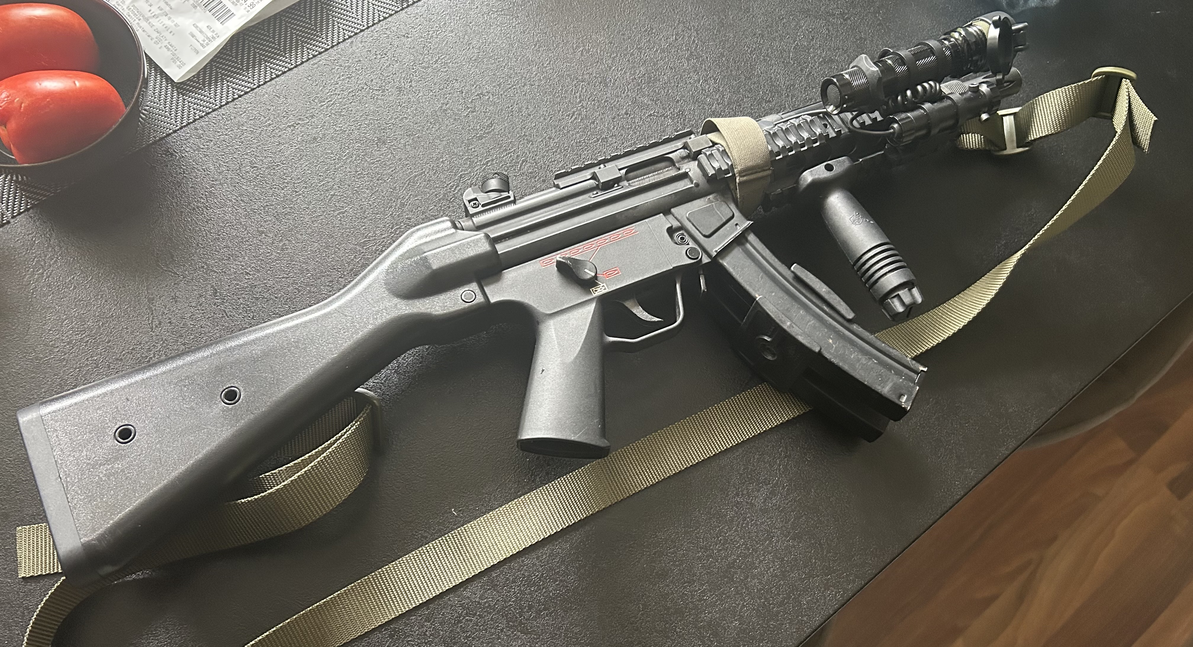 Witam na sprzedaż wystawiam zestaw części pasujących do wszelakich replik MP5 - AEG i GBB. Zestaw składa się z: -łoża RIS typu Knight Armament KAC aluminiowe montowane jak w oryginale w oparciu o dolny stalowy profil (system GBB) lub z możliwością montażu na dodatkowe śrubki po bokach (system AEG). - rączki pionowej z oznaczeniami KAC - okładzin gumowych
