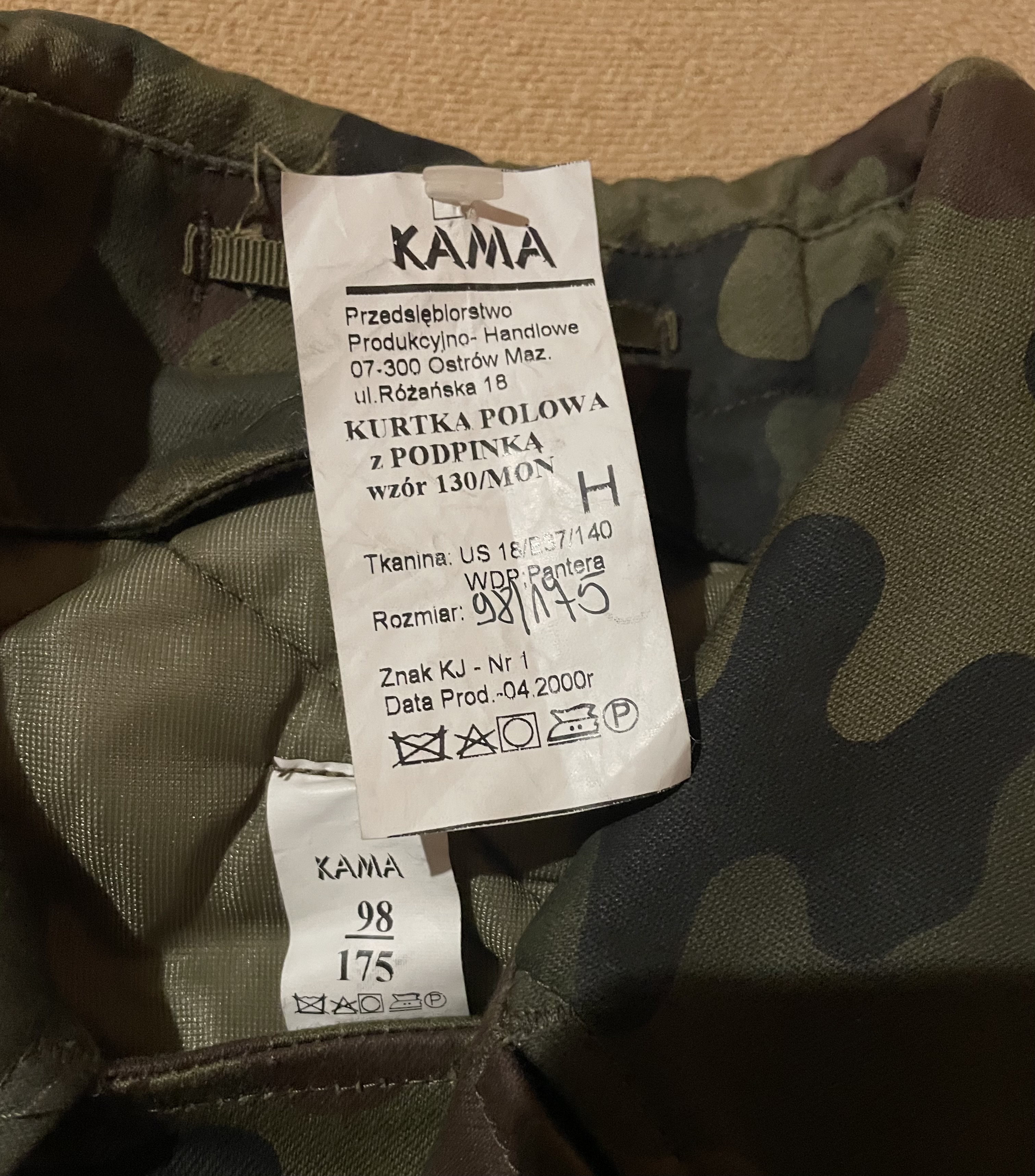 Kurtka wz.130 Mon tzw.Bechatka Producent Kama Rok produkcji 4.2000r Rozmiar 98/175 Wymiary zmierzone Klatka 65cm x2 Rękaw od pachy 54cm Rękaw od wszycia pagonu 64cm Plecy od wszycia kołnierza 82cm Możliwa wysyłka olx https://m.olx.pl/1028825824/?bs=olx_pro_listing
