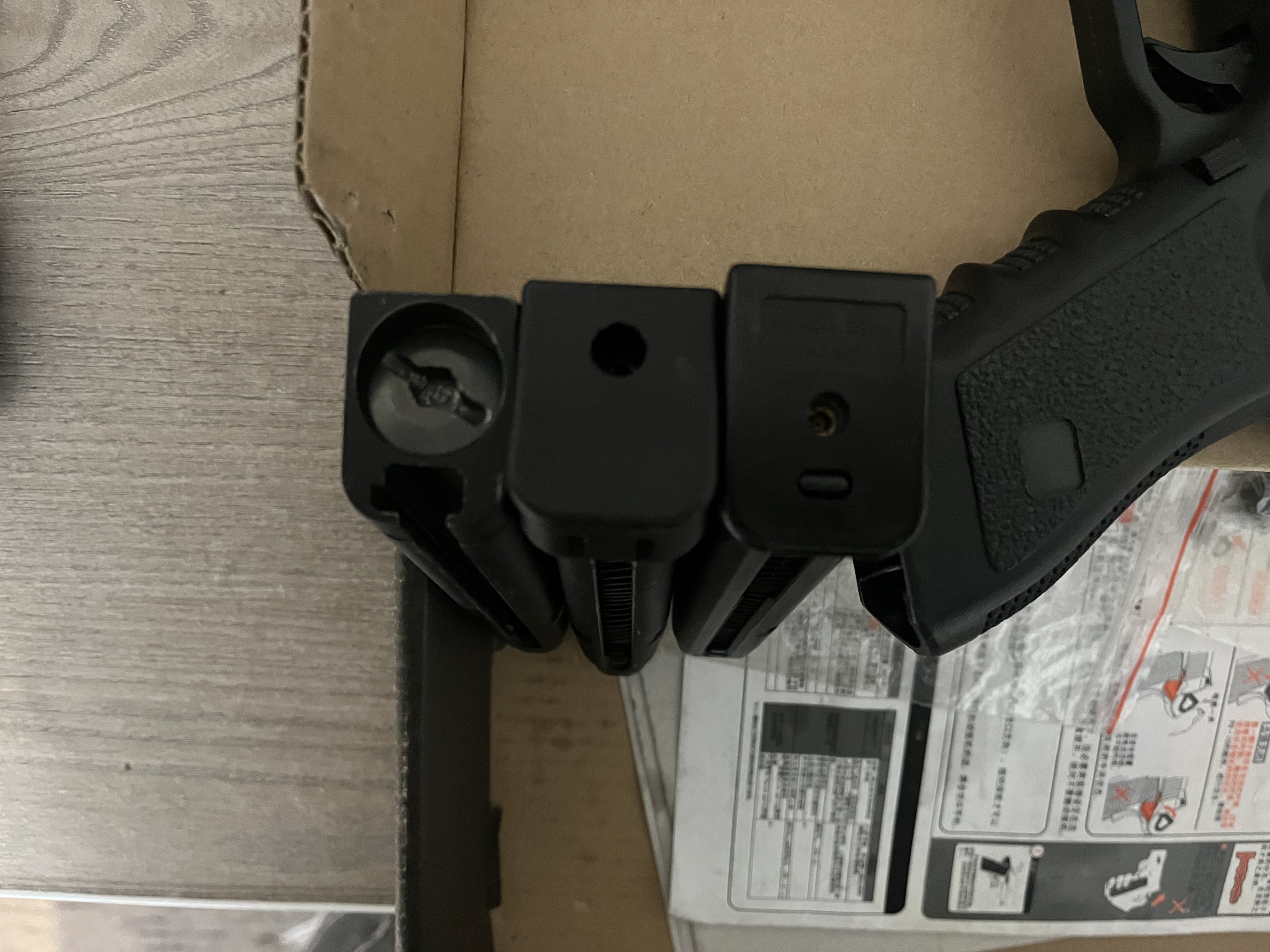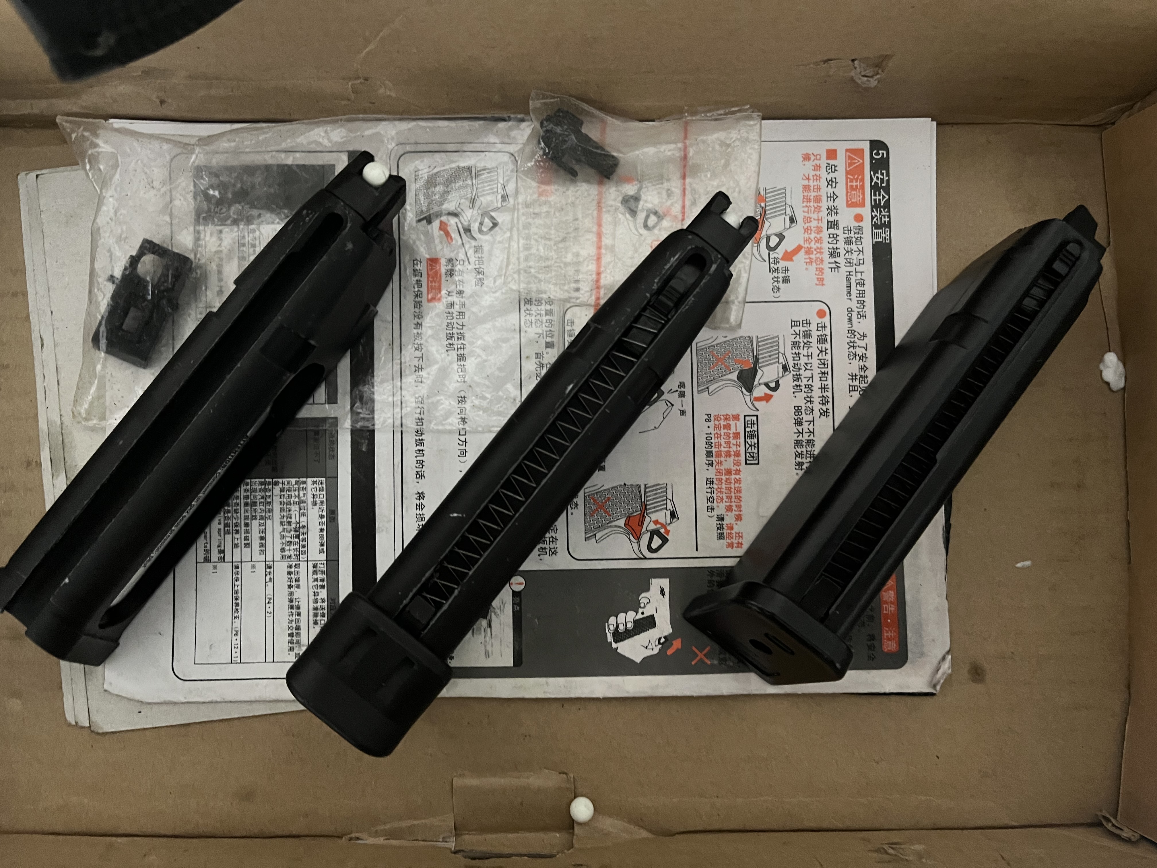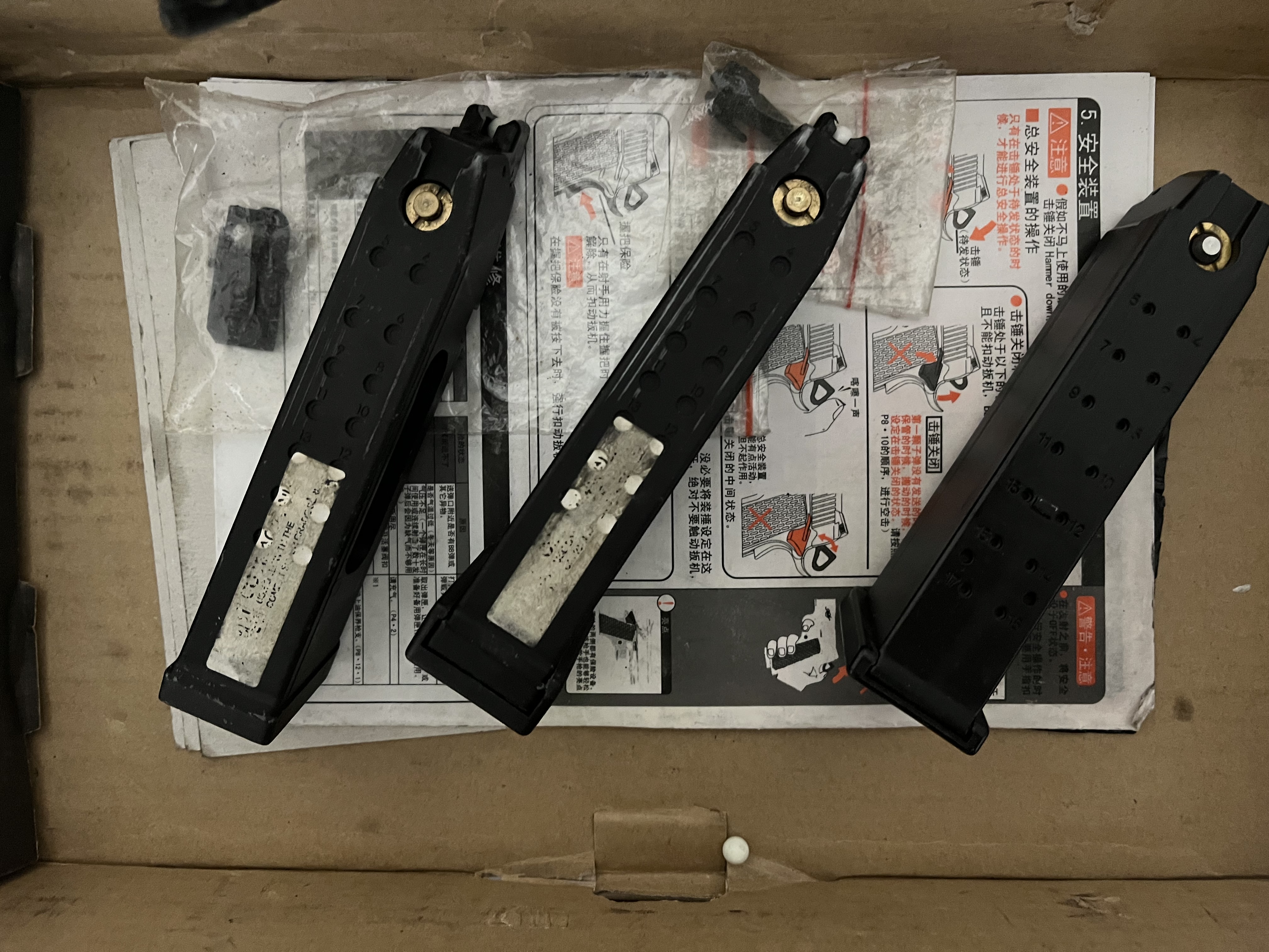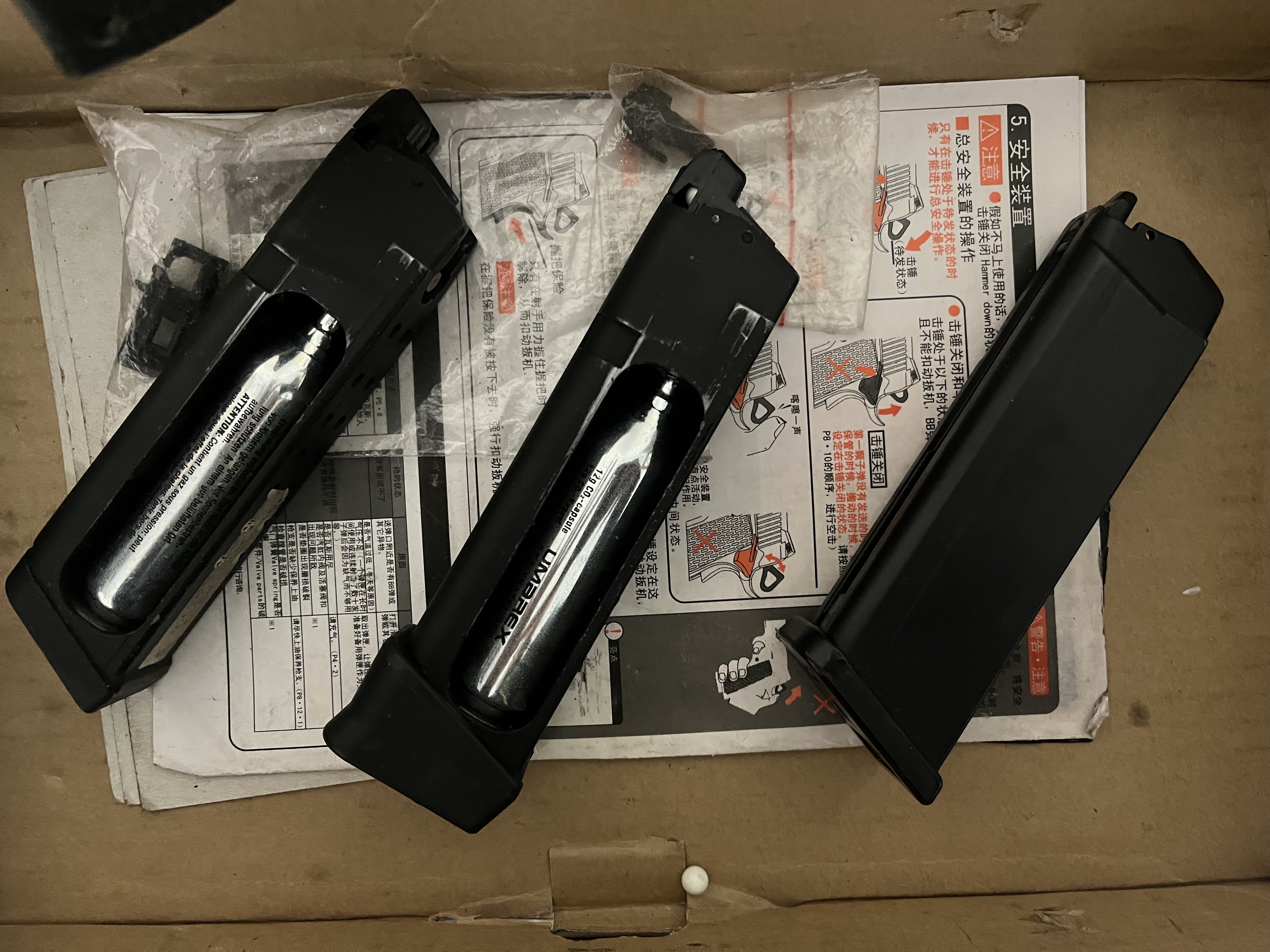 Replika działa ale tylko na oryginalnym magazynku dwa pozostałem pomimo tego że pasują nie powinny być stosowane 1.magazynek 100% działa jest w kapiecie CO2 2.Magazynek brakuje częściej lecz działa CO2 3.Magazynek green gas działa lecz jak widać na zdjęciu urwała się blokada