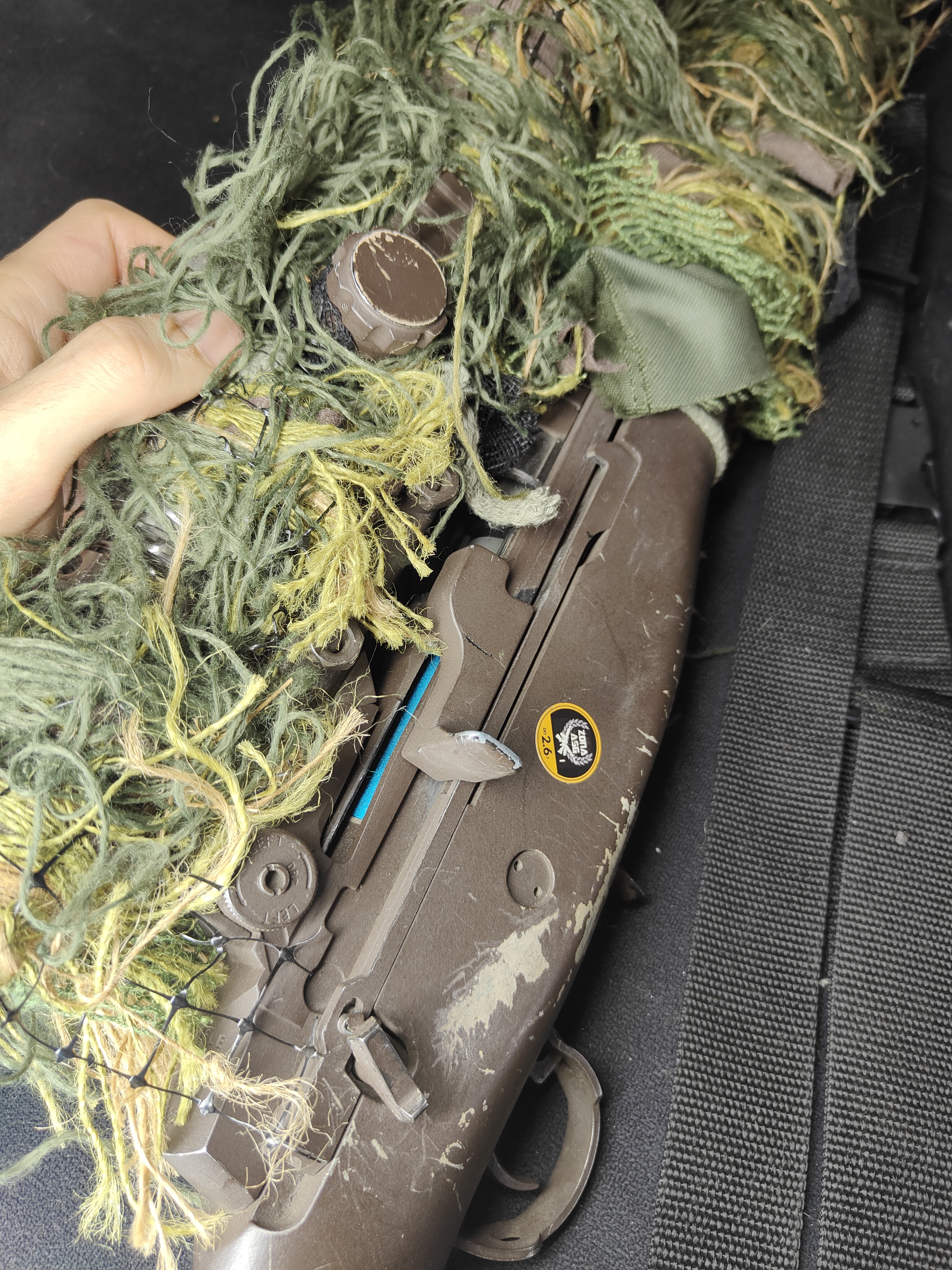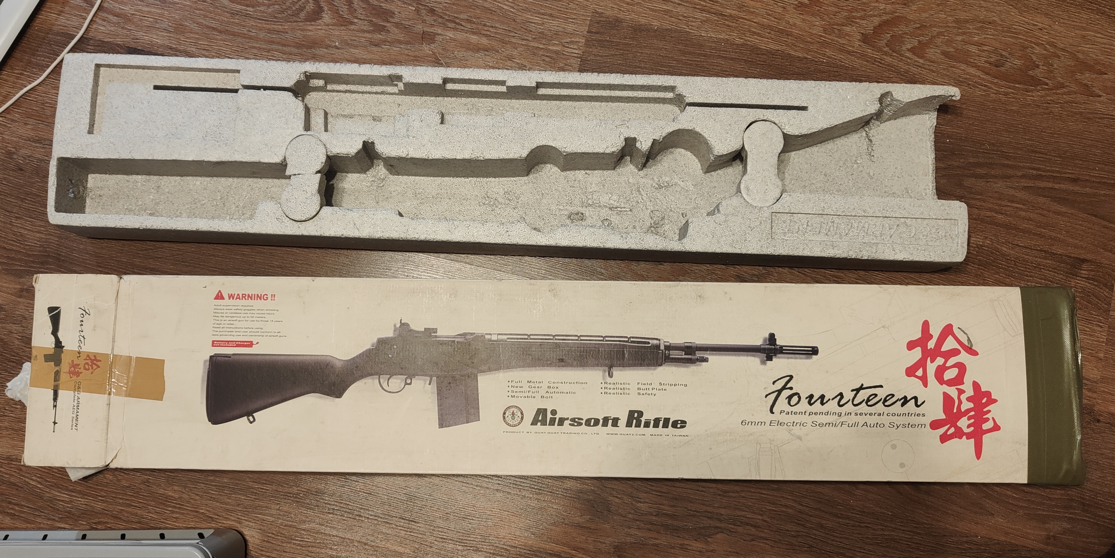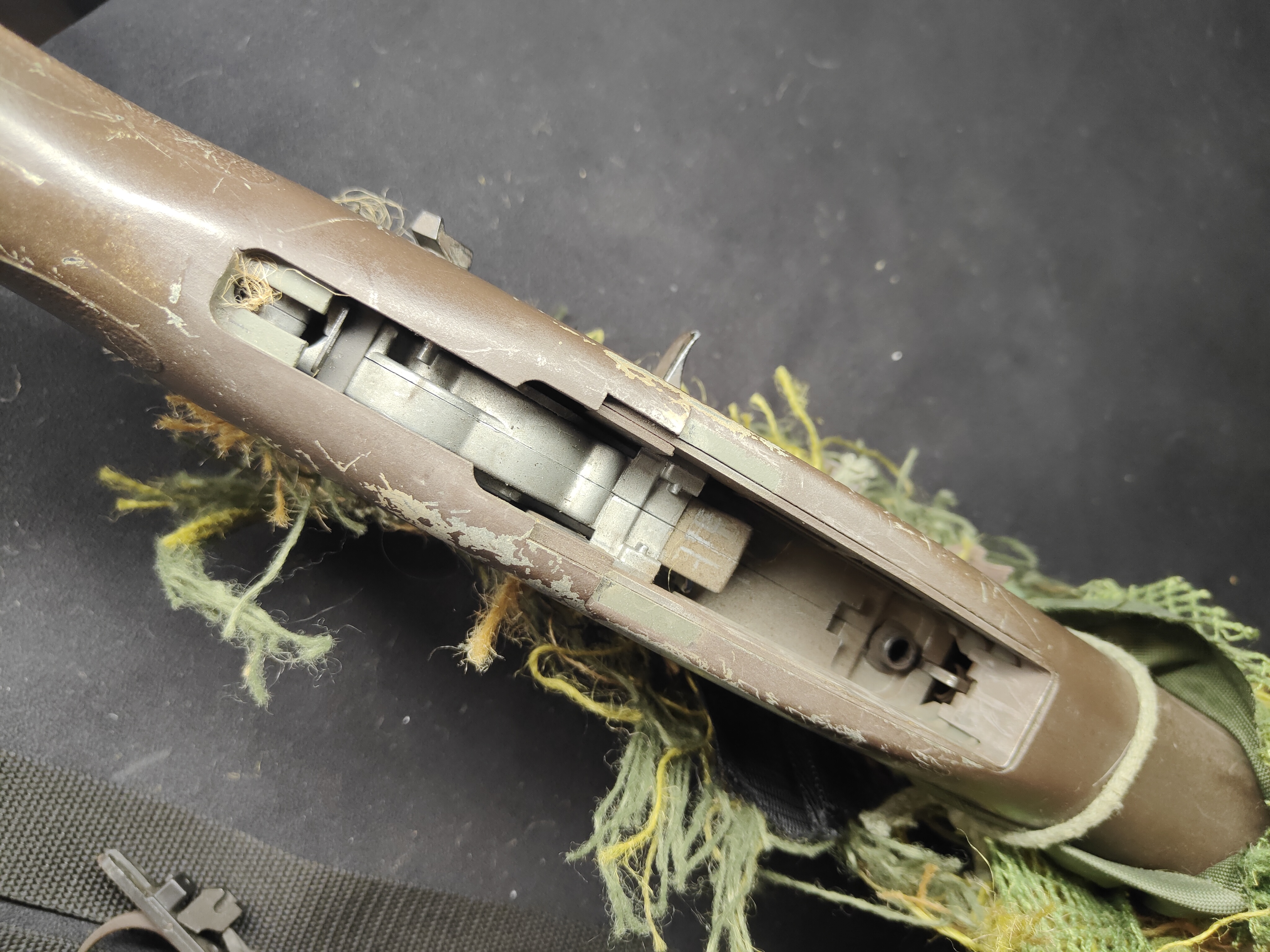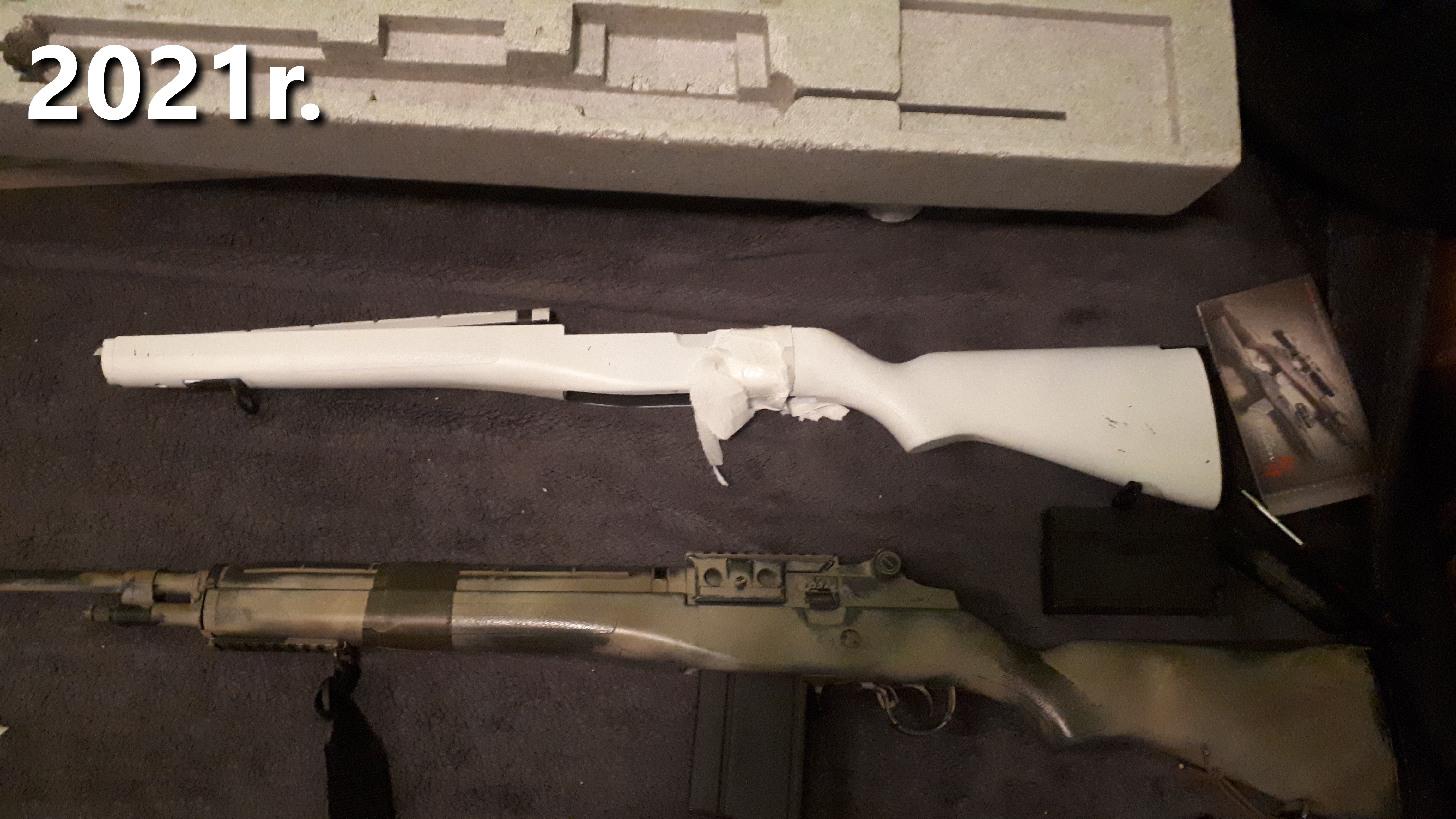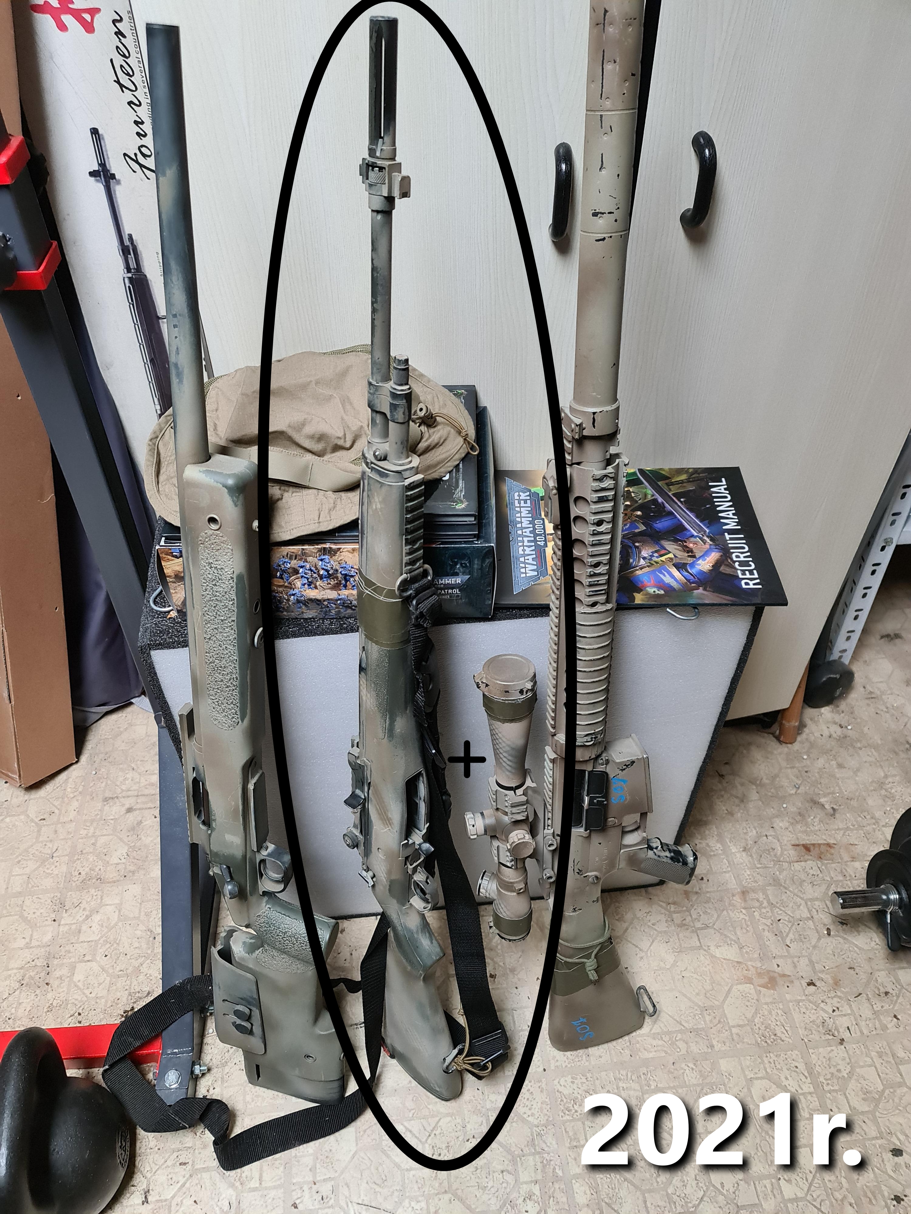 Replika karabinu wyborowego M14, oryginalny model G&G GR14 (Starsza wersja - ciężko już znaleźć w sieci, ale dołączam też oryginalne pudełko do zestawu) po modyfikacjach i drobnym tuningu, używana, w pełni funkcjonalna. Replika z "rodowodem", kiedyś kupowana od dobrego znajomego (odkupiona w 2021, zdjęcia stanu przed moją kadencją w galerii), bardzo zadbana, brała udział w kilku znaczących wydarzeniach airsoftowcyh na przestrzeni lat :D Sprzedaję z sentymentem, bo to była moja perełka do gry w lesie. Ostatnio gram głównie CQB i przeszedłem na CO2, nie mam już ekipy do bushcraftu, więc repka trafi do kogoś, komu bardziej się przyda i kto doceni jej charakter :p Stan ogólny: Replika sprawna technicznie. Po drobnym tuningu, prędkość wylotowa około 450 fps, moc lekko pod 2,5 J. NIE MA ZAINSTALOWANEJ BLOKADY TRYBU FULL-AUTO!!! Zewnętrznie nosi ślady użytkowania, zarysowania na kolbie i elementach obudowy + Wyryty podpis "Agnes" na domyślnej kolbie. Ślady noszą ze sobą historię, proszę nie myśleć o tym jak o zaniedbaniu :') Mechanika działa poprawnie. Była serwisowana i częściowo modyfikowana. Co w zestawie: • Replika M14 G&G GR14 w domyślnej obudowie z solidnego tworzywa przemalowanej na korzenny brąz pod Ghillie po poprzednim malowaniu (foto z 2021r.; poprzednik miał malowanie pustynne) • Dodatkowa cała biała obudowa (zimowa), też z tworzywa. • Luneta w b.dobrym stanie (też malowana na brąz) AIM-O 3.5-10x40E-SF zamontowana na dedykowanej pod M14 szynie RIS. Luneta ma zaklejone szkła grubymi szkiełkami z PCV o grubości ok. 4mm, które sprawdzają się lepiej niż plastiki ochronne, chociażby z gunfire itp. • Ghillie własnej roboty na replice (aktualnie jest zamontowane "na stałe", nie rozcinałem jej, ponieważ za dobrze leży, ale w celu serwisowania, trzeba będzie ją rozciąć, najlepiej od dołu, żeby móc ją ponownie założyć - najlepiej lepiej zaplanować jej ułożenie, bo sam nie byłem w tym mistrzem :p ). • Ponczo ghillie z kapeluszem, własnej roboty. • Duży zestaw materiałów do dokończenia ghillie, w tym juta, specjalne włókna, skrawki tkanin oraz spray maskujący oliwkowy/wojskowy. Stan Ghillie jest wystarczający (efekt mniej więcej widać na moich zdjęciach w galerii), ale są jeszcze miejsca i elementy do dopracowania podobnie jak w ghillie na karabinie dlatego też, do zestawu dołączam pełny pakiet do tworzenia ghillie (mam nadzieję, że trafię na kupca, który będzie miał więcej czasu ode mnie i uda mu się dopiąć projekt do końca :D ). • Oryginalne pudełko. • Kilka zapasowych części widocznych na zdjęciach. • Instrukcja obsługi. • 3 magazynki, z czego: jeden low-cap, dwa hi-cap. Jeden hi-cap niestety uszkodzony, były próby naprawy przeze mnie, ale bez skutku (być może jakiś serwisant dałby radę) Drugi hi-cap został dokupiony z ogłoszenia olx i jest sprawny, dokupiłem głównie, żeby sprzedać z działającym hi-capem, ponieważ po wielu bojach uważam, że z tym typem magazynka replika działa najprzyjemniej. Istnieje prawdopodobieństwo, że znajdę dodatkowego low-capa po przeszukaniu zapasów. !! ODBIÓR TYLKO OSOBISTY !! W razie pytań proszę pisać DM lub zostawić numer w wiadomości, postaram się odpowiedzieć jak najszybciej. Można też mnie złapać na Discord ---> nazwa: szkorpion Odbiór tylko osobiście i pokaz działania po wcześniejszym umówieniu. Zapraszam na oględziny, w tygodniu jestem dostępny w dwóch miejscach, w Siemianowicach Śląskich w godzinach od 9:00 do 16:00 i w Rudzie Śląskiej po godzinie 17:00 (weekendy tylko w Rudzie Śląskiej). Proszę umawiać się najlepiej dzień wcześniej, żebym mógł zapakować zestaw do bagażnika (szczególnie przy odbiorze w Siemianowicach). Zdjęcia przedstawiają faktyczny stan repliki. Aukcja będzie aktualizowana o dodatkowe informacje i zdjęcia (m.in. zdjęcia z chronowania). Postaram się też zamieścić dokładną specyfikację z częściami, które uległy zmianie np. jaki aktualnie jest gearbox, hop-up i lufa, choć jak dobrze pamiętam to nie było robionych wiele zmian od czasu kiedy odkupiłem ją od znajomego, który już ją tuningował. Od 2021 replika przeszła jedno gruntowne usprawnienie przeprowadzone w serwisie. REPLIKA SPRZEDAWANA BEZ BATERII!! Zalecana bateria do tej repliki to 8,4V, której niestety nie mam w zestawie, ponieważ ta, zużyła się w ostatnich latach. Na oględzinach możliwe będzie przetestowanie repliki, postaram się zabrać baterię 7,4V z innego zestawu. Link do pełnej biblioteki zdjęć: https://drive.google.com/drive/u/1/folders/1xrEg25-nsoc652Vcv0OA2ocVM0MfuJL7?usp=sharing W razie jakichkolwiek pytań zapraszam do kontaktu!