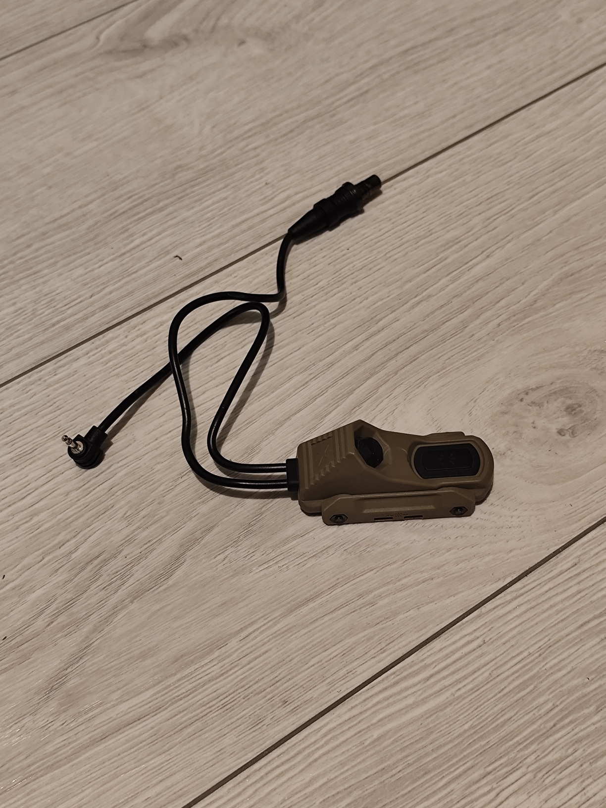 Witam, mam na sprzedaż przycisk na RIS typu AXON do aktywacji latarek i celowników laserowych. Włącznik stały i chwilowy latarki plus chwilowy lasera. Latarka na wtyczkę typu surefire, laser na mini jack - 2.5mm (większość puszek chińskich do ASG ma tego typu gniazdo). Ma oznaczenia, kolor DE. Stan BDB. Mam jeszcze drugi taki sam ale bez oznaczeń, sprzedam 5zł taniej. Cena: 70zł