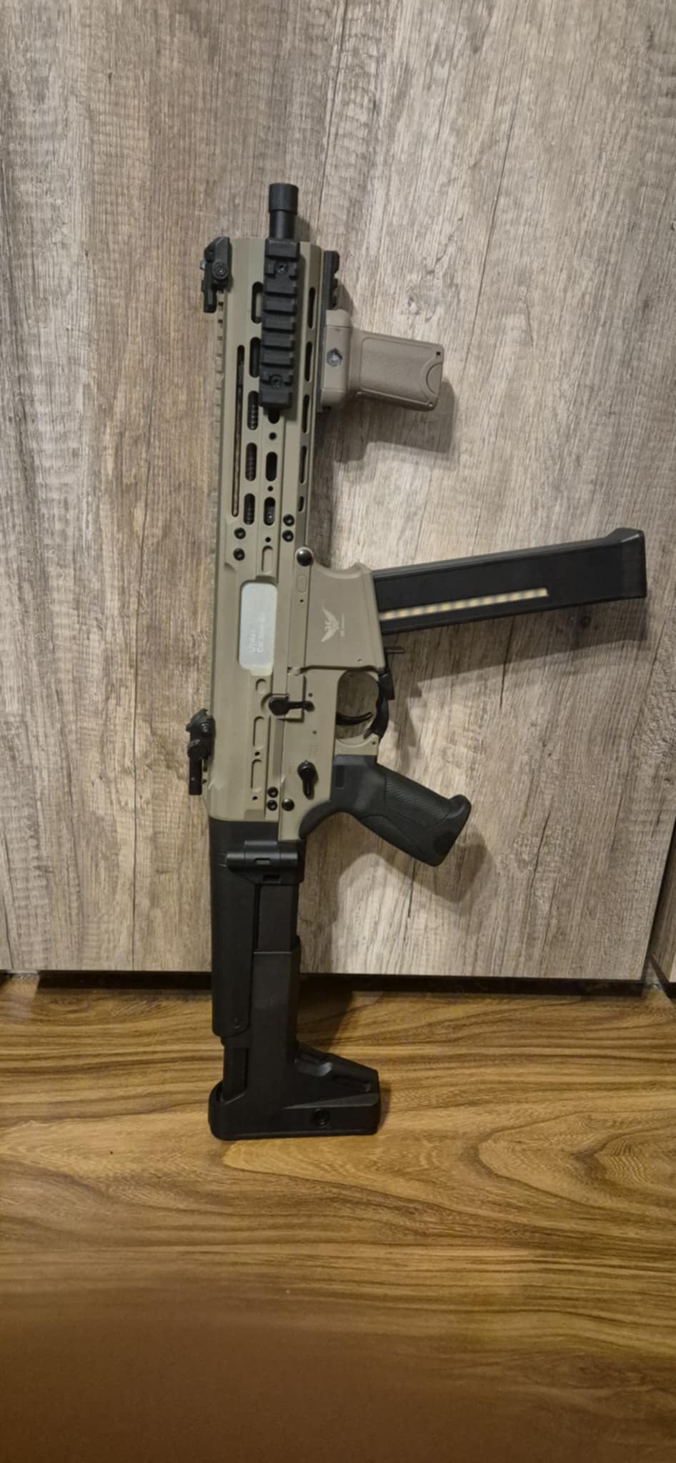 Replika sprawna oprócz tego że czasami ma problem z podawaniem, generuje około 300fps (problem z gumką hop up lub magazynkiem) w zestawie 2 magazynki i chwyt przedni