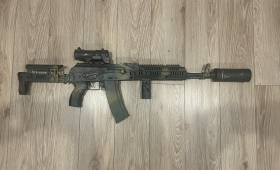 Witam. Sprzedam, praktycznie nową replikę AK105 CM.053B z fabrycznie montowanym układem Eshooter. Wraz z repliką dwa magi i wszystkie dodatki widoczne na zdjęciu od 5ku (założone na replice, niektóre wymagają dopasowania jak choćby prowadnica kolby czy pokrywa zamka). Replika nie była na żadnej strzelance. Za wszystko to co widać na zdjęciu dałem ponad 2500 zł więc cena 1200 zł jest już ostateczną do zapłaty. Po więcej informacji zapraszam do kontaktu.