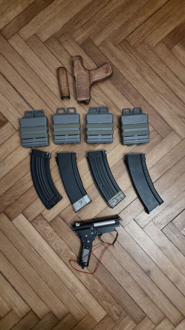Witam. Przyszedł czas na wyprzedanie zalegającego szpeju po dawnym hobby. Sprzęt wystawiam paczkami, zachęcam do negocjowania i składania zestawów, jestem chętny na negocjacje w różną stronę. W innych ofertach repliki , części oraz elementy wyposażenia które chętnie sprzedam w atrakcyjnych cenowo zestawach. Posiadam również dużo części do replik ASG drużynowego serwisanta, chętnie wyprzedamy całość w dobrej cenie. - 4 magazynki mid cap - gearbox v 3 - ładownice typu fast - chwyt drewniany AIMS (rumuński ak) (możliwość sprzedania osobno drewnianego chwytu za 180 zł) Płatność za pobraniem - przy przedpłacie kwoty wysyłki.