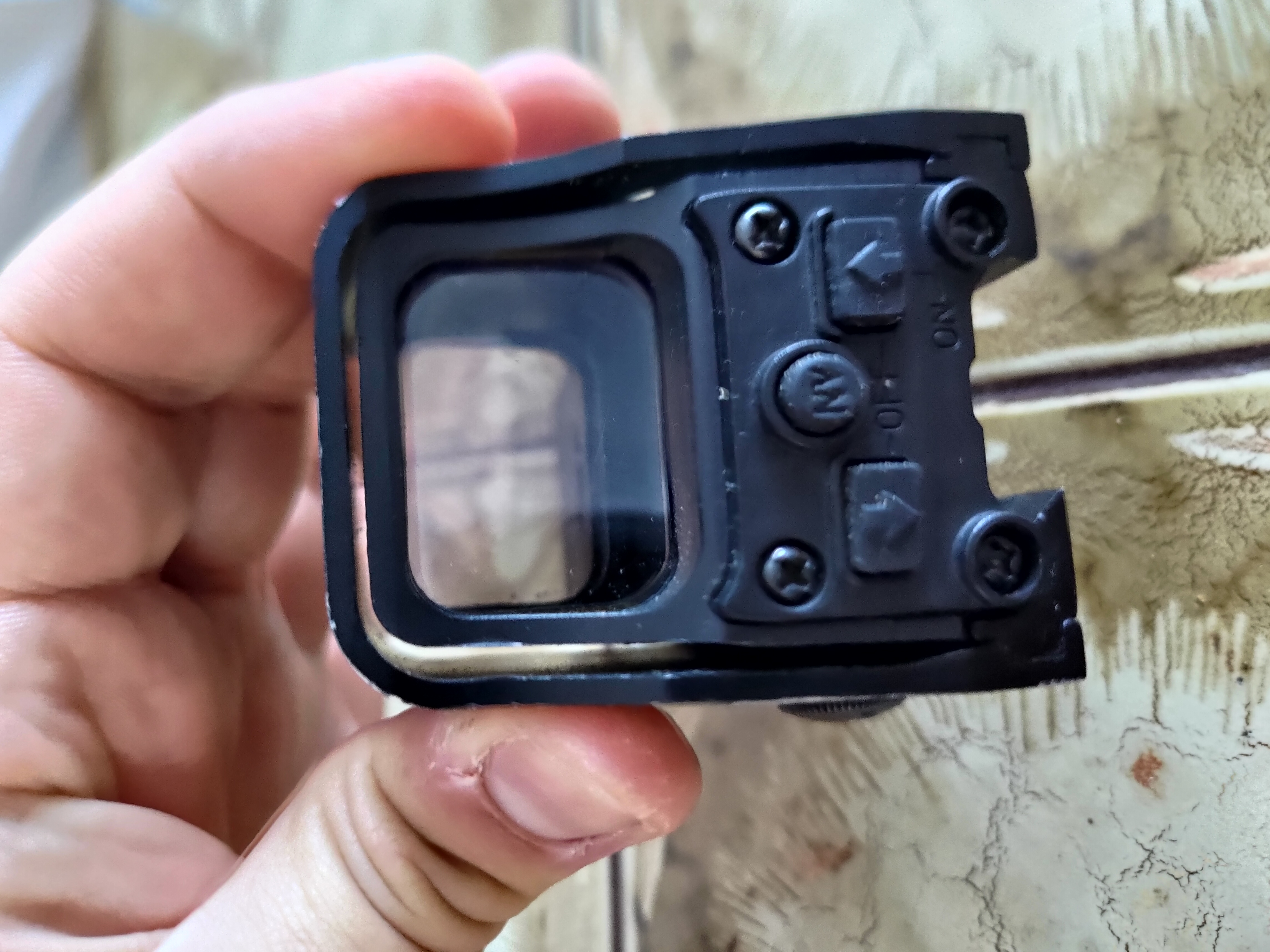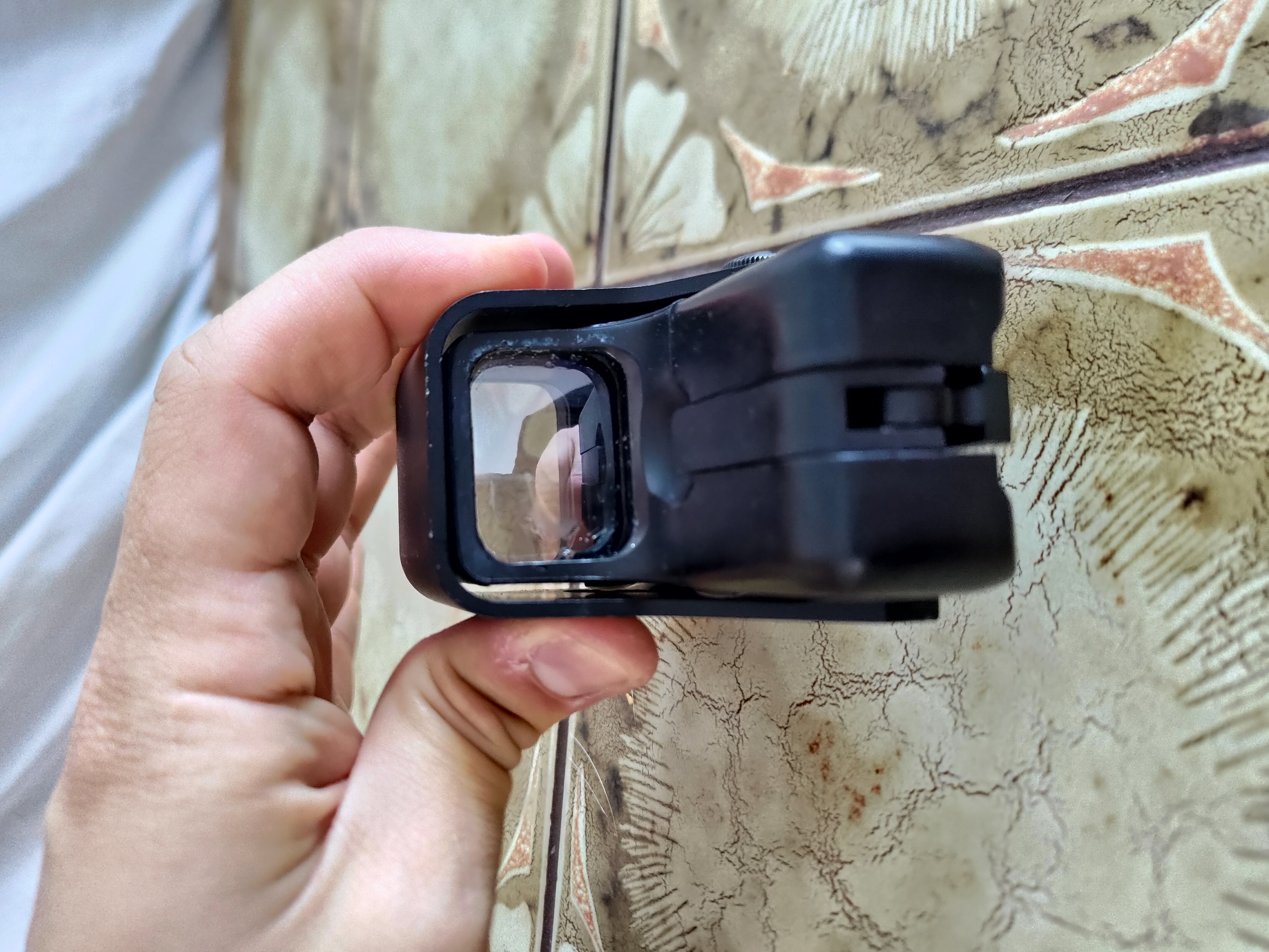 Jak w temacie. Stan widoczny na foto. Wyświetla punkt celowniczy. Szkła całe. Był dodatkiem do używanej repliki, Punkt celowniczy przesuwa sie przy strzelaniu. Do naprawy lub na części.