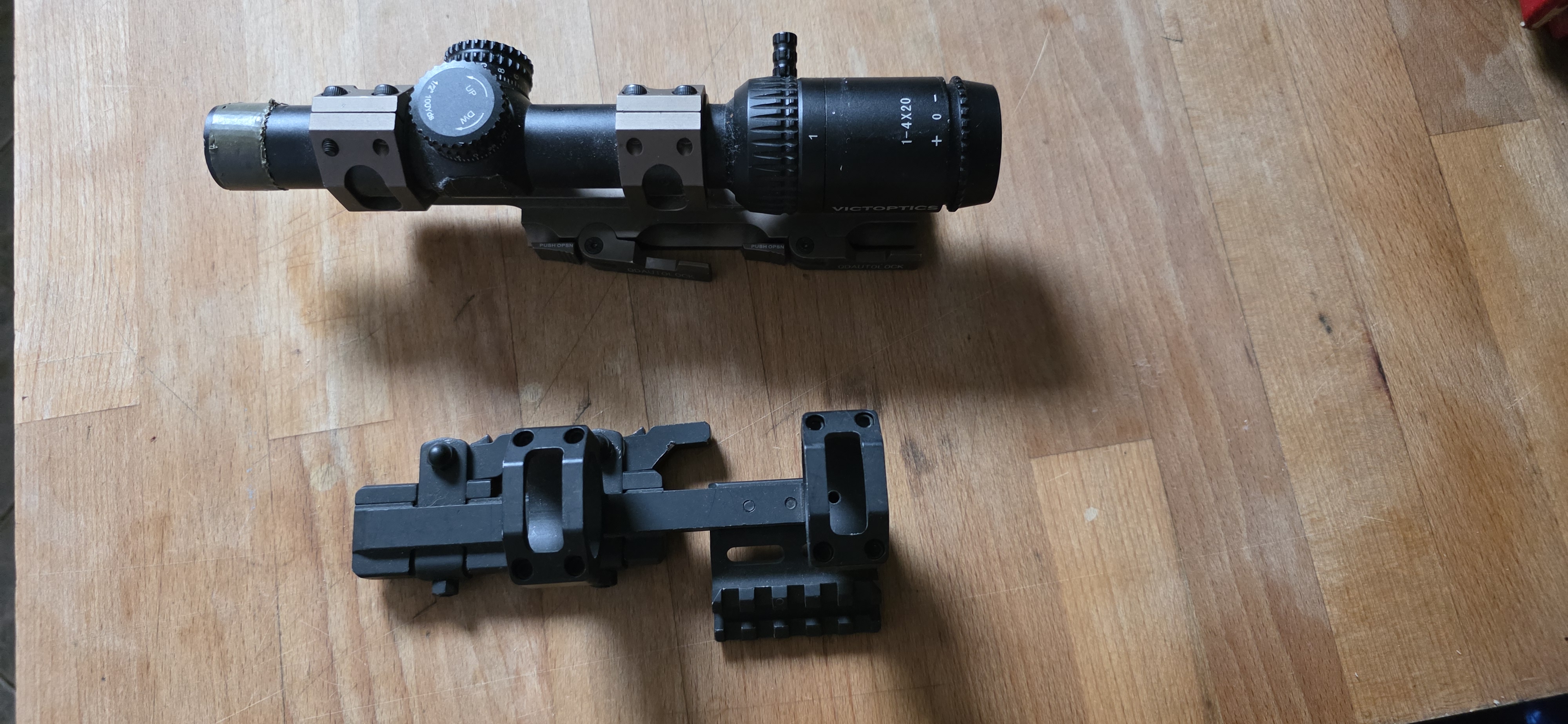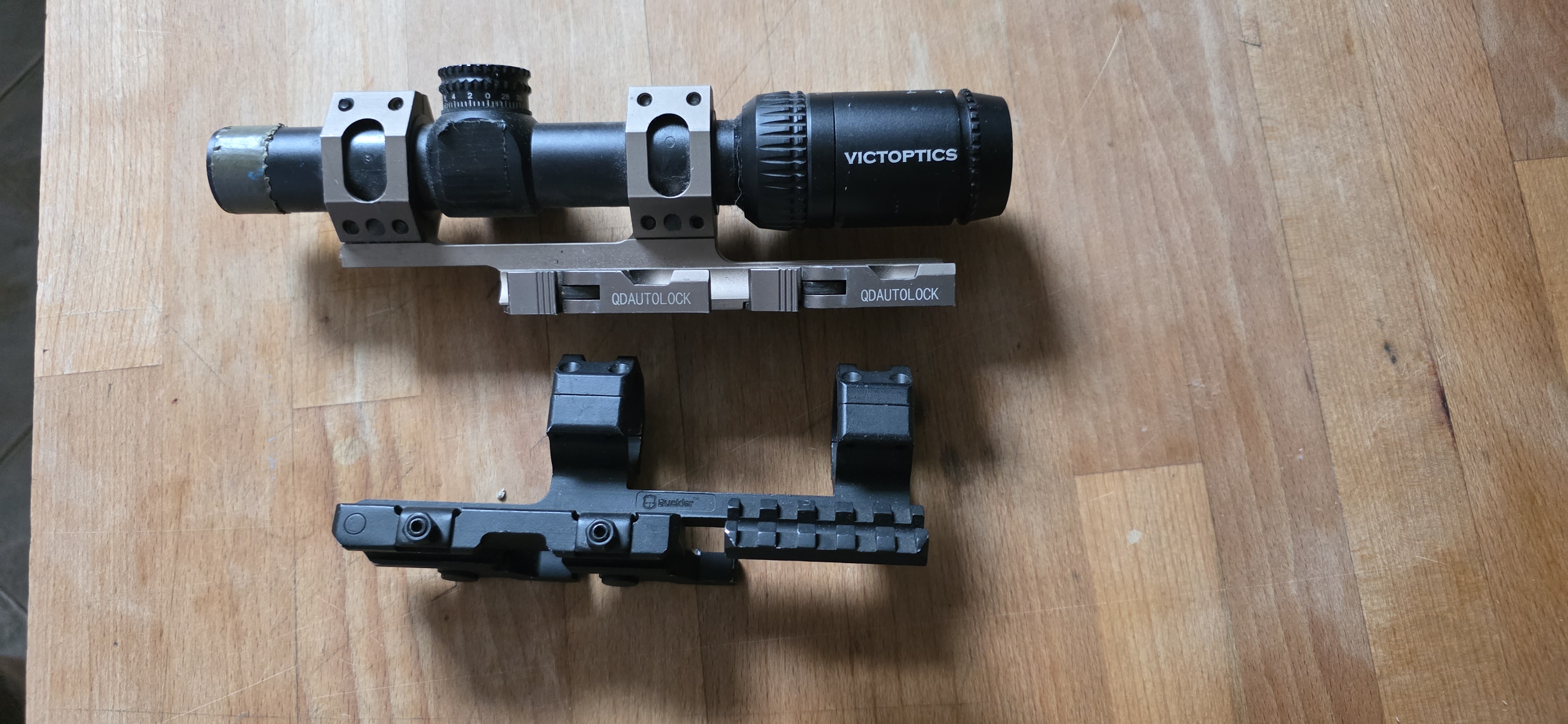 Hej jak w opisie pozbywam sie nie potrzebnej lunety z dwoma montażami. Lunetą prawie nie używana w dobrym stanie ładnie trzyma zero. Czarny montaż ma szynę ris pod kątem można wrzucić jakis mały kolimatorek, sprzedaje całość jako zestaw.