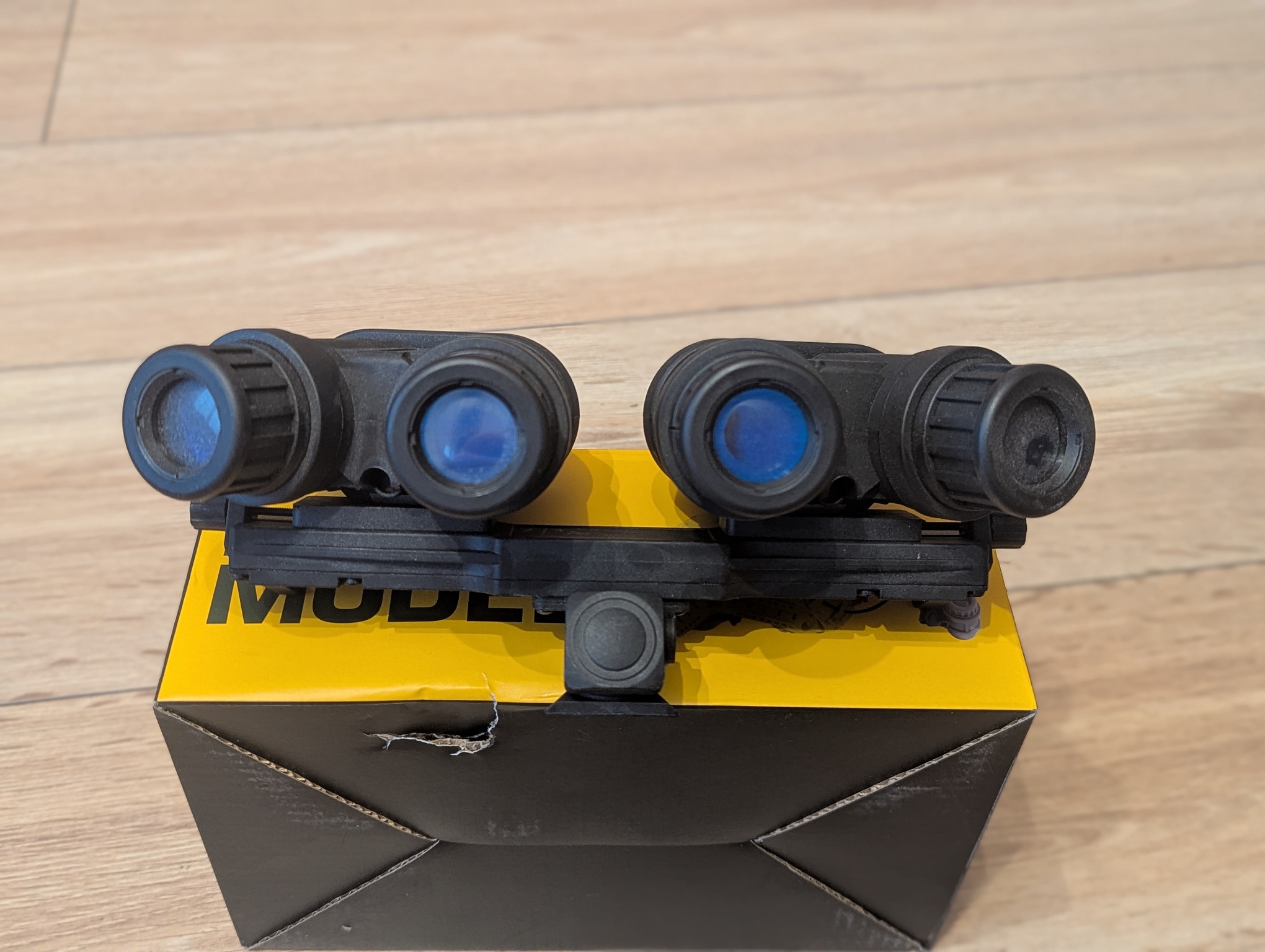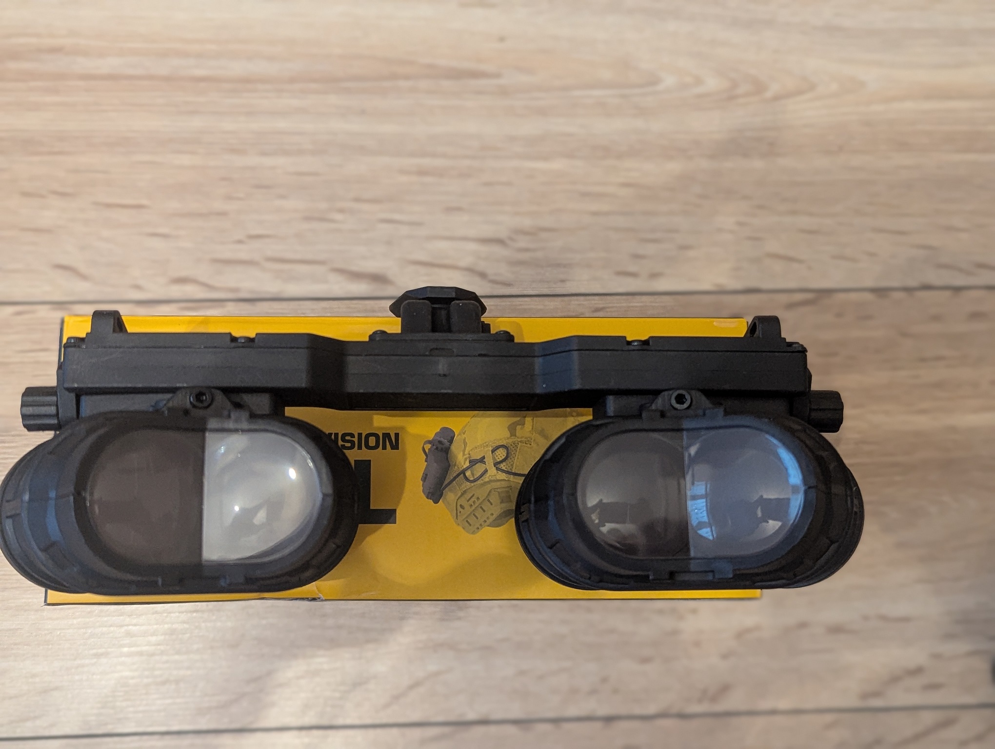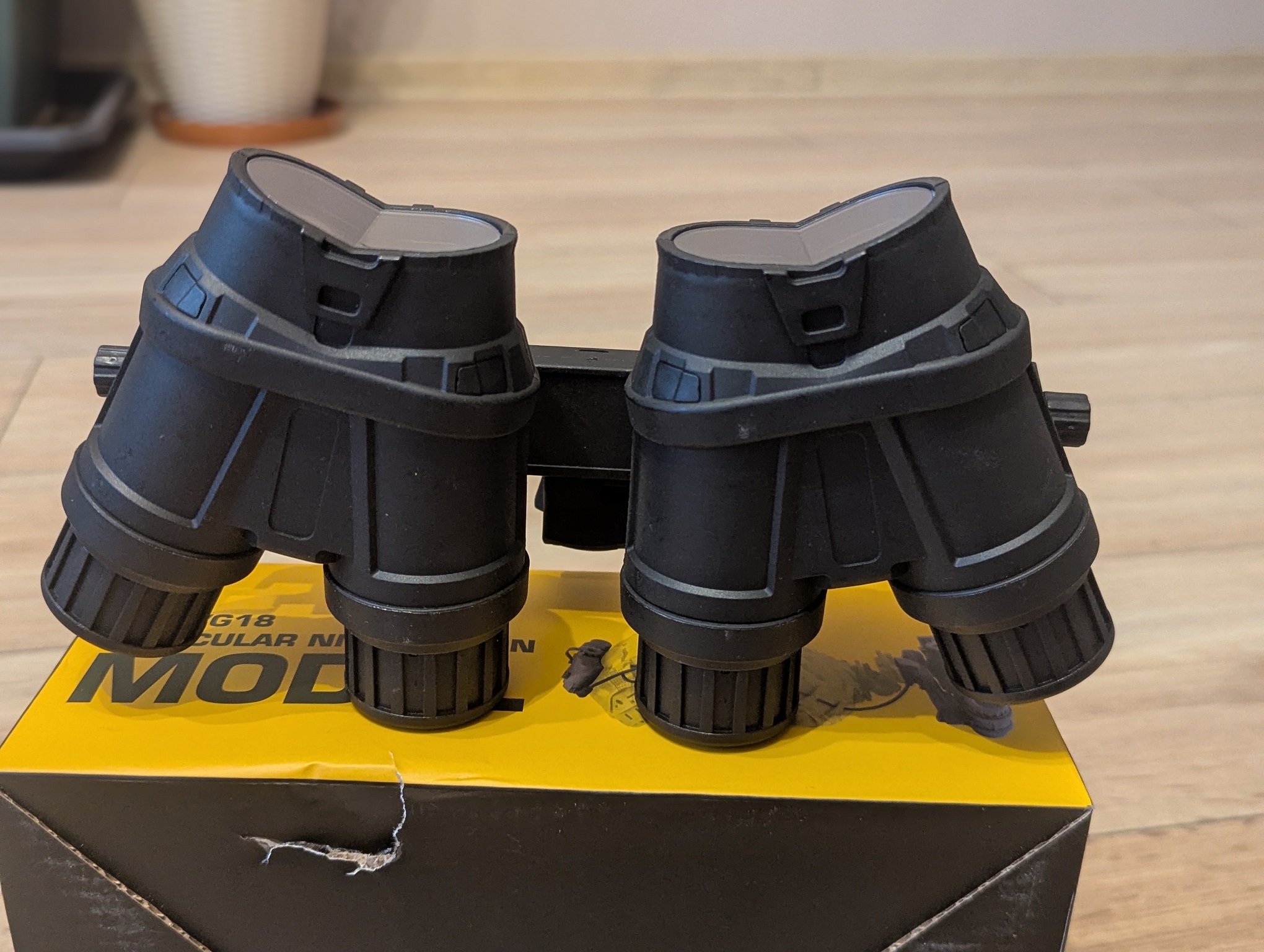 Na sprzedaż atrapa GPNVG18. Była ze mną w tym roku na WOŚPie a później leżała sobie na szafie. Producent Wosport, wykonane z jakiegoś rodzaju plastiku, kolor czarny, wizjery z jakiegoś rodzaju plexy - nie są zarysowane. Regulacja położenia wizjerów sprawna, da się je przesuwać o jakieś 2cm każdy. Uchwyt do zamontowania na montażu w bardzo dobrym stanie - nie jest nigdzie zużyty/wyszczerbiony/obrobiony. W zestawie pusta pucha na baterie czy inne obciążenie (nie jest funkcyjna) oraz przewód łączący atrapę z puchą.