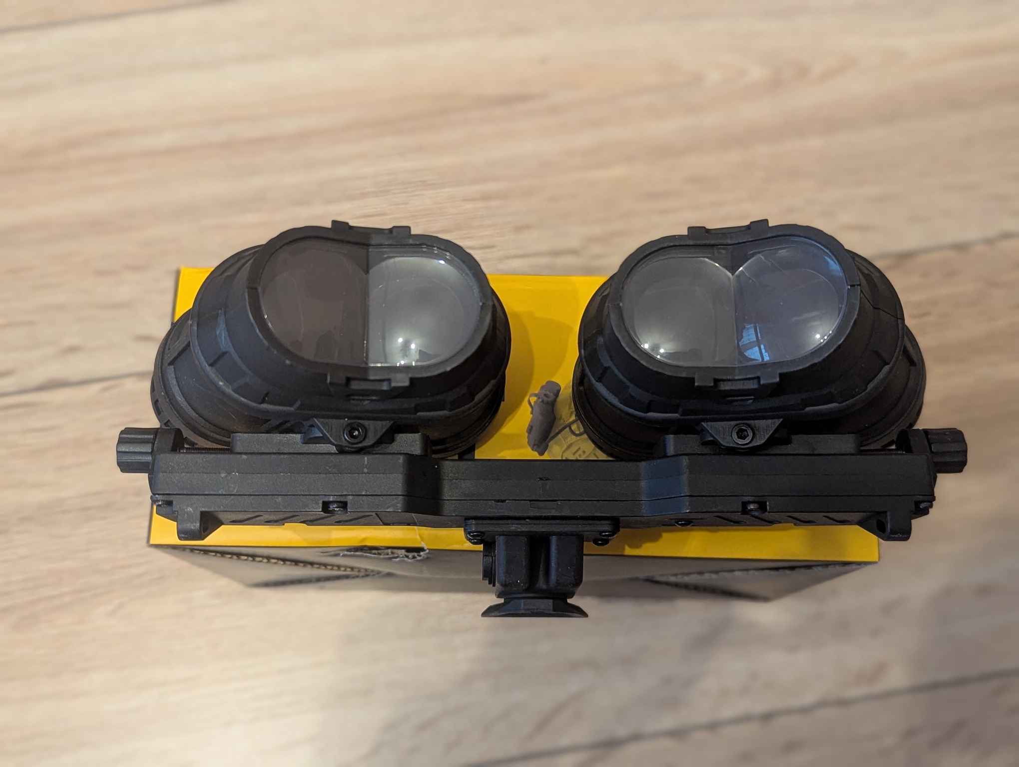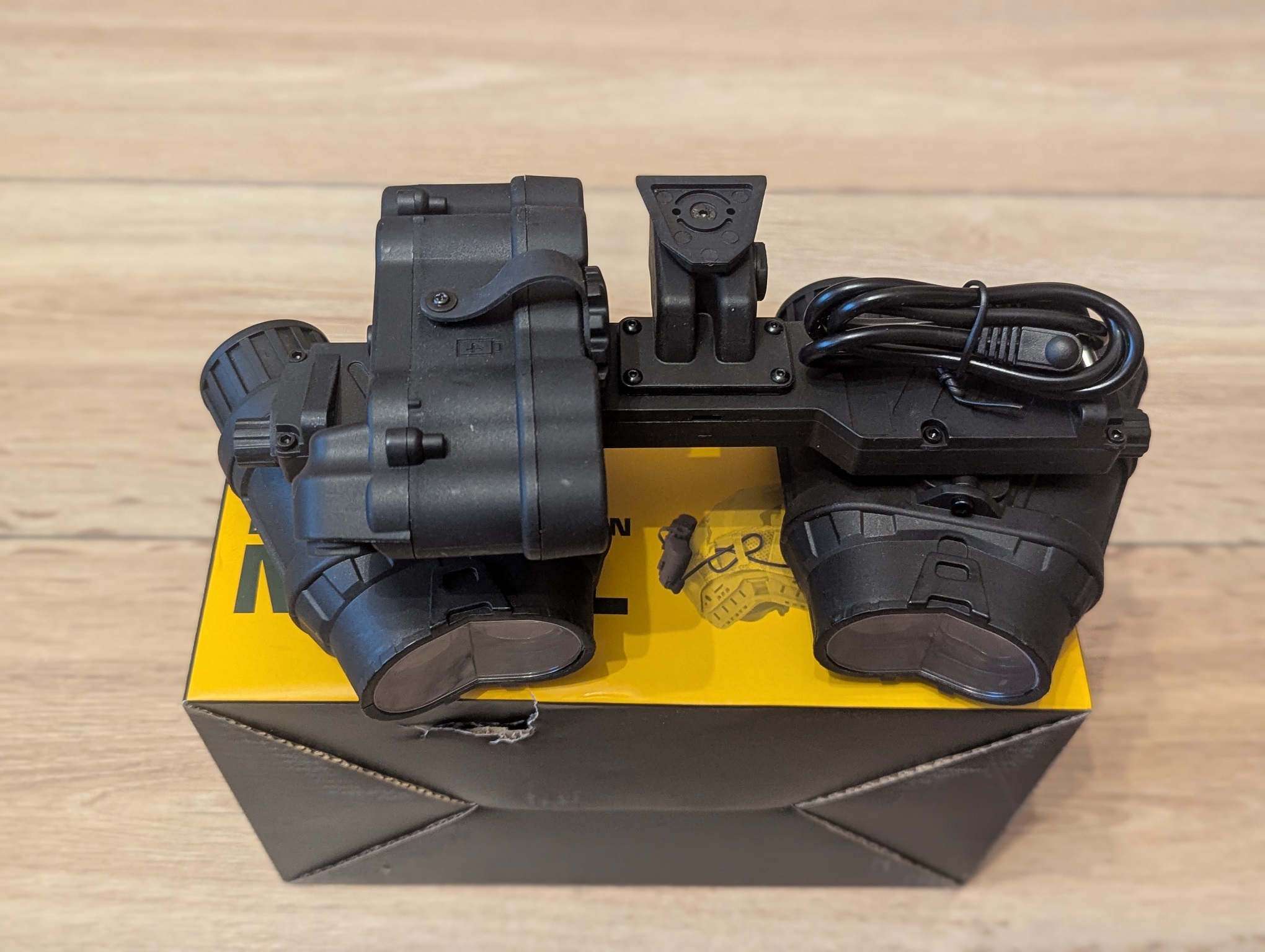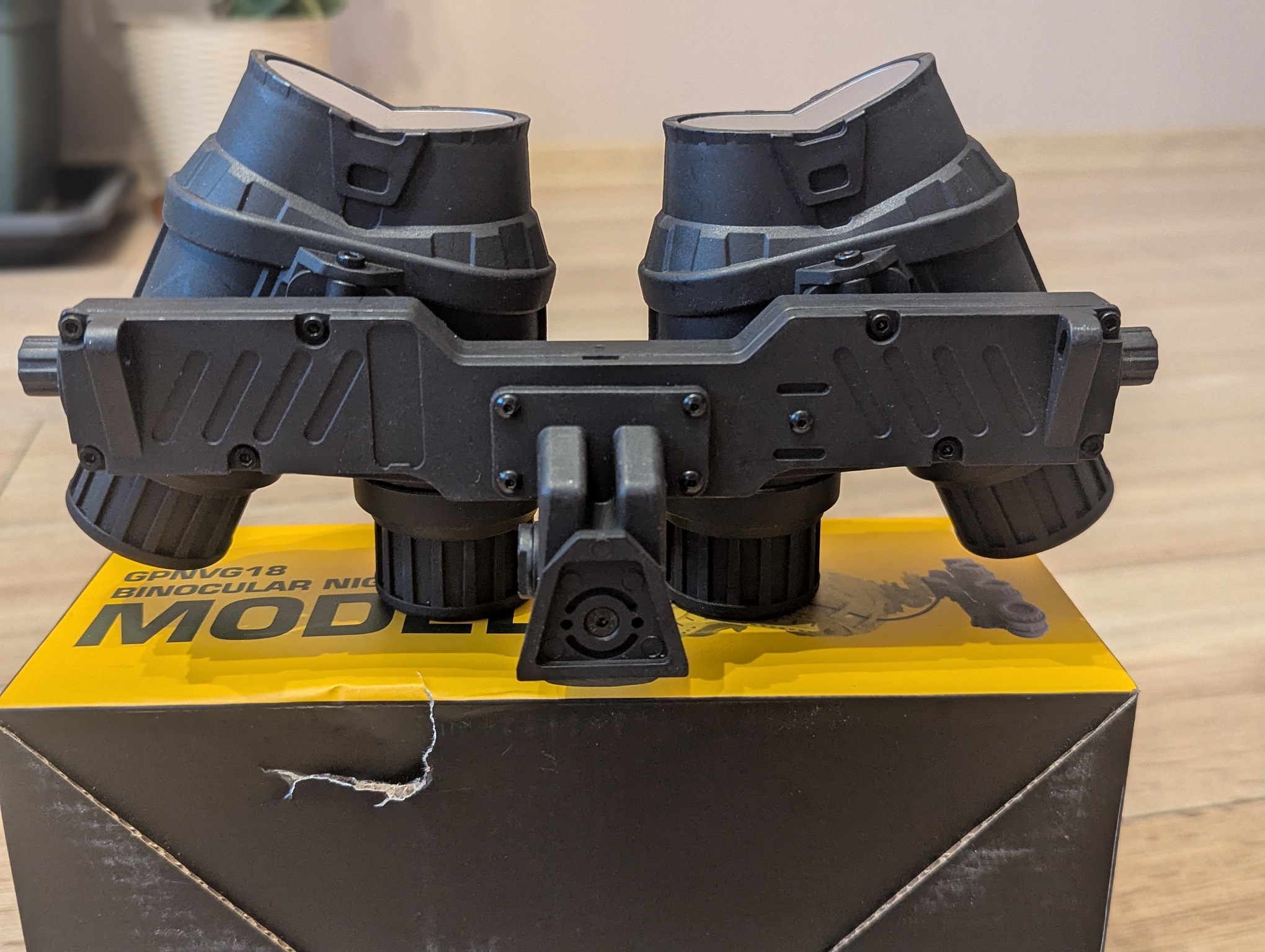 Na sprzedaż atrapa GPNVG18. Była ze mną w tym roku na WOŚPie a później leżała sobie na szafie. Producent Wosport, wykonane z jakiegoś rodzaju plastiku, kolor czarny, wizjery z jakiegoś rodzaju plexy - nie są zarysowane. Regulacja położenia wizjerów sprawna, da się je przesuwać o jakieś 2cm każdy. Uchwyt do zamontowania na montażu w bardzo dobrym stanie - nie jest nigdzie zużyty/wyszczerbiony/obrobiony. W zestawie pusta pucha na baterie czy inne obciążenie (nie jest funkcyjna) oraz przewód łączący atrapę z puchą.