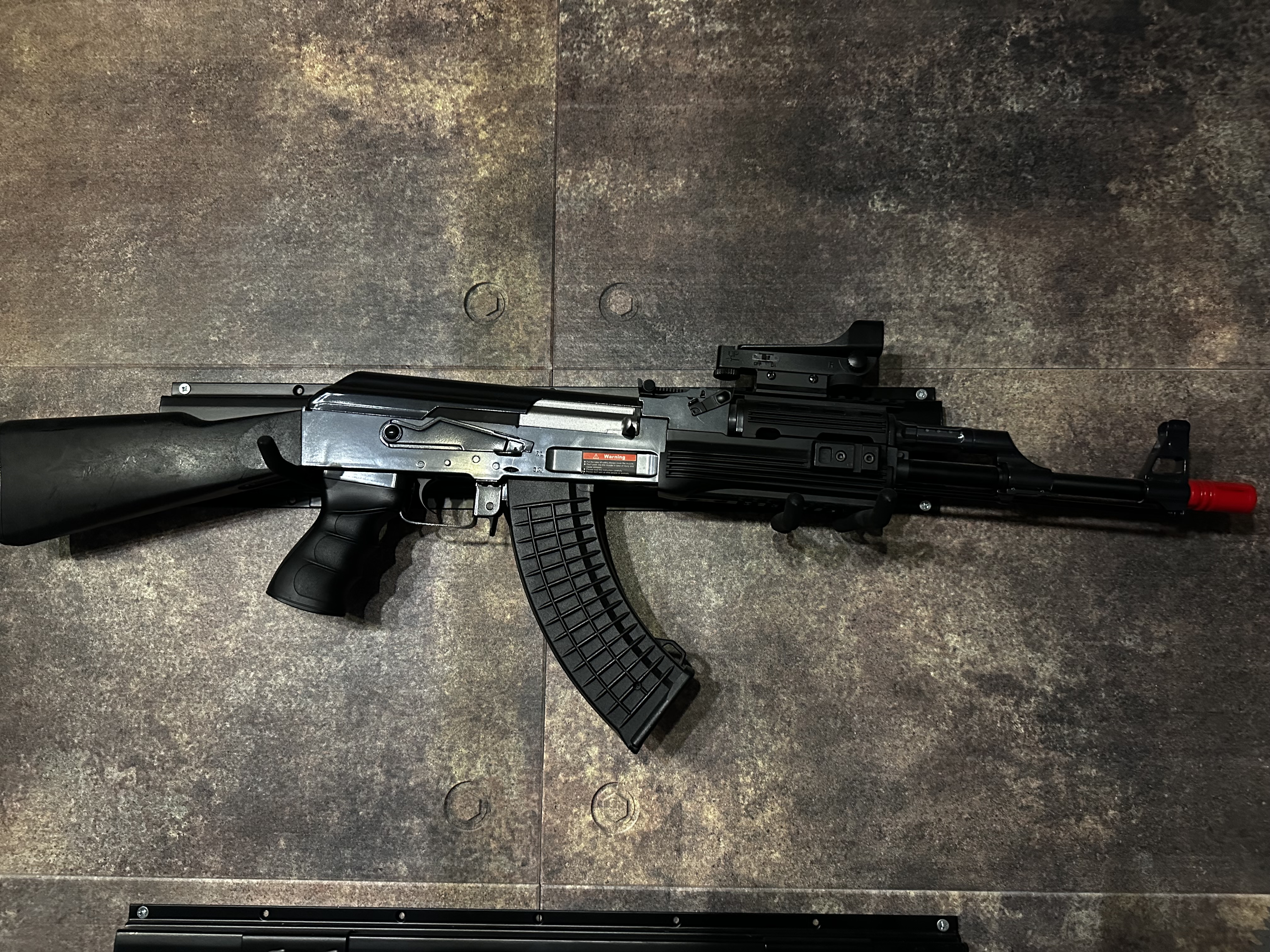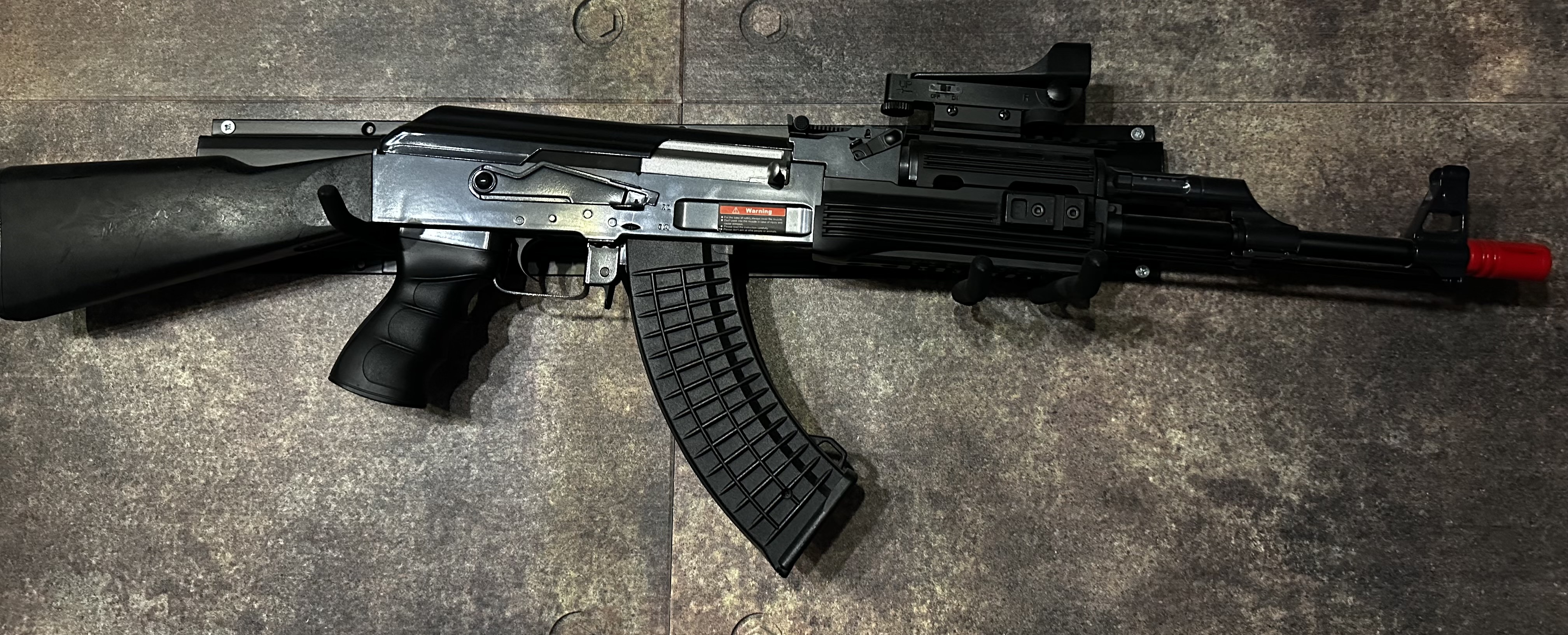 Replika ak74 , celownika holograficzny na baterie, bateria i ładowarka w komplecie, wymieniana była bateria na lepszą bo oryginalna się spaliła przy dłuższej zabawie, replika prawe w całości wykonana z metalu , jedynie magazynek plastikowy, guma na kolbie zrobiła się lekko chropowata pod wpływem czasu i użytkowania.