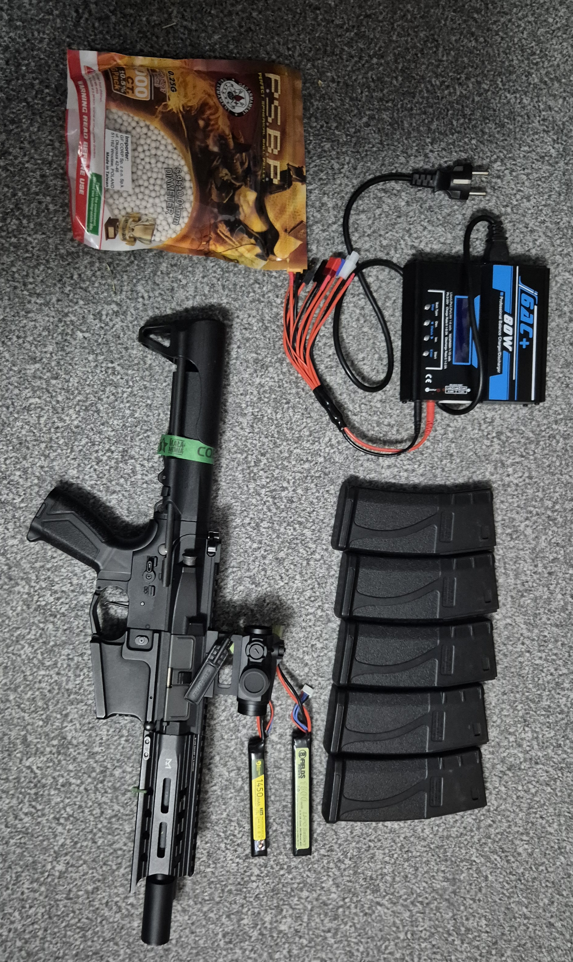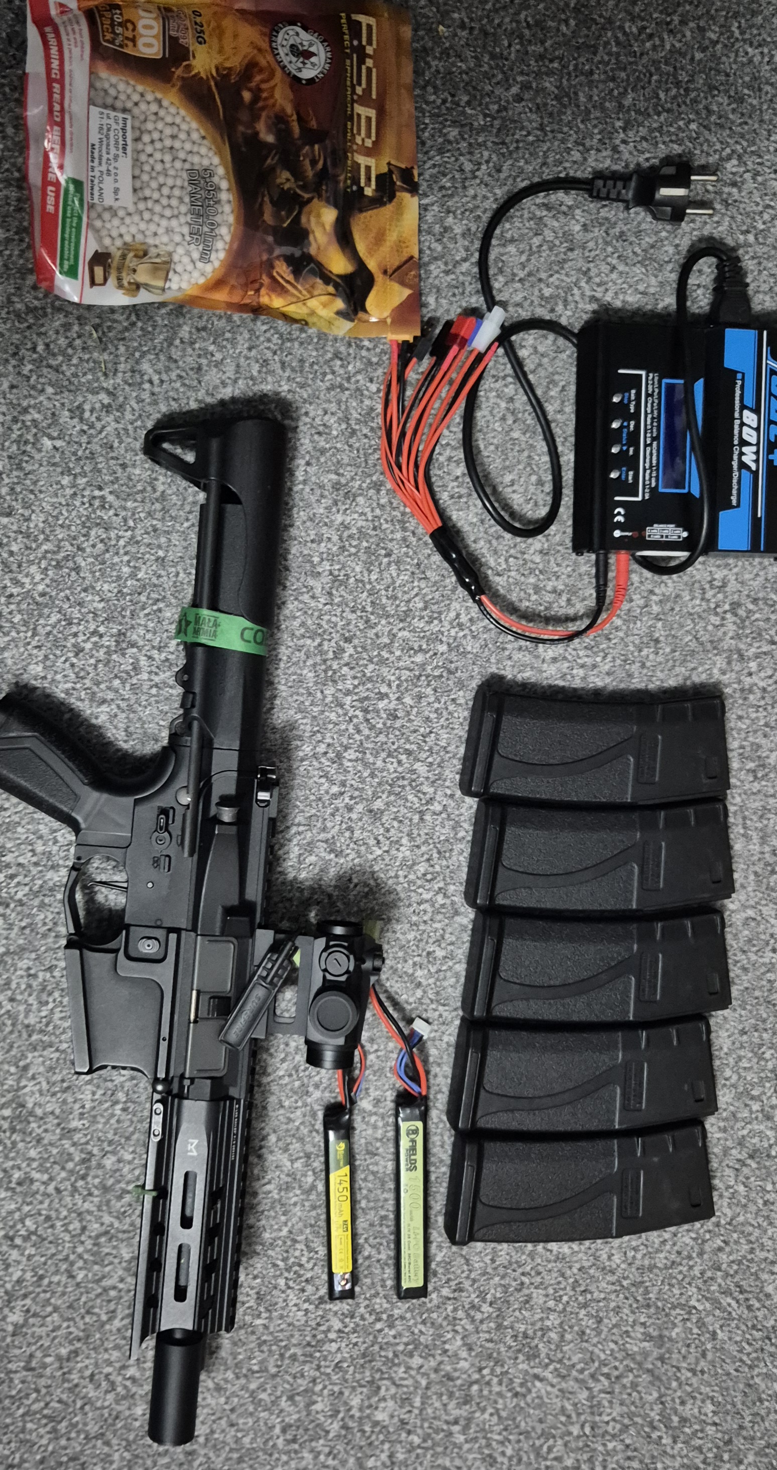 Replika g&g arp 556 Cqba Replika W zestawie Replika 2 akumulatory 11.1 5 magazynków Tracer specna Kolimator Vector Optics Maverick gen 3 Nowe opakowanie kulek g&g 0.25 Ladowarka microprocesorowa Pokrowiec na replikę specna