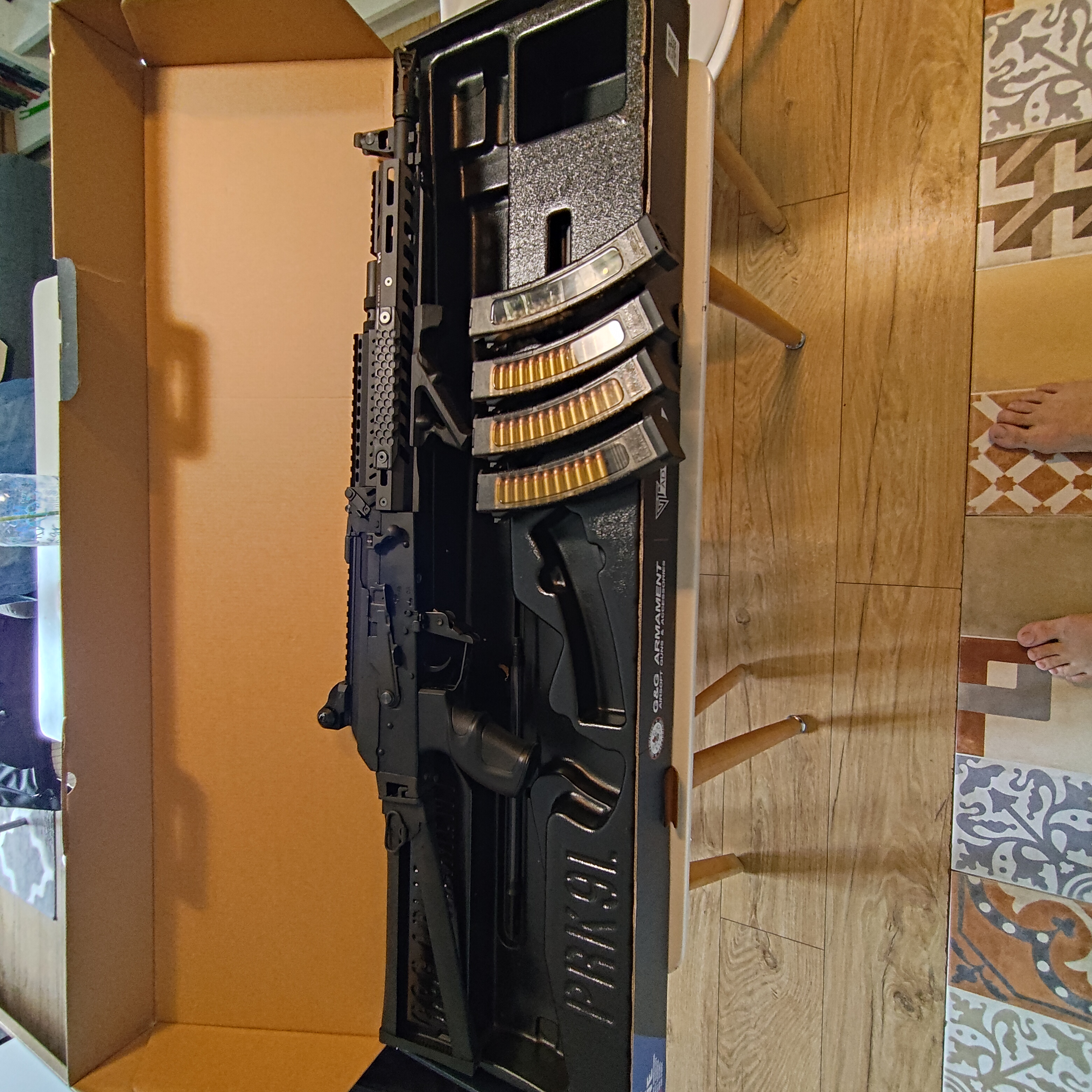 Replika kupiona w celach kolekcjonerskich Nie brała udziału w grach ASG wystrzeliła max 300 szt. W zestawie Broń 4 magi 3-low 1 -200 szt. Pudełko, akumulator Polecam