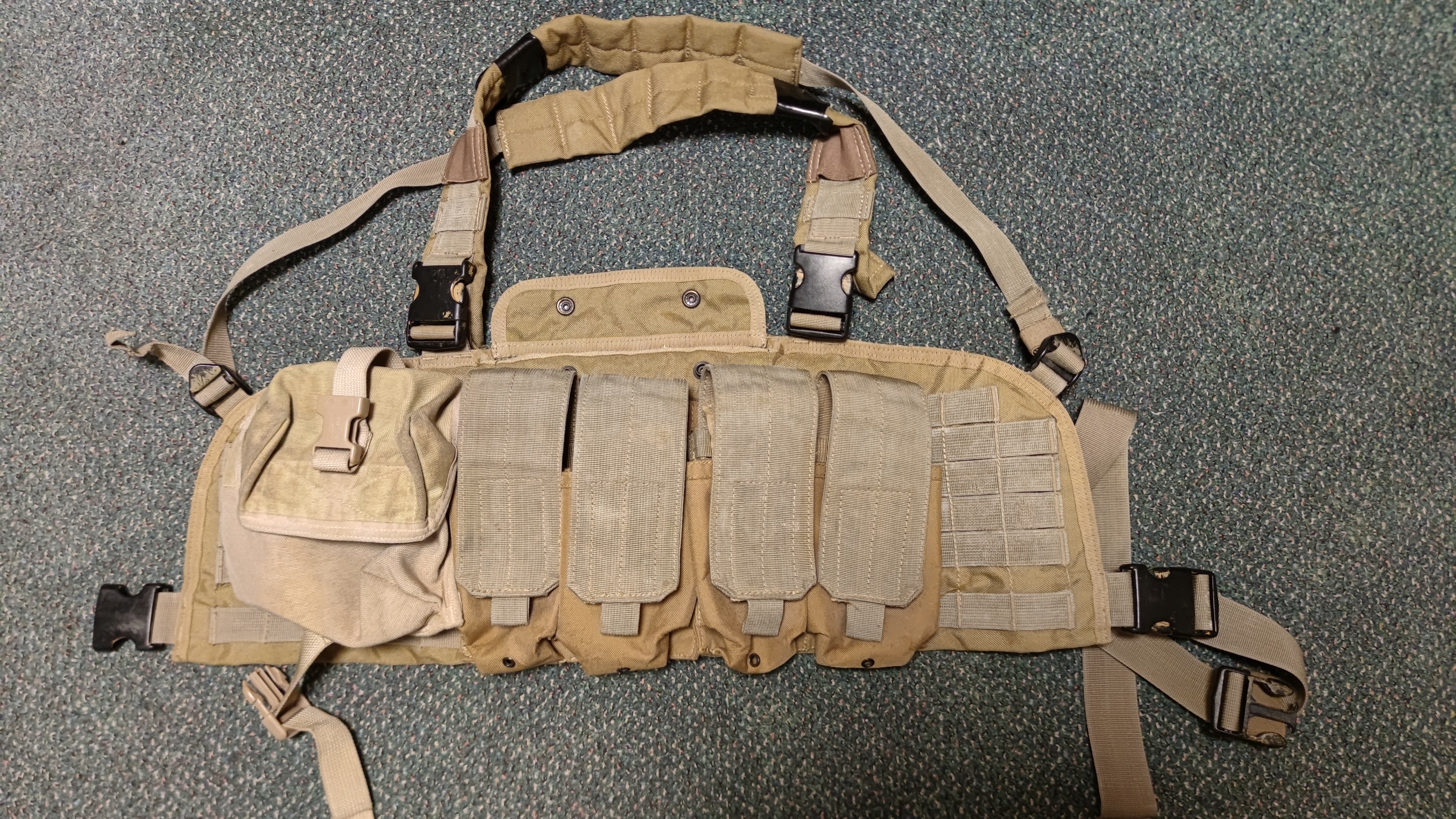 Cześć, na sprzedaż chestrig w kolorze coyote. Na chestigu pełne molle, 4 ładownice po 2 magazynki, kieszeń ogólna i kieszeń wewnętrzna. Producent: UK BULLE Dokładam gratis ładownice na radio, również w kolorze coyote Możliwy odbiór osobisty: Warszawa Ochota