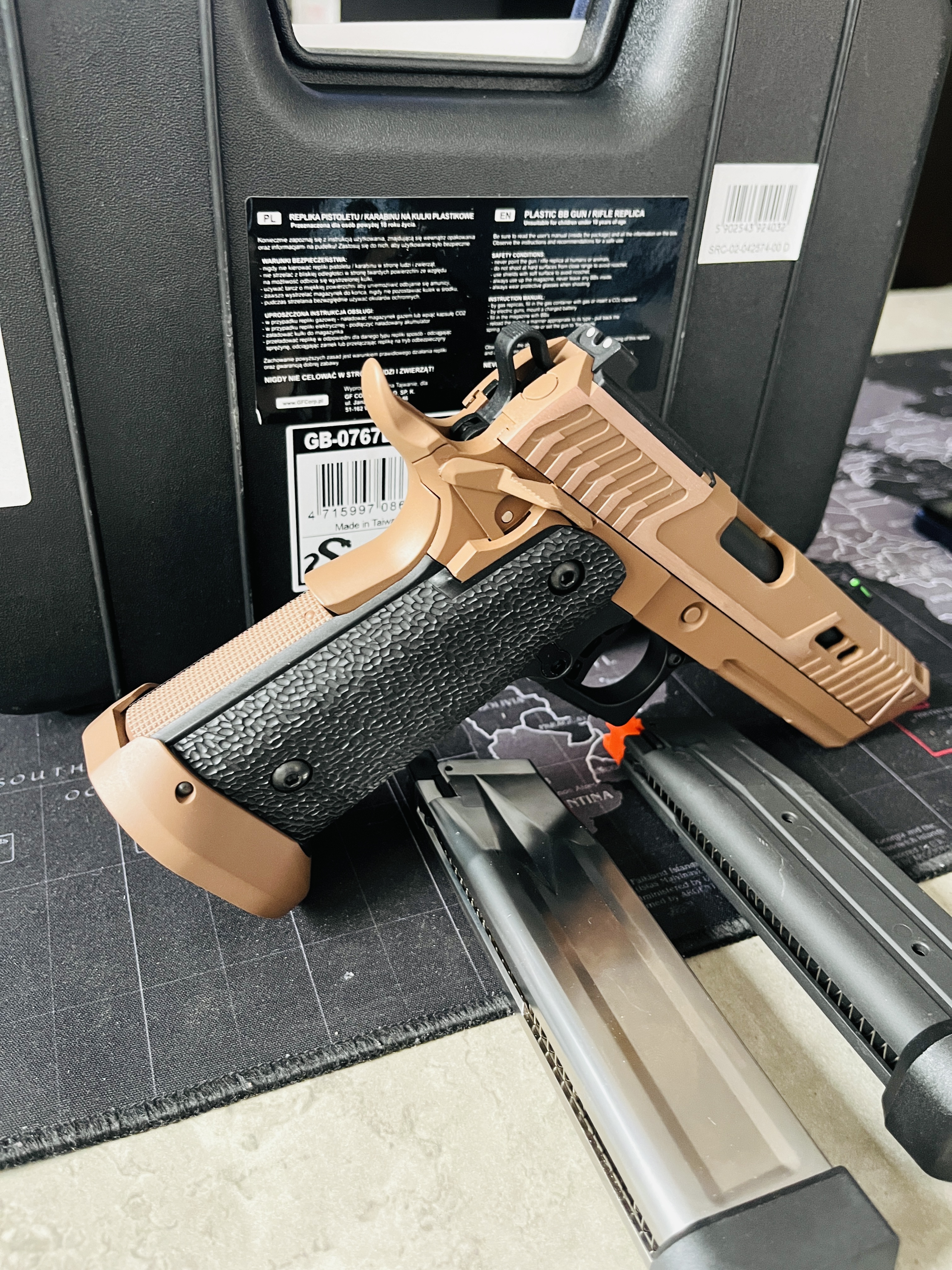 Cześć Klamka po jednej strzelance na cqb Stan perfekcyjny, w zestawie standardowy magazynek na green gas + przedłużony mag na green gas na 44 kulki z większym zbiornikiem- idealnie nadaje się na cqb Replika strzela zarówno na green gas jak i na CO2 Tel : 579717414