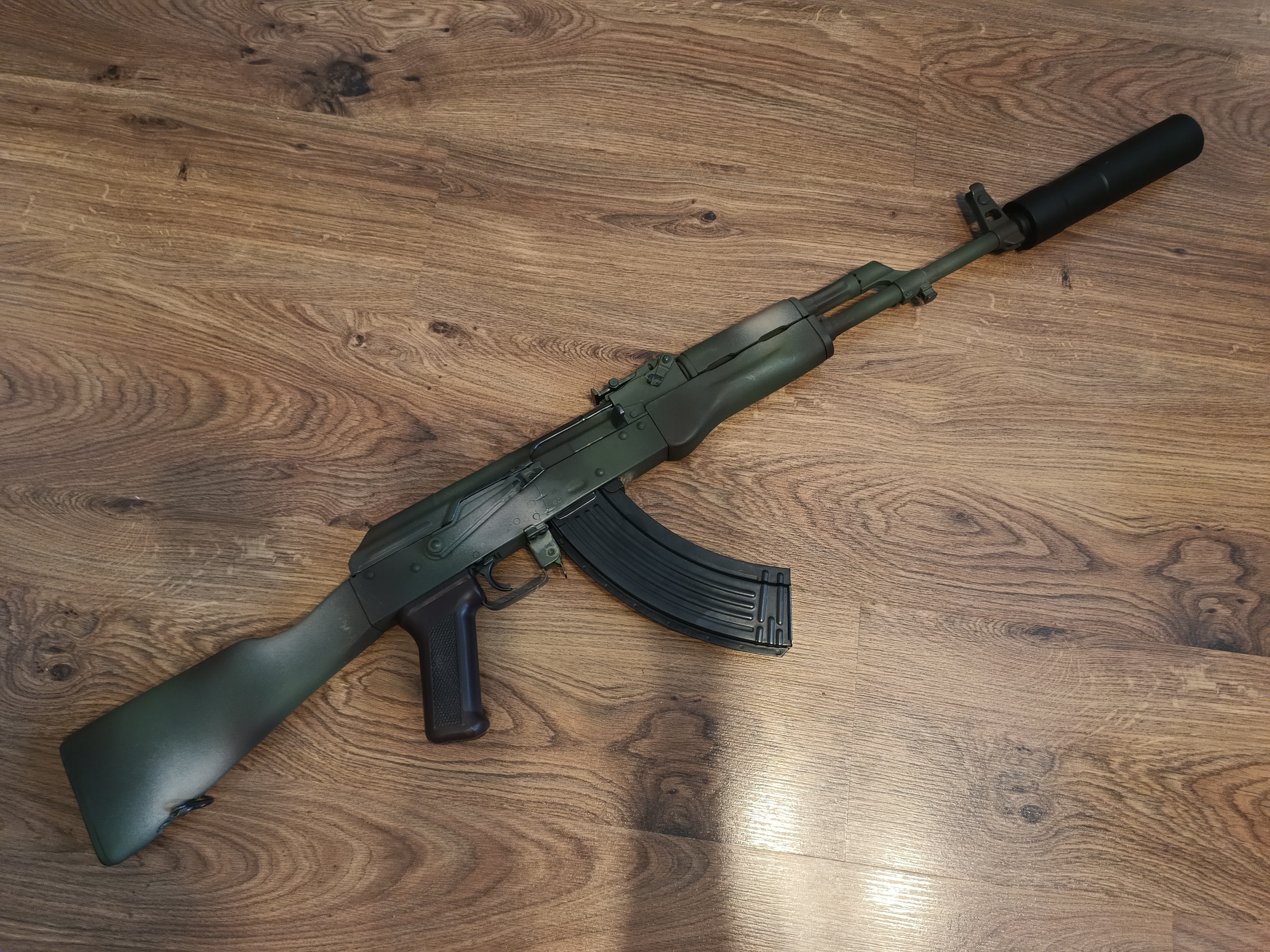 Tak jak w tytule. Stan jak nowy. Odwzorowany według zdjęć operatora SSO. Pomalowany fosco w kamuflaż Olja. W środku nowa prec. lufa gumka dysza tłok z głowicą sprężyna i popychacz dyszy. W zestawie replika bateria 3 midcapy E&L. Kontakt PW.