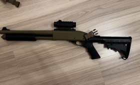 Sprzedaję moją piękną SAIGĘ 12K od Marui. Strzelba na GG, półautomatyczna. Rzadko używana, co mnie trochę boli. Dobre skupienie, celna, głośna. . Lufy wewnętrzne proste. Zimą też dawała radę, no ale jednak lśni jak jest trochę cieplej. Przebieg 3 strzelanki. Meble magpula (śliwka, zdjęcia nie oddają koloru) Adapter kolby hepasteus Kolba Jmac (kopia) Krótka lufa Urządzenie wylotowe WIITECH Top rail proarms Magwell ITP Stalowy trigger group pozwalający na fullauto od ITP (włożone tylko ramie selektora) Sprężyna powrotna 110% FEDA buffer Zapasowy nozzle od TM (oryginalny) 3 magi krótkie- 45 kulek każdy. 2 magi długie (90kulek każdy) , jeden ma zjebaną szczękę, podaje, ale ja go trzymałem na części. Koli od Victoptis z montażem. Lekko pęknięta szybka. Stockowa lufa zewnętrzna Stockowa kolba Stockowy chwyt przedni Ramowa kolba od CYMY, przystosowana do zamontowania w saidze. Lekko się gibie. Superowa maszynka do CQB, na strzelanki z limitem do 1.2J też nie ustępuje pola. Oryginalna dysza pozwala spać spokojnie i nie martwić się o ewentualne zużycie stocka.