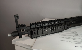 Wstawiona dłuższa lufa ZCI 6.02, chyba 416mm, nie do końca pamiętam i gumka maple leaf. Docięty guarder m125 i pluje 1.9 na 0.32. Na całym pluło 2.3 :) Dobra baza pod DMR, mi nie leży tym HK.