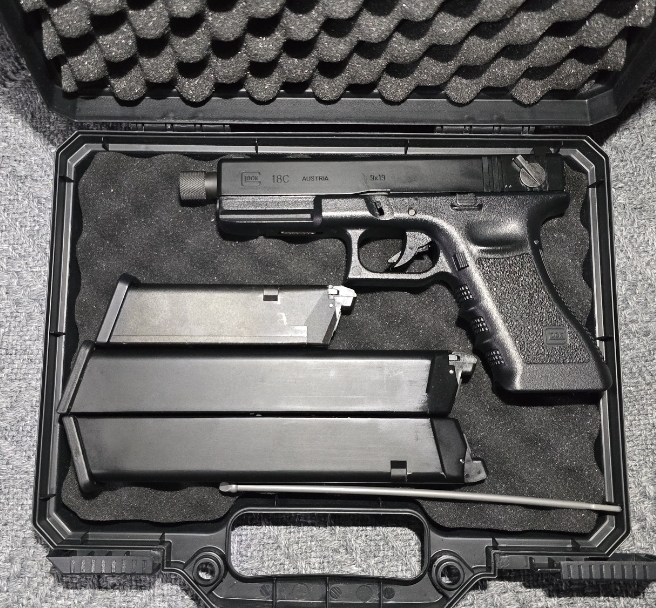 Na sprzedaż replika od Tokyo Marui Glock 18C. Pistolet zakupiony jako nowy w kwietniu 2025. Po serwisie u Watchbreakera. Założona lufa wewnętrzna Crazy Jet Maple Leaf, komora hop-up Maple Leaf, gumka hop-up Maple Leaf, zestaw sprężyn do zespołu spustu oraz zbijaka Guarder, sprężyna powrotu zamka Guarder, dysza Guarder, uszczelka dyszy CowCow, stalowa lufa z gwintem 14mm CCW Guarder, stalowe nocne zielone przyrządy celownicze Guarder, dodatkowe 2 długie magazynki WE na 50 kulek (w jednym brakuje dolnego zaworu). Oryginalne pudełko. Dorzucam oryginalne części.