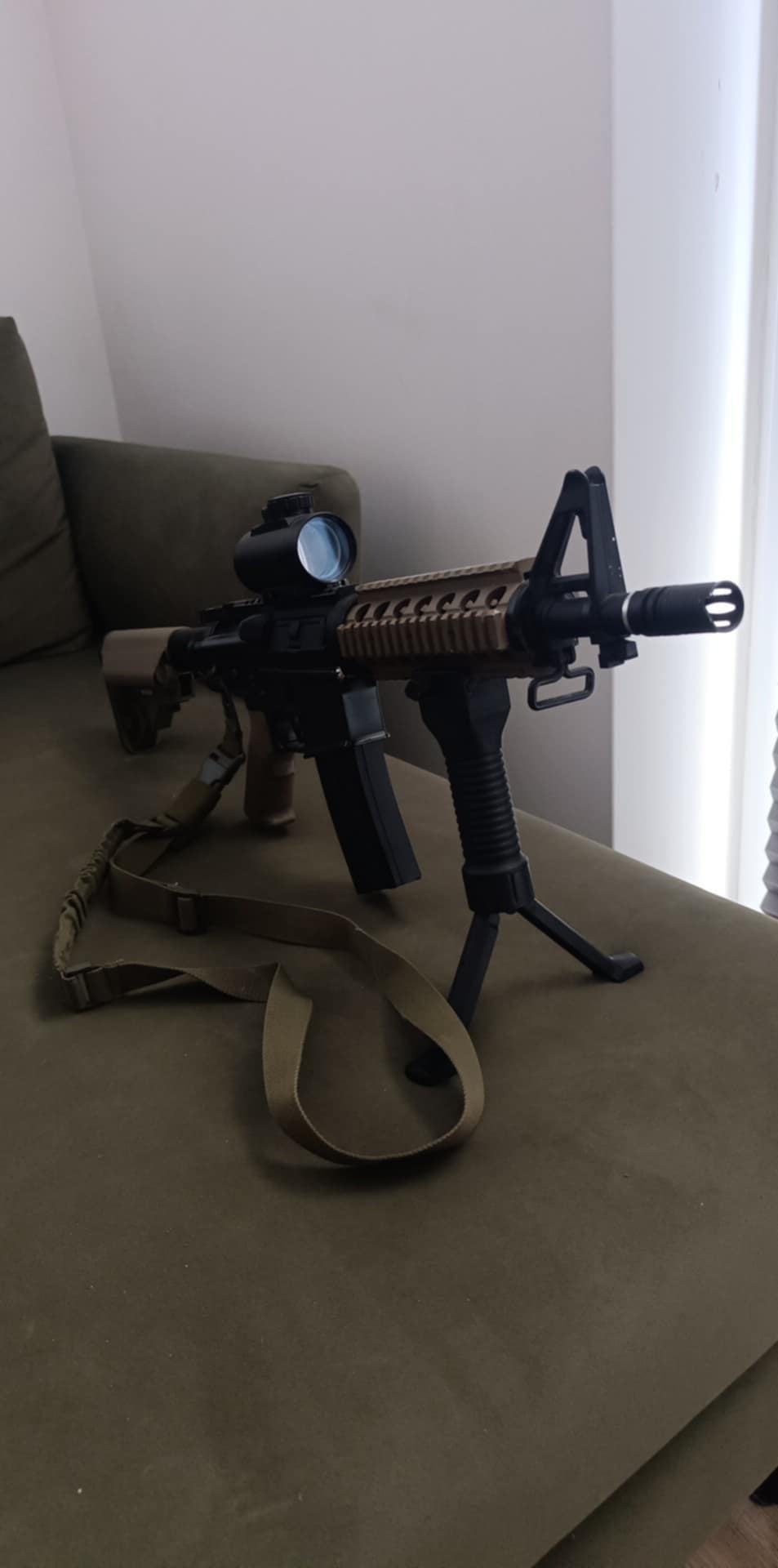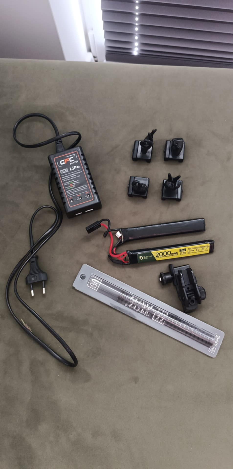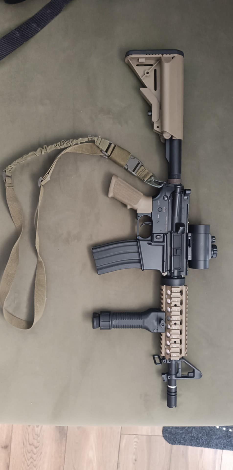 Przedmiot: Replika karabinka SA-B02 ONE™ - Half-Tan W zestawie: 2 magazynki HI-CAP (300 kulek), 5 magazynków MID-CAP (140 kulek) Dodatkowe akcesoria: Pasek, kolimator, akumulator z ładowarką, mocna sprężyna