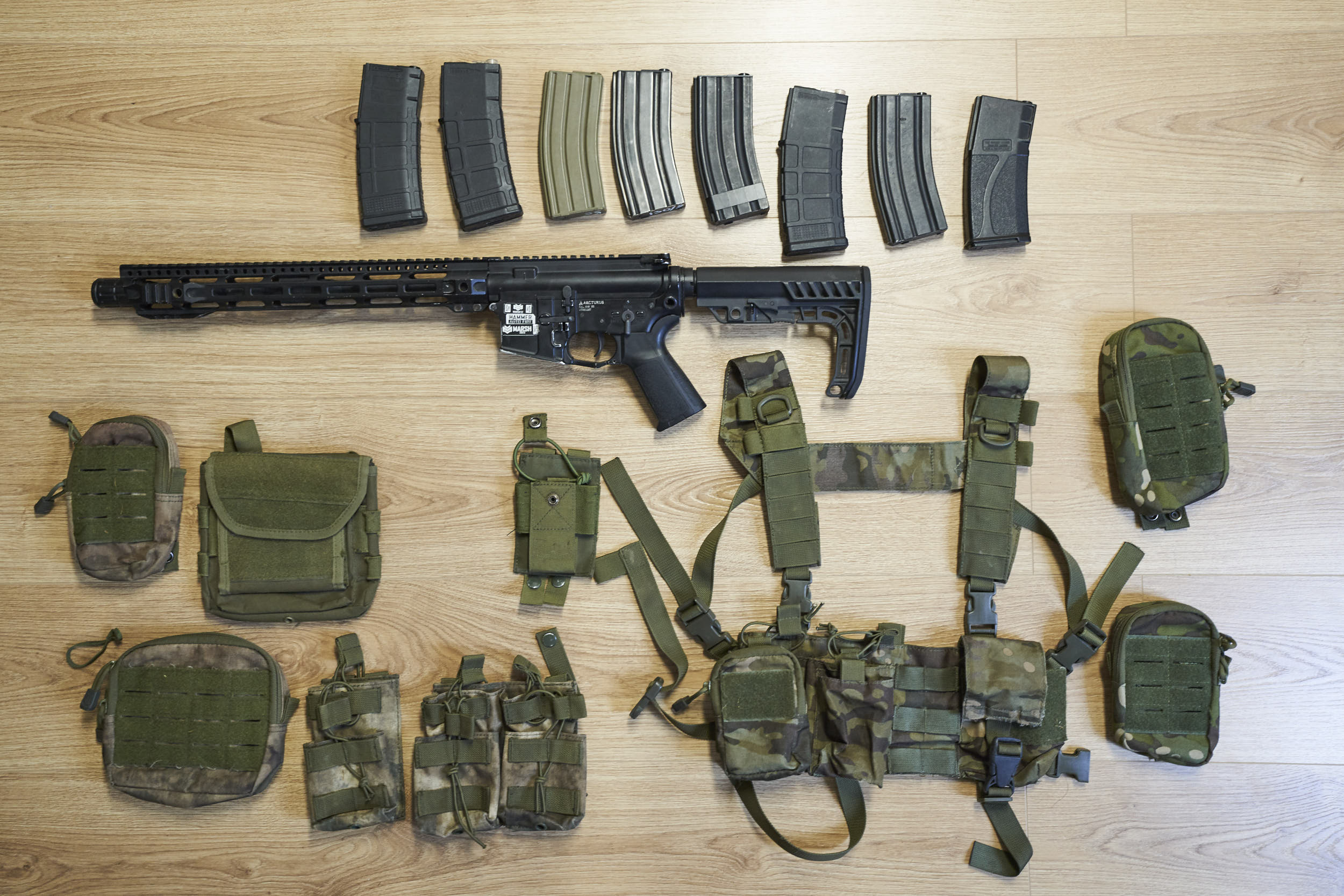 Mam do sprzedania kurzący się zestaw z Artucursem AR15 E3 RIFLE AT-AR07 Replika stosunkowo mało używana, przeserwisowana była ze trzy lata wstecz tak by mieścić się w limicie szturmu 1,9J. Jak widać na załączonym obrazku z chronografu, na 0.32 trzyma parametry. NIgdy nie byłą żyłowana ze względu, że nienawidzę się grzebać z replikami i nie chciałem mieć problemów z częstymi serwisami. W skład zestawu wchodzą dodatki taki jak chest rig i komplet różnych ładownic. Do tego 8 magazynków w różnym stanie, połowa działa druga połowa wymaga raczej przeserwisowania. np. 5 ostatnich kulek nie wychodzi bo sprężyna jest za słaba. Najlepiej odbiór osobisty, po wpłacie na konto mogę gdzieś podrzucić w rozsądne okolice Krakowa.