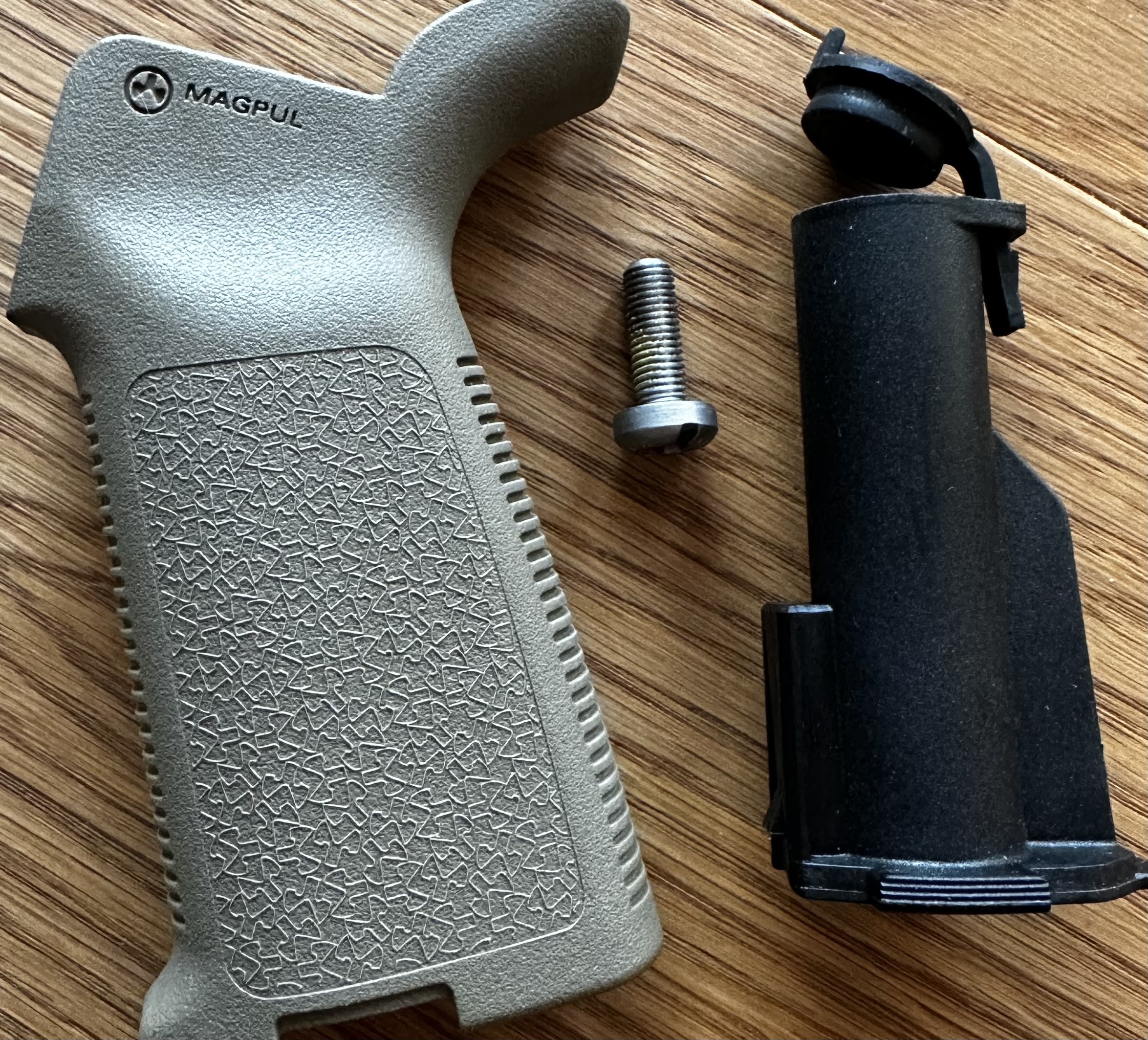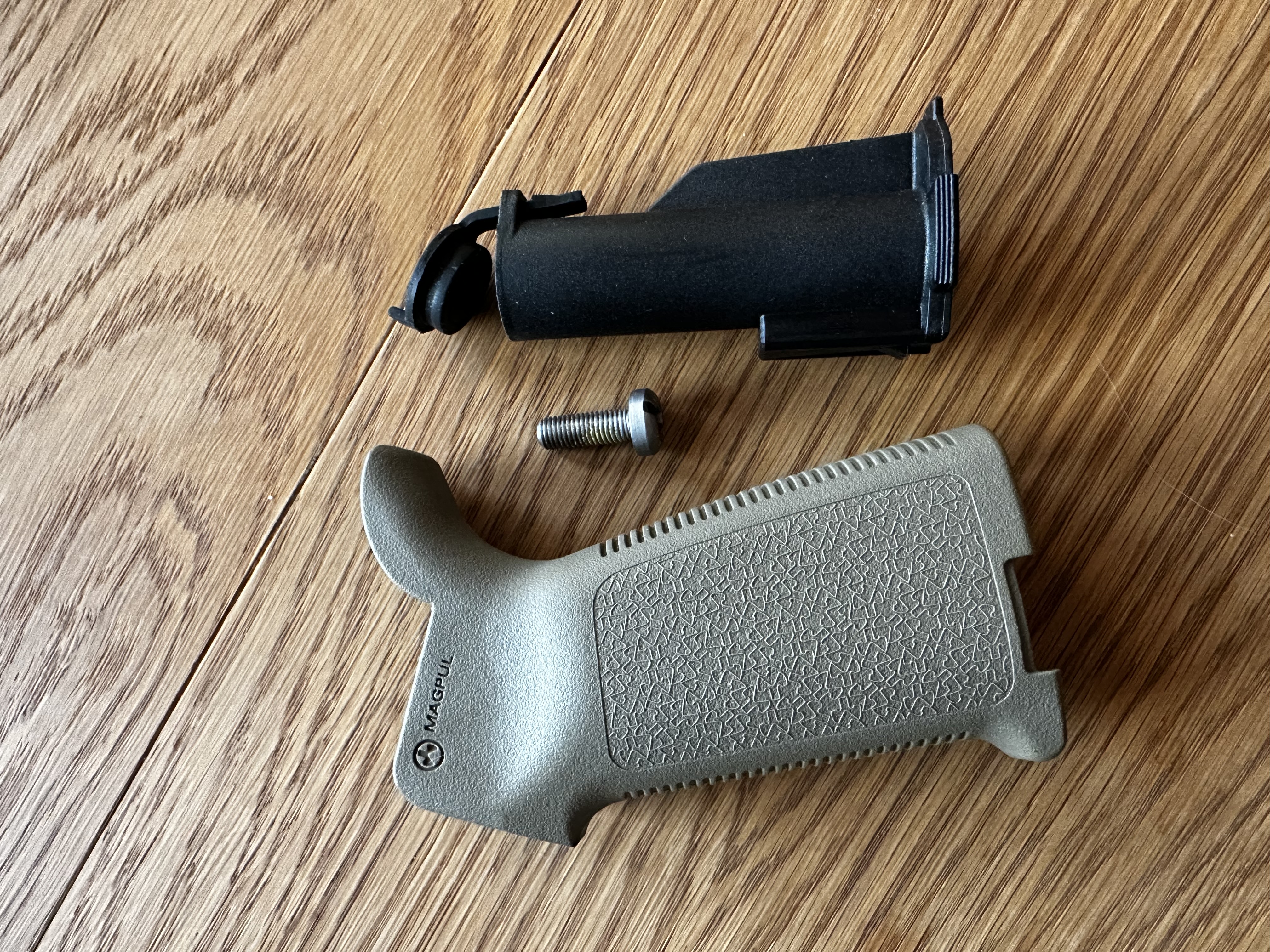 Witam , na sprzedaż nowy nie używany ale bez pudełka chwyt Magpul moe wraz z pojemnikiem na baterie do chwytu oraz śrubą montażową . Nie podszedł mi kąt nachylenia . Brak śladów użytkowania . Pasuje pod repliki GBB także ;)