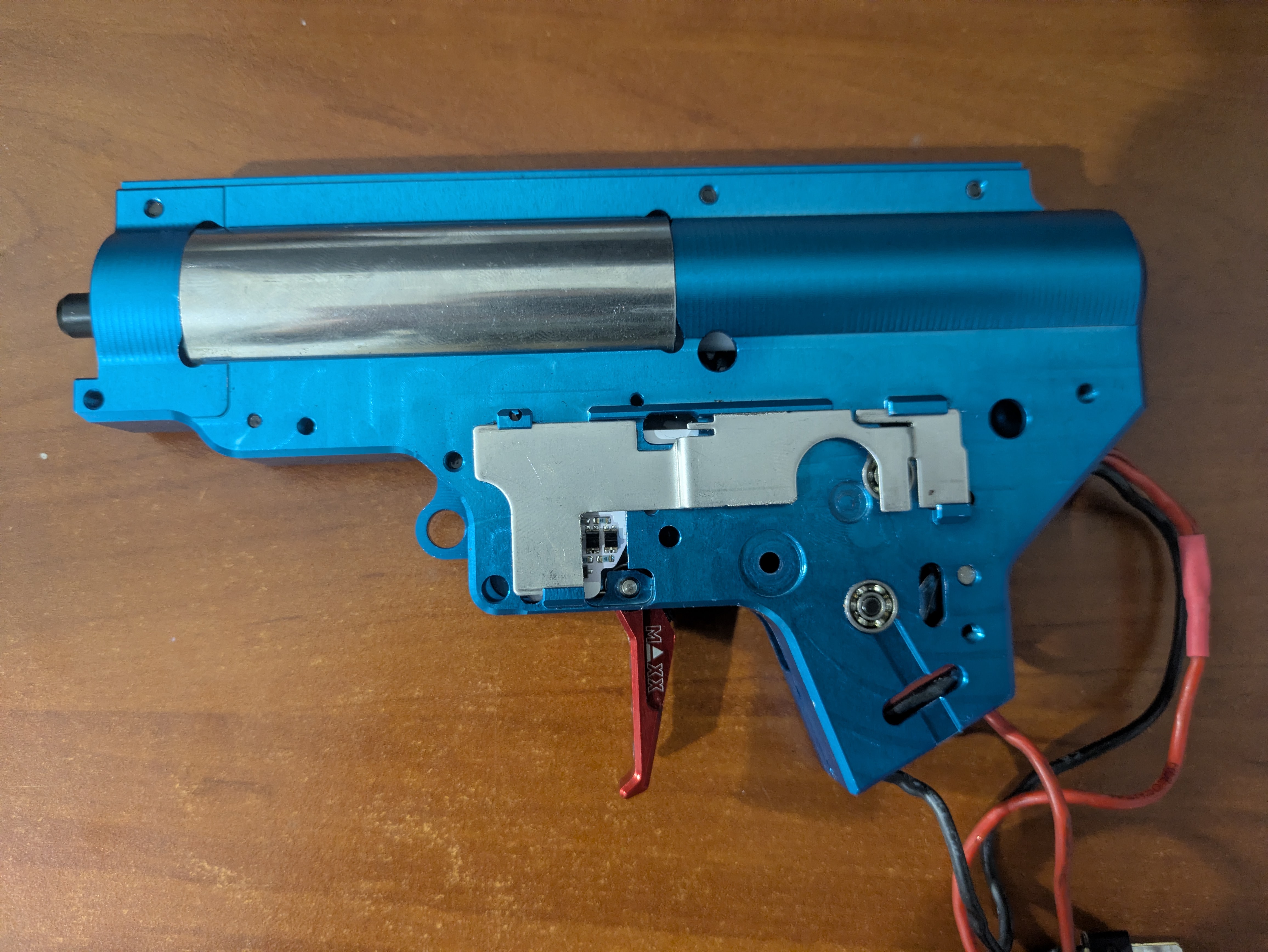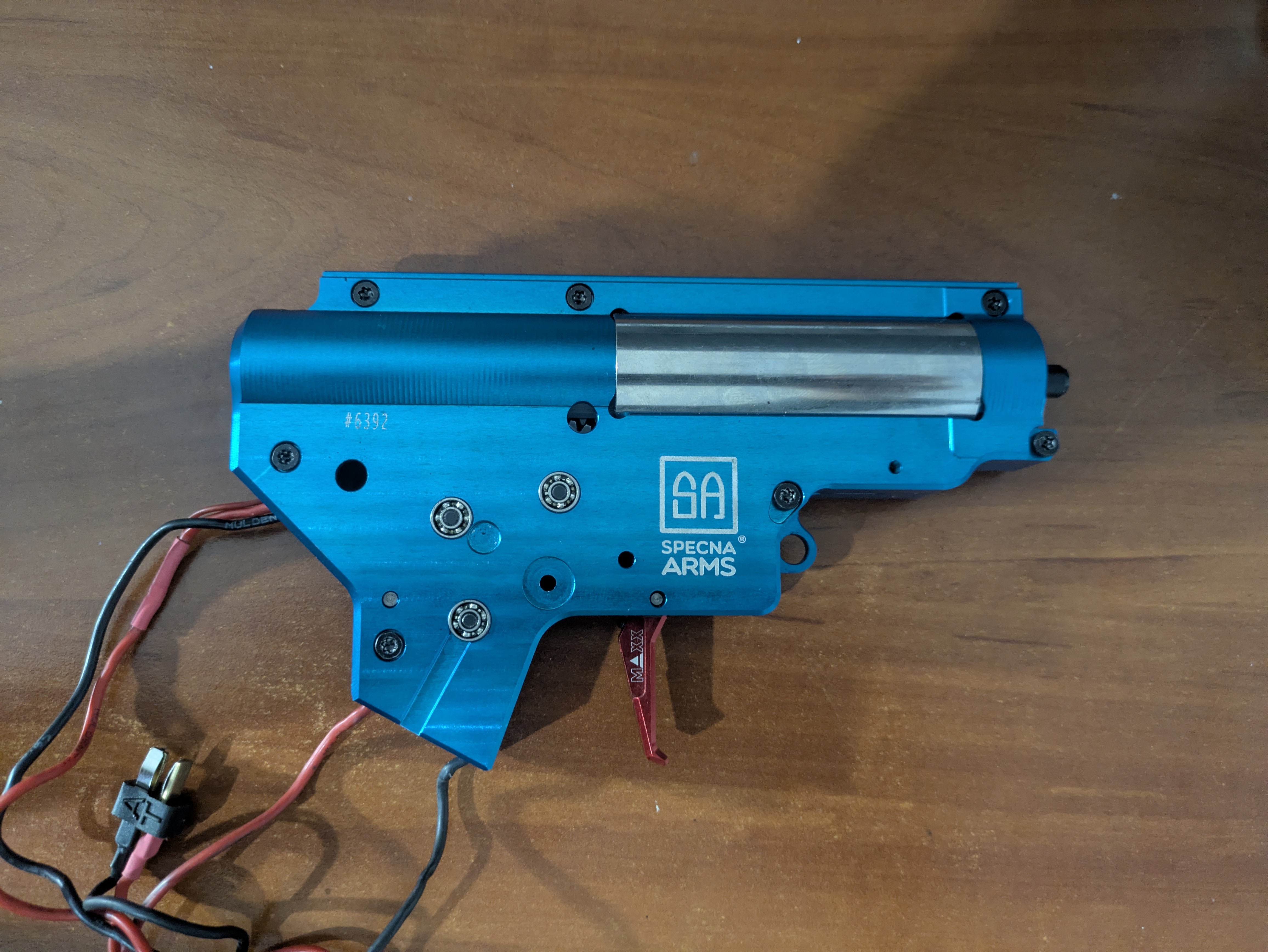 Mam do sprzedania w pełni złożony i przygotowany gearbox do montażu w replice. Jest bardzo dobrze poskładany na topowych częściach. Nie był długo używany bo zakończyłem przygodę z ASG. W zestawie: - gearbox Retro Arms by Specna Arms (to samo co czarny klasyczny) - mosfet Perun Hybrid v2 - zestaw Łożysk kulkowych 8mm extreme FPS SOFTAIR - zębatki SHS DSG - tłok POM Retro Arms 9 stalowych zębów - głowica tłoka EON HIGH SPEED Gate - głowica cylindra EON PROTECTOR Gate - dysza 21.4mm Gate - popychacz dyszy Gate - cylinder stalowy SHS - spust regulowany Maxx model - sprężyna dobrana pod 1.1j - anti reversal Ultimate Nic nie jest uszkodzone, zębatki są perfekcyjnie wypodkladkowane, ustawione AOE tłoka i głowicy. W razie pytań zapraszam do kontaktu