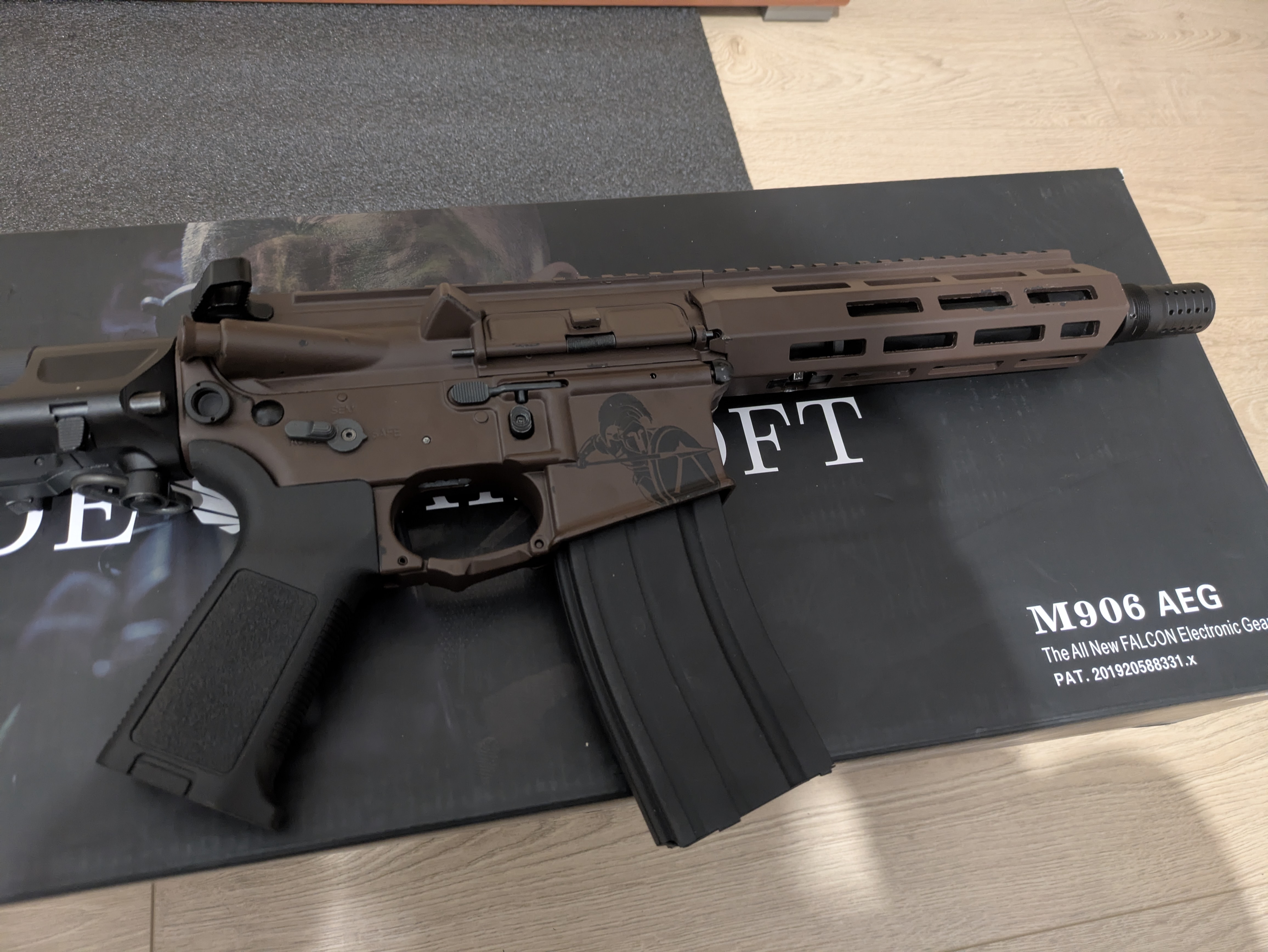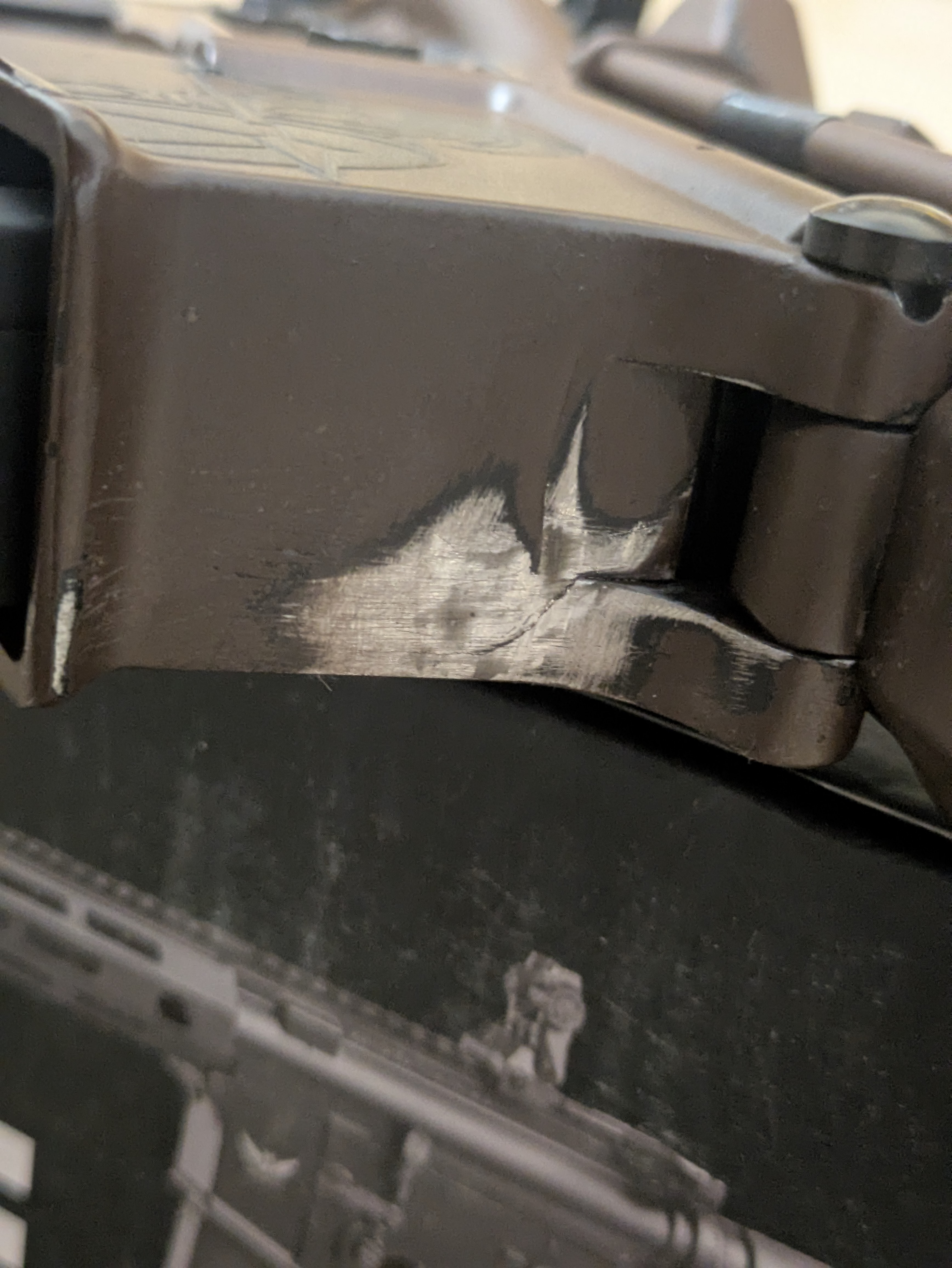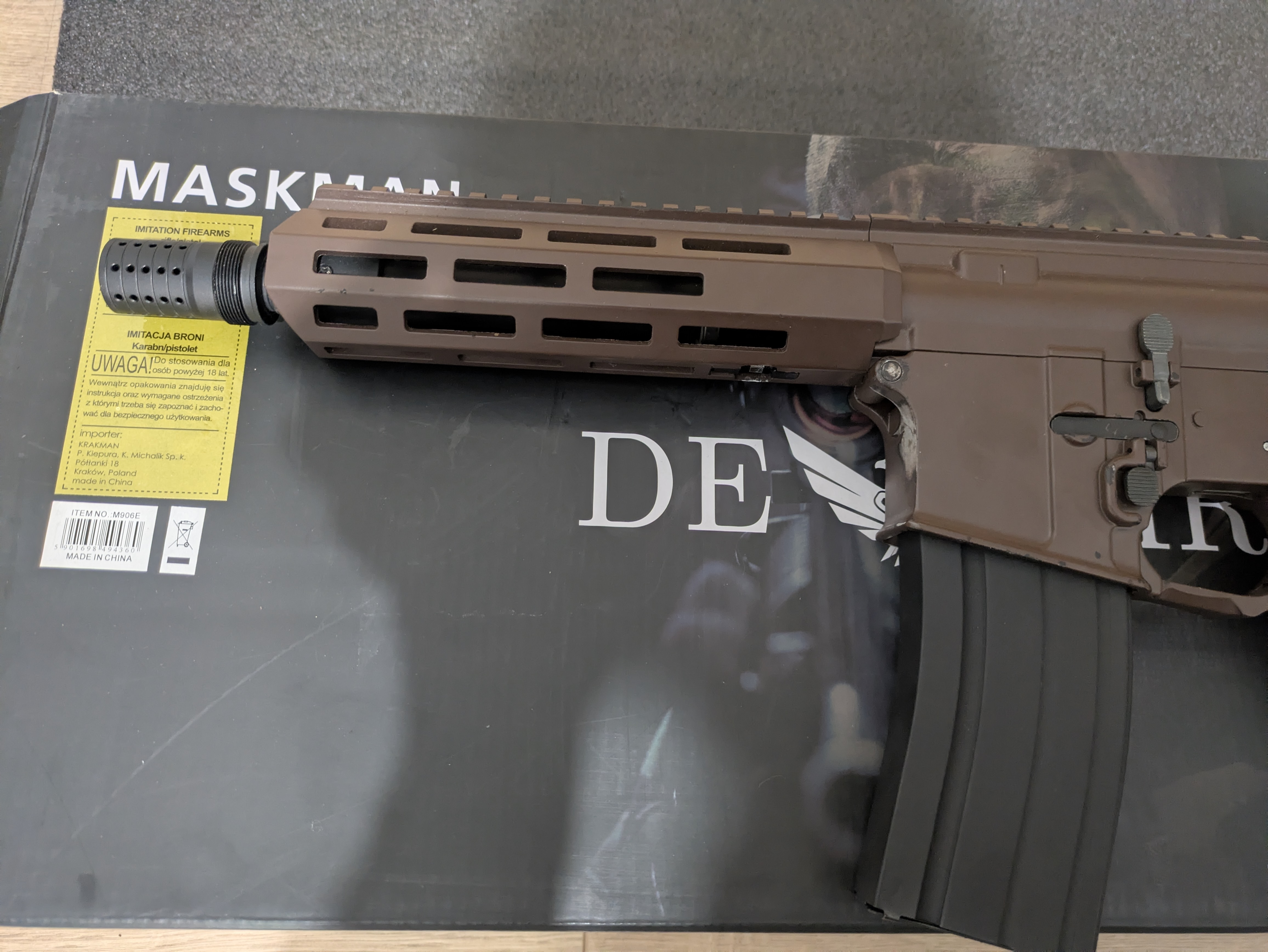 Mam do sprzedania body po replice DE. W zestawie również magazynek mod cap, chwyt, kolba teleskopowa oraz szkielet gearboxa. Replika pomalowana na kolor Darka brown. Lower posiada pęknięcie powstałe przy upadku z wysokości. Farba została usunięta z pęknięcia w celu zespawania, ale z braku czasu zostało tak jak jest. Wszystko się trzyma i nie ma luzów, pęknięcie na nic nie wpływa. Replika gotowa do składania.