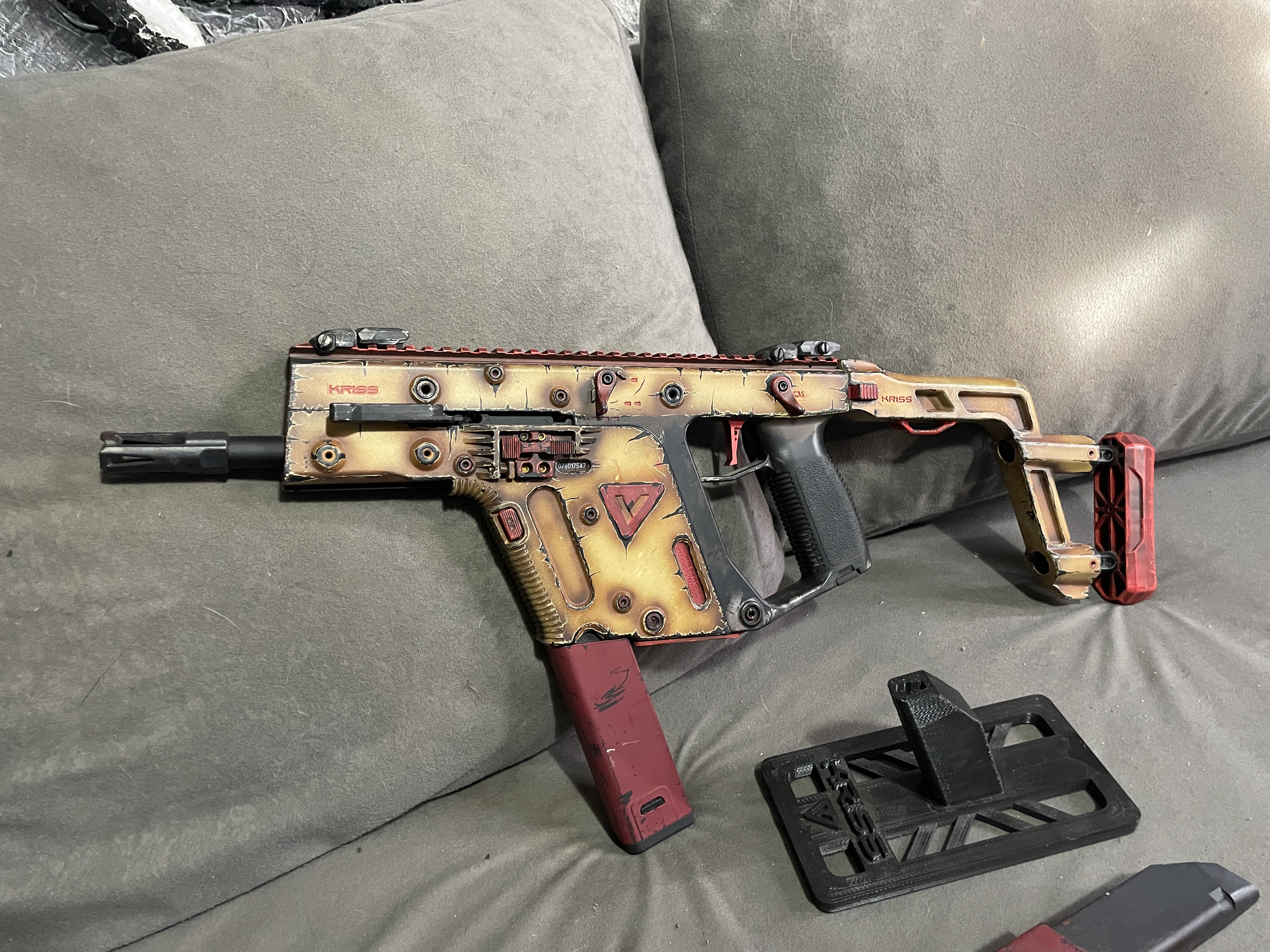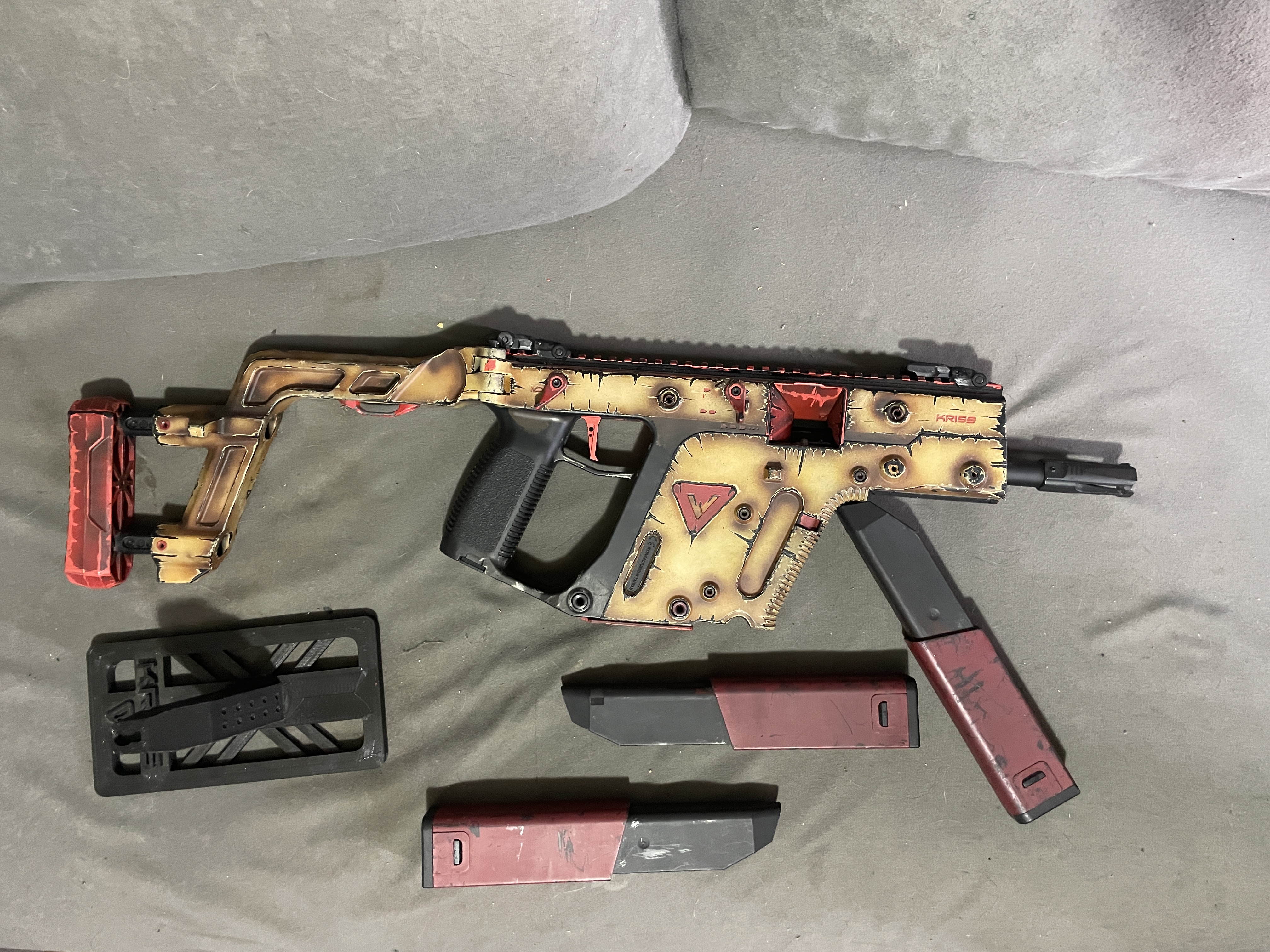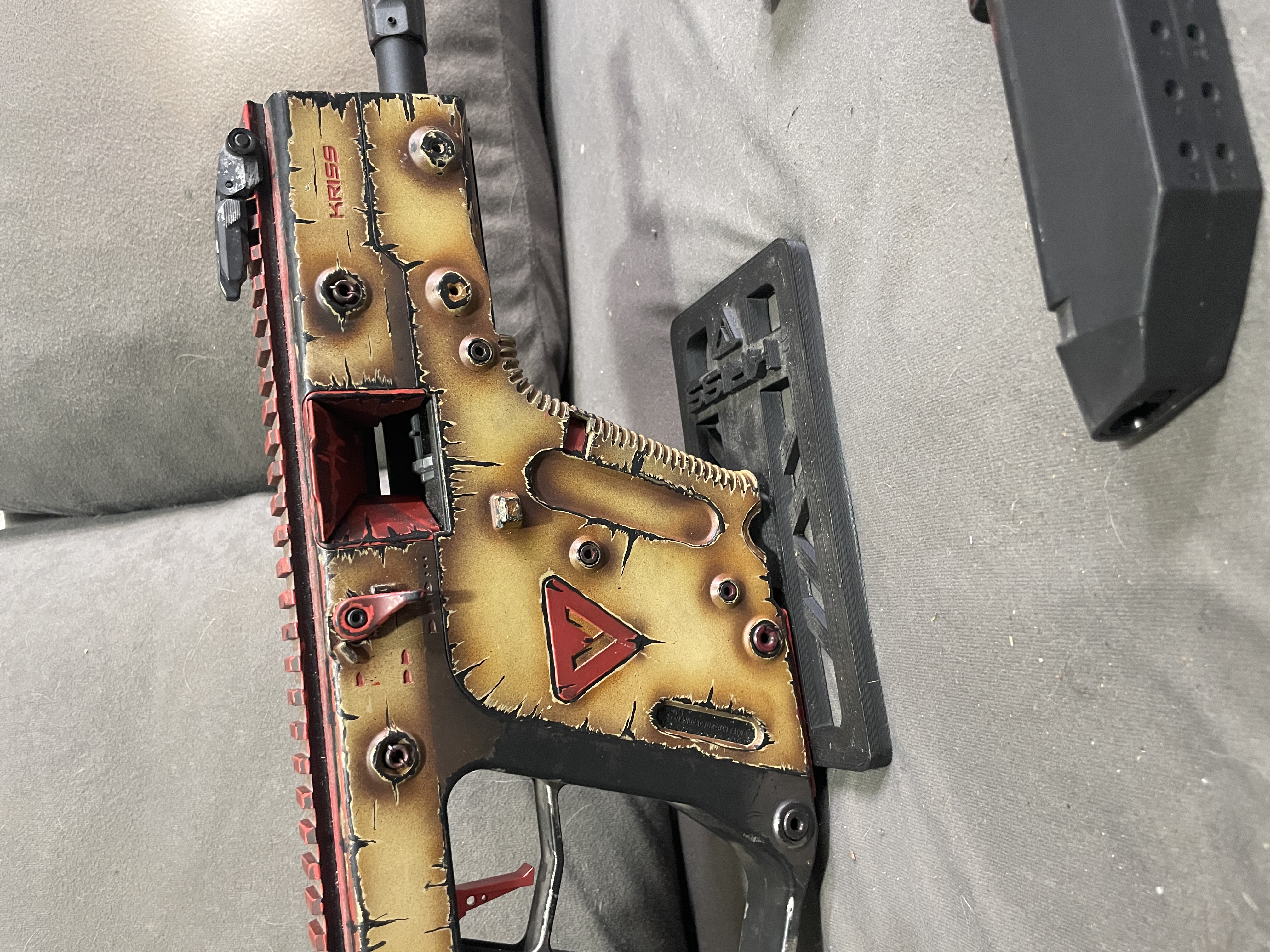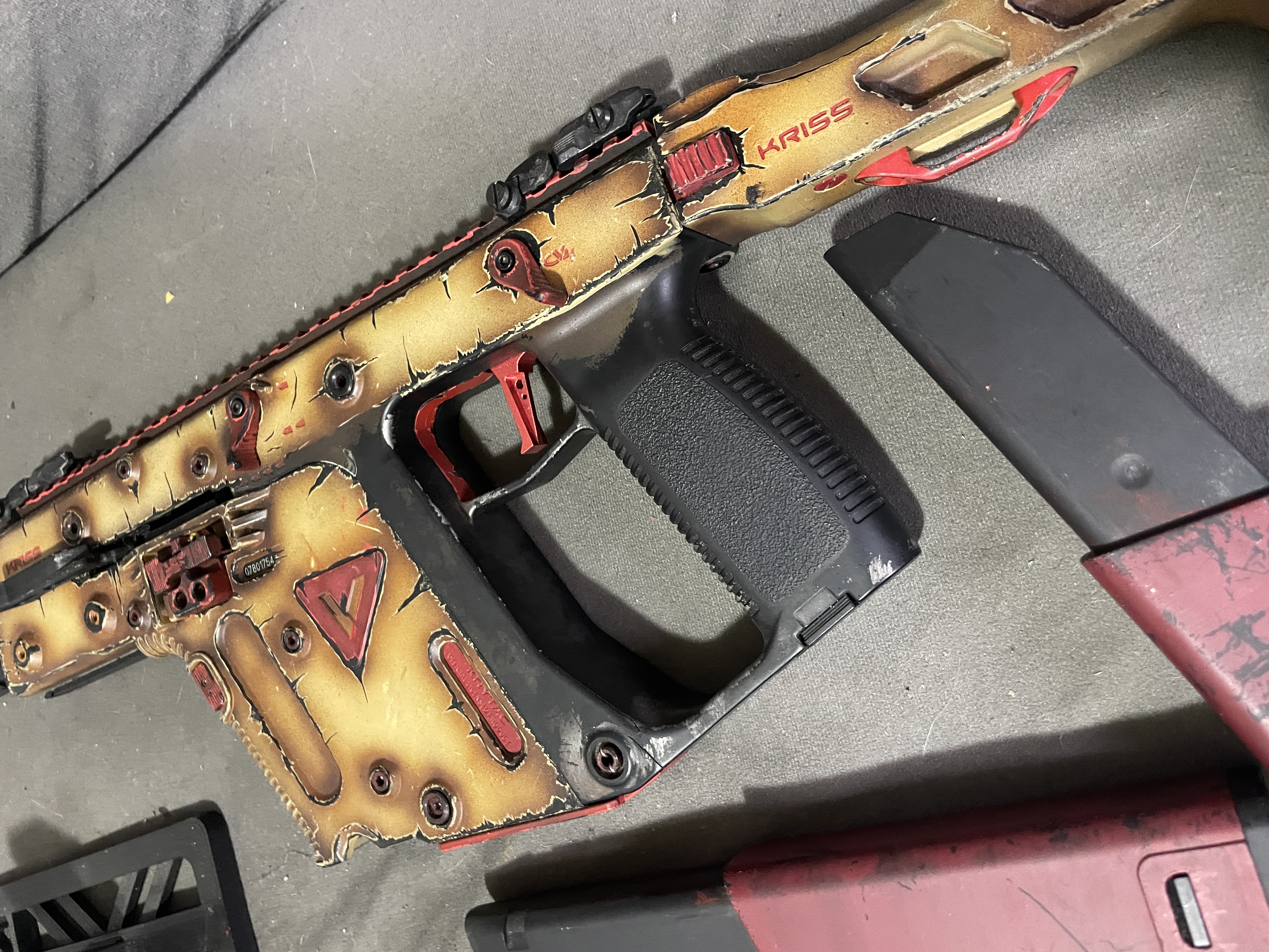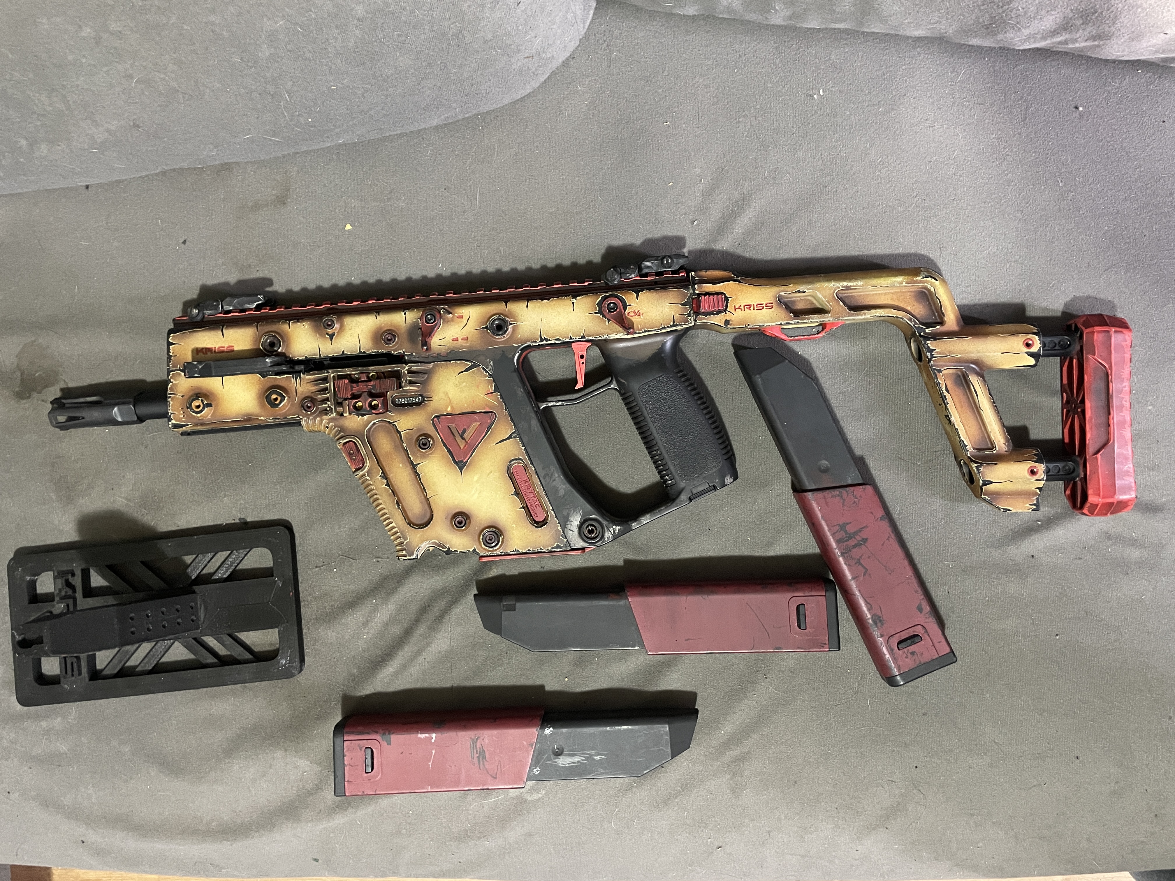Do sprzedania mam Kriss Vector KRYTAC wersja AEG od Krytaca, wersja full auto, 3-strzały oraz semi. Wymienione okablowanie i wtyczka na Tconect, gearbox nie tykany. Zestaw zawiera oryginalne pudełko, 3 magazynki z czego 2 trzeba przeczyścić zacinają się. Replika miała być do CQB ale nie pykło i robiła za ozdobę ale zabiła kilka puszek :) Replika sprawna jednak polecam przesmarować przed używaniem leżała na półce od pandemii!