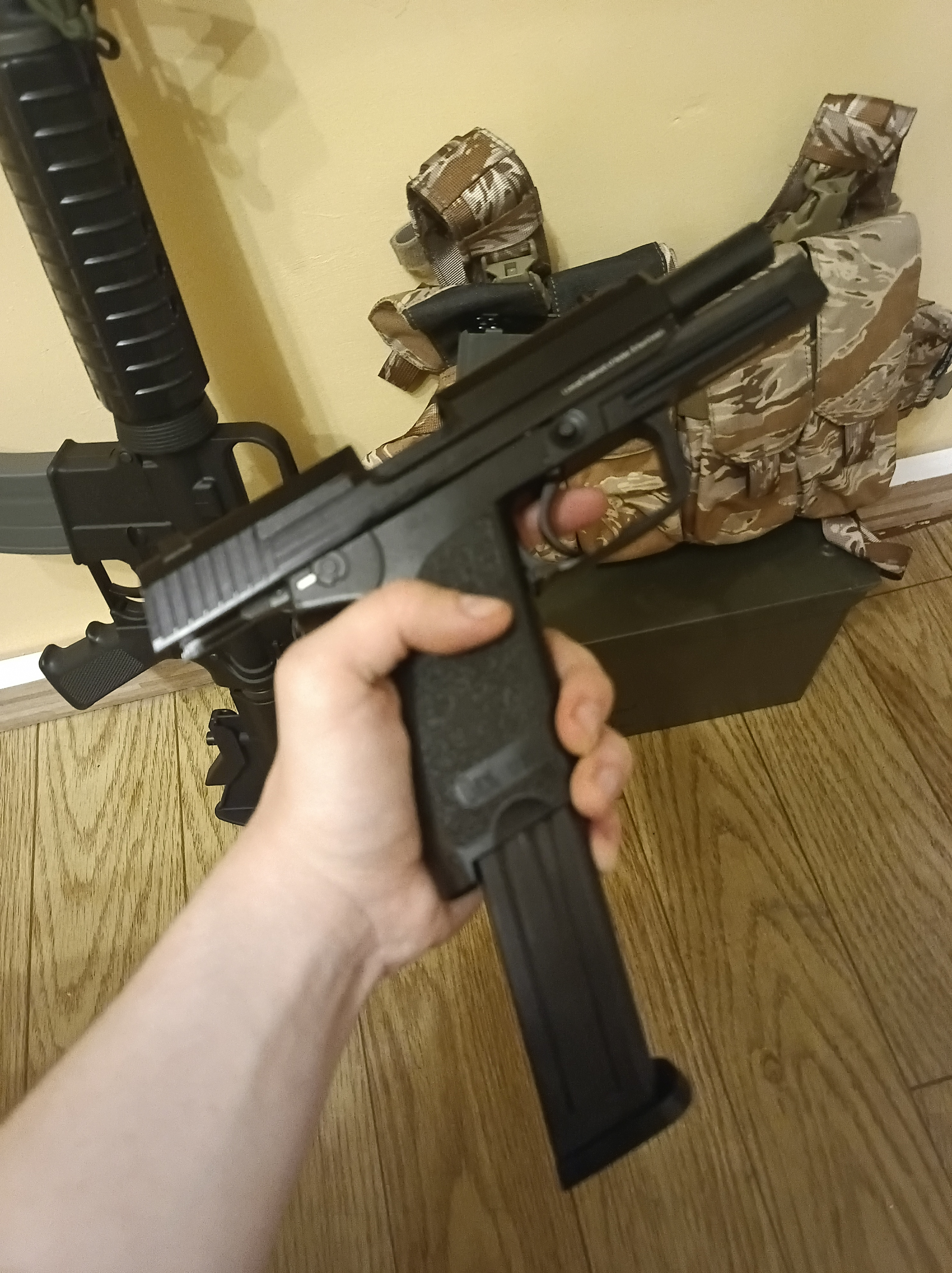 Sprzedam replikę ikonicznego H&K USP .45, firmy KWA. Replika bardzo ładnie się prezentuje i na mocnym green gasie chodzi jak wściekła:) magazynek oraz układ dyszy są w pełni szczelne, solidny magazynek wytrzyma nie jeden upadek, trzymanie tej cegły i doświadczenie blowbacku naprawdę daje banana na twarzy. Dzięki pojemnemu magazynkowi jest wydajna w zimne temperatury oraz jak na pistolet GG kręci kosmiczne FPSy (ok. 330 na 0.2g) Cena jest finalna więc proszę o kontakt tylko poważnie zainteresowanych - wysyłka oczywiście darmowa. Przy odbiorze osobistym 500, bo nie lubię ludzi. Zainteresowanym mogę wrzucić filmik z działania repliki.