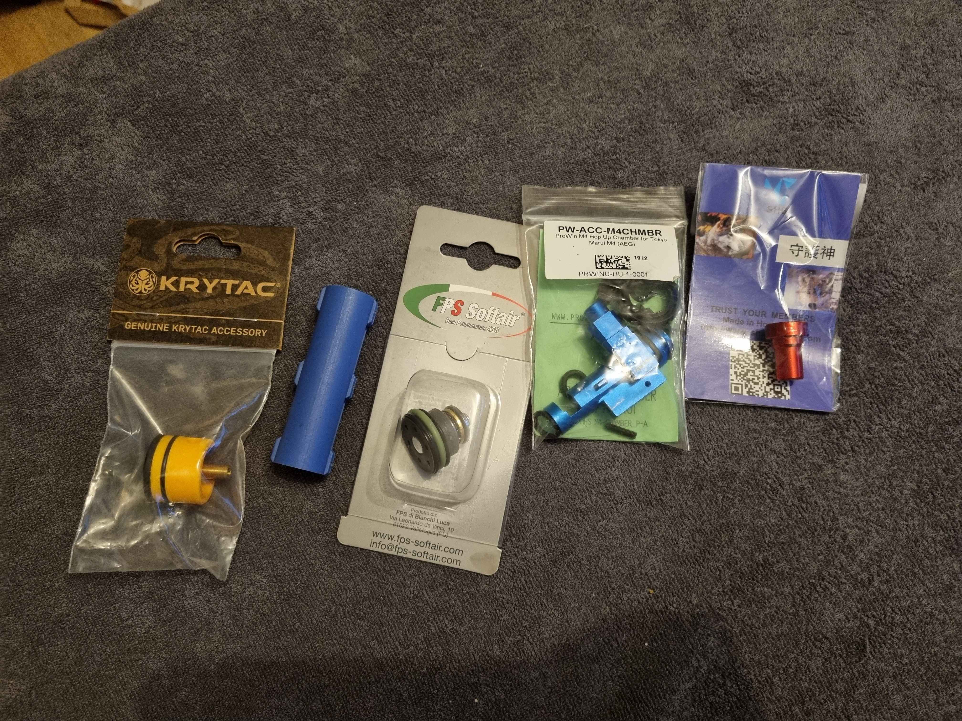 Głowica cylindra krytac 50zł Głowica tłoka FPS softair TPPA 50zł Komora hop up prowin 70zł Wieżyczka do długiego silnika SHS 15zł Tłok z pełną stalową szczenką SHS 20zł
